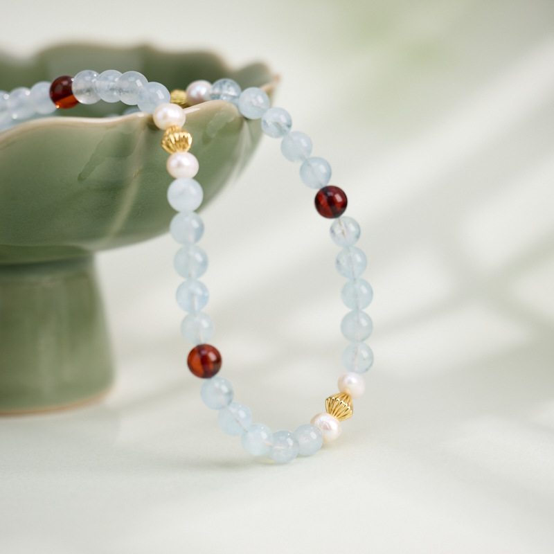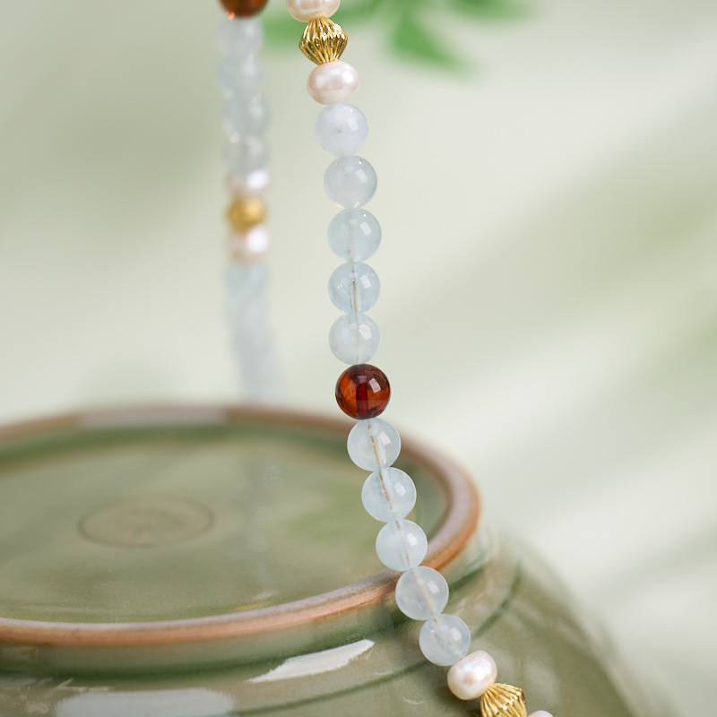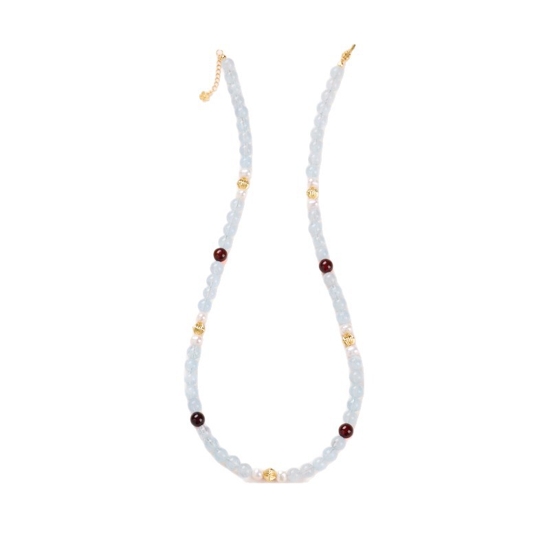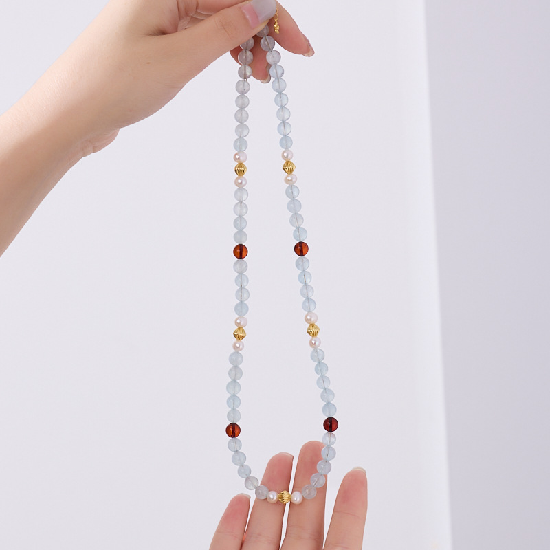 【觉夏】小红书同款新中式国风锁骨链精致女海蓝宝琥珀珍珠项链