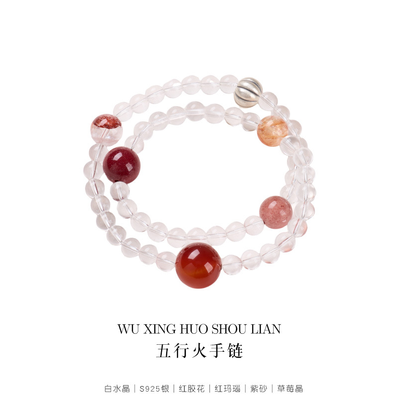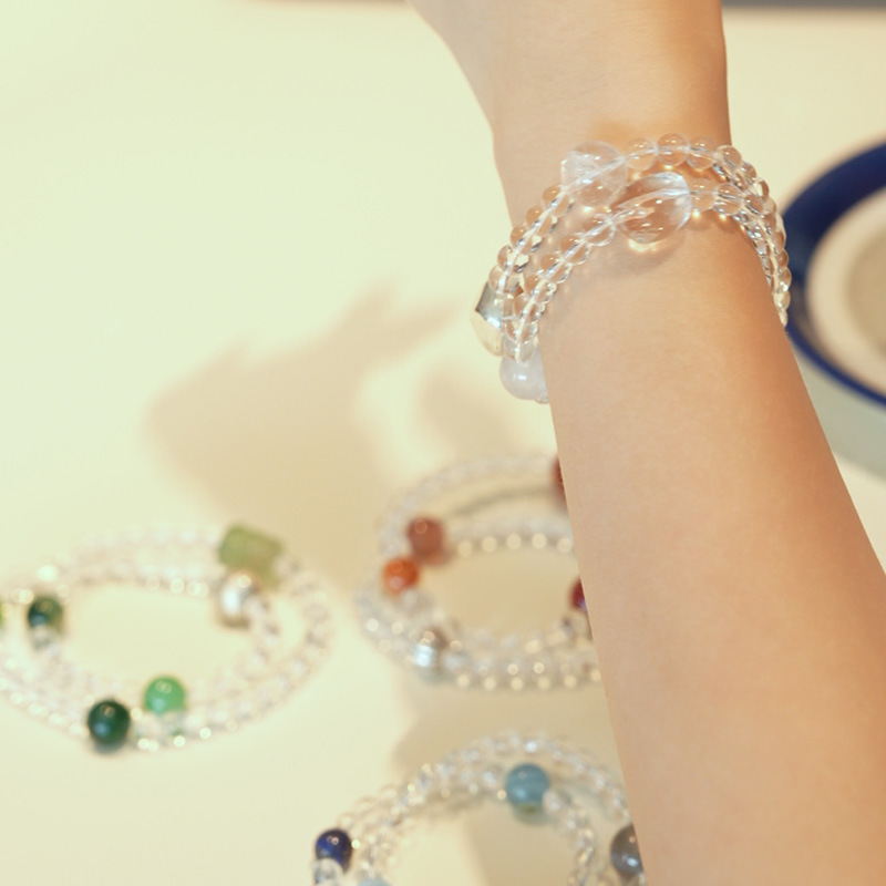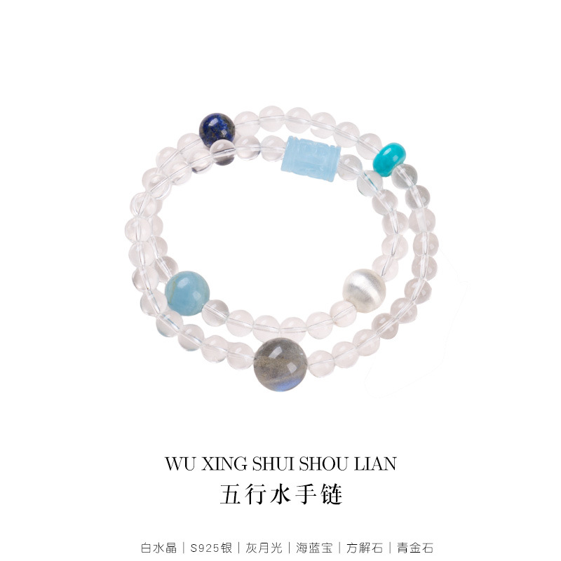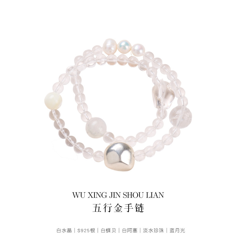 原创白阿塞五行平衡白水晶双圈手串女五行补缺喜金金木水火土手链