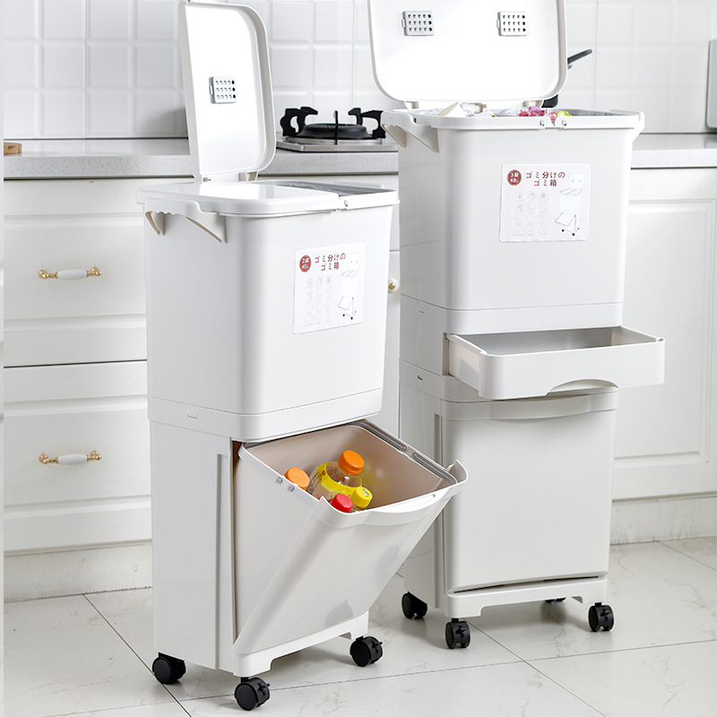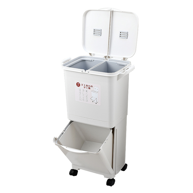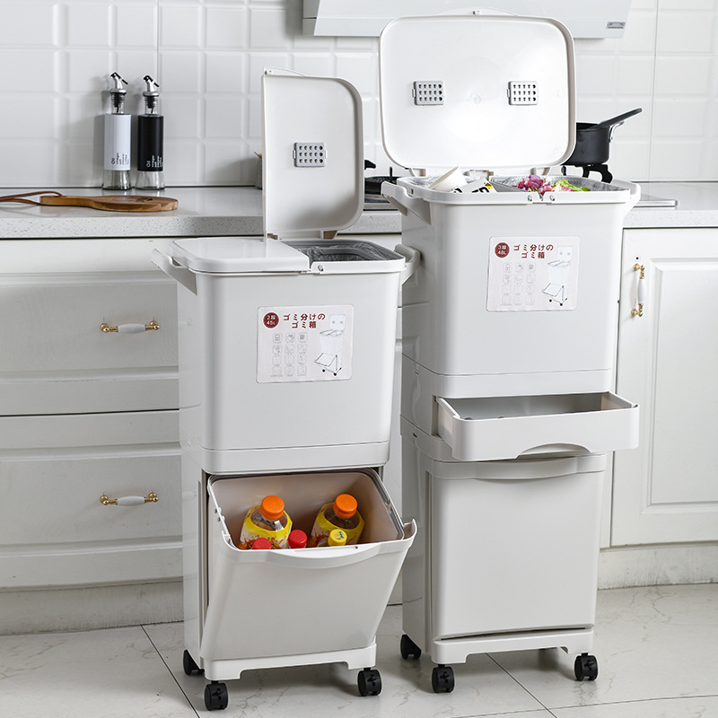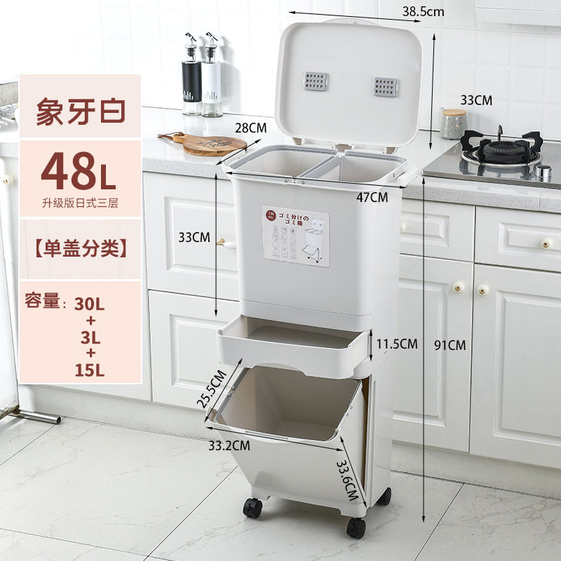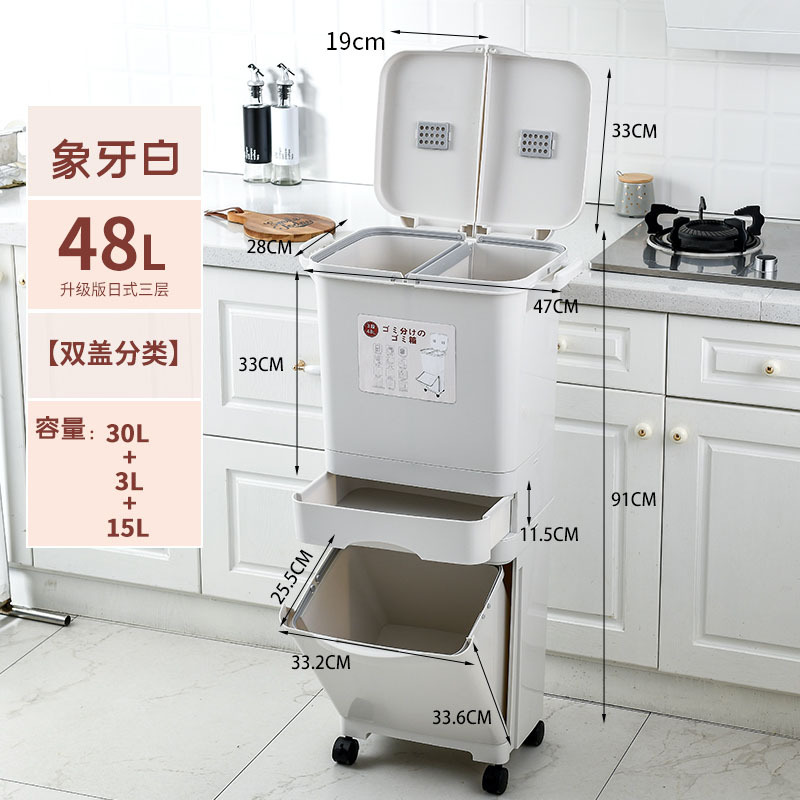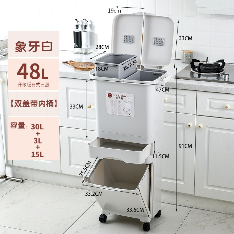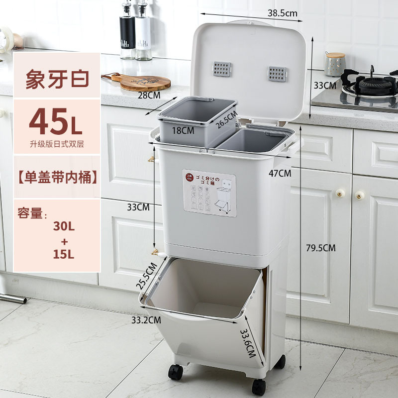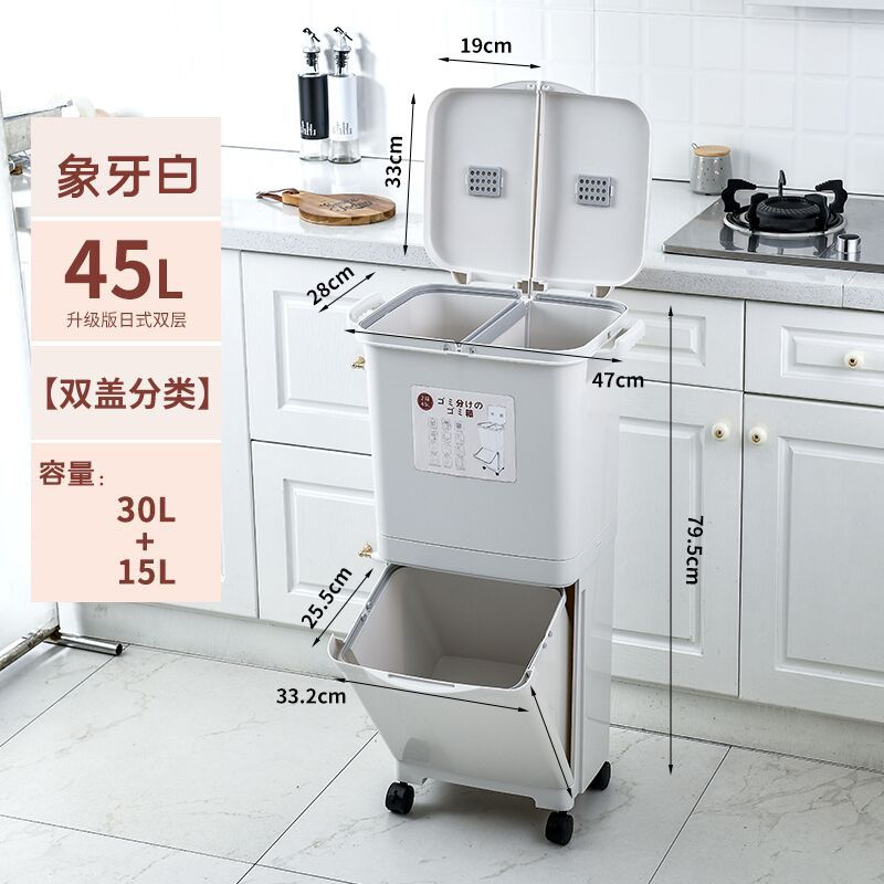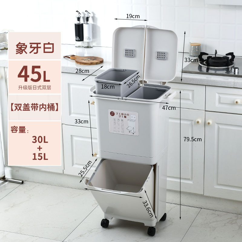 日式厨房垃圾桶家用大号带盖防臭厨余双层干湿分离垃圾分类双内桶
