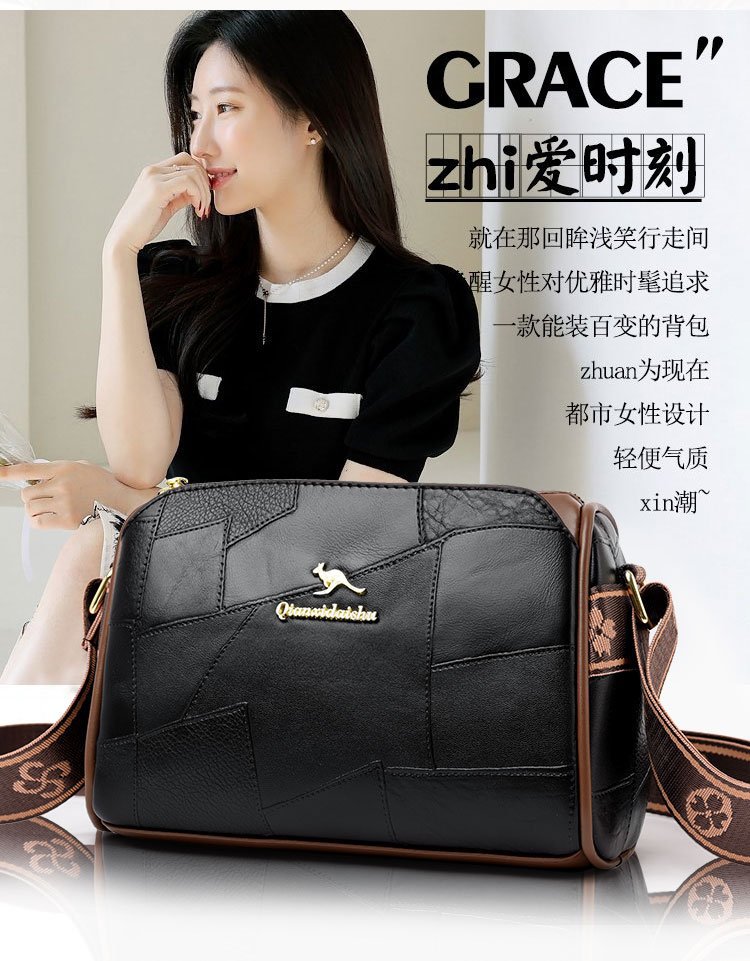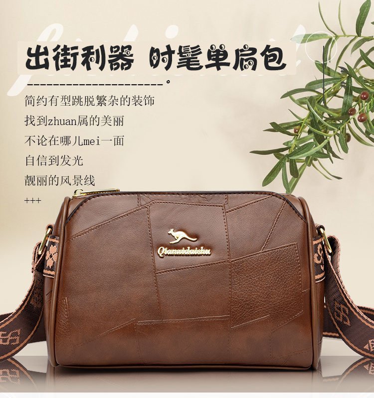 袋鼠中老年单肩包女2024新款头层牛皮婆婆妈妈包斜挎小包包