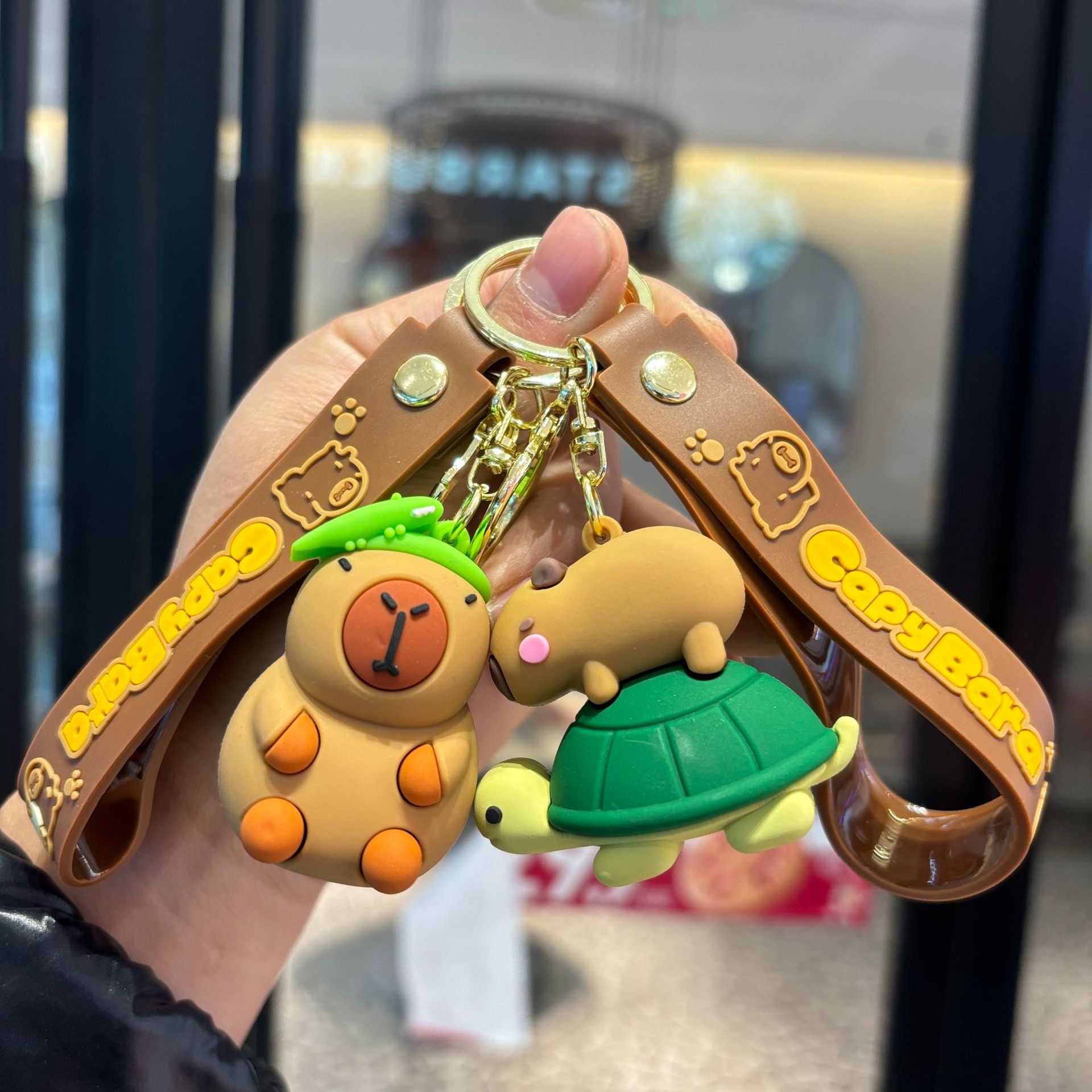 跨境卡皮巴拉钥匙扣水豚书包挂件汽车钥匙链儿童娃娃机小礼品批发