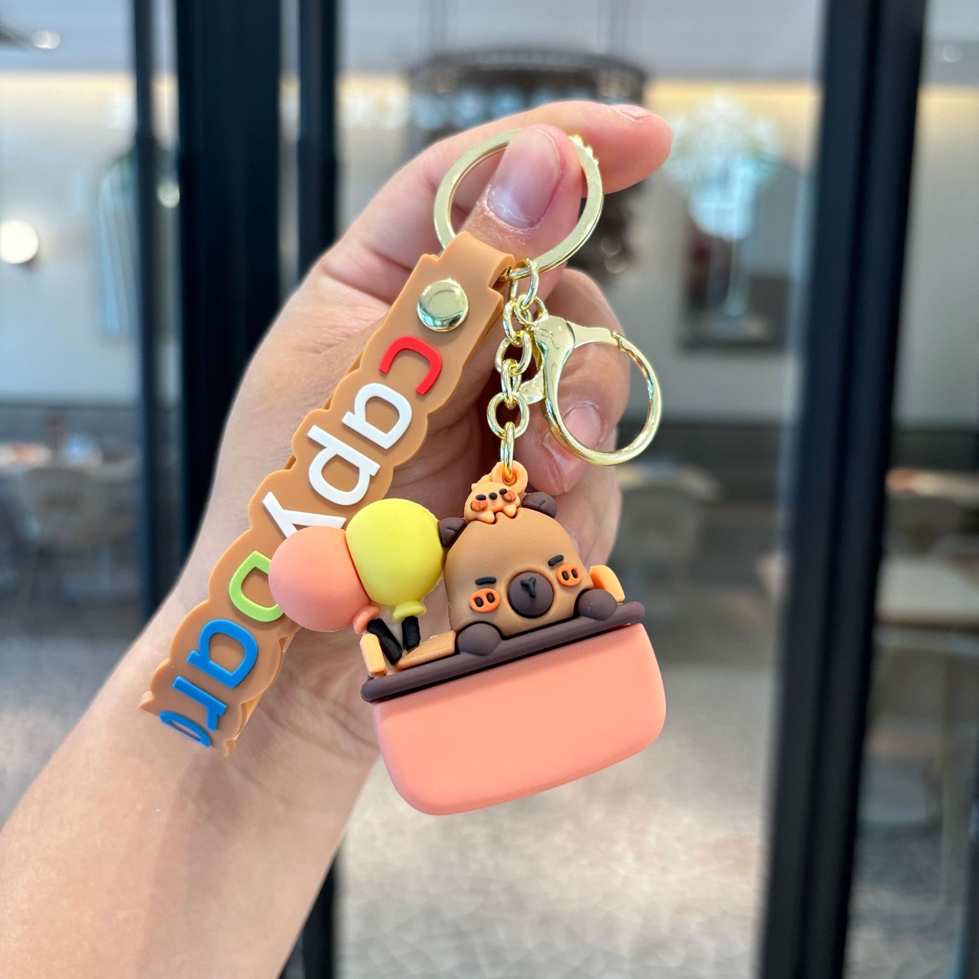 跨境卡皮巴拉钥匙扣可爱水豚君公仔钥匙链外贸款钥匙圈抓娃机公仔
