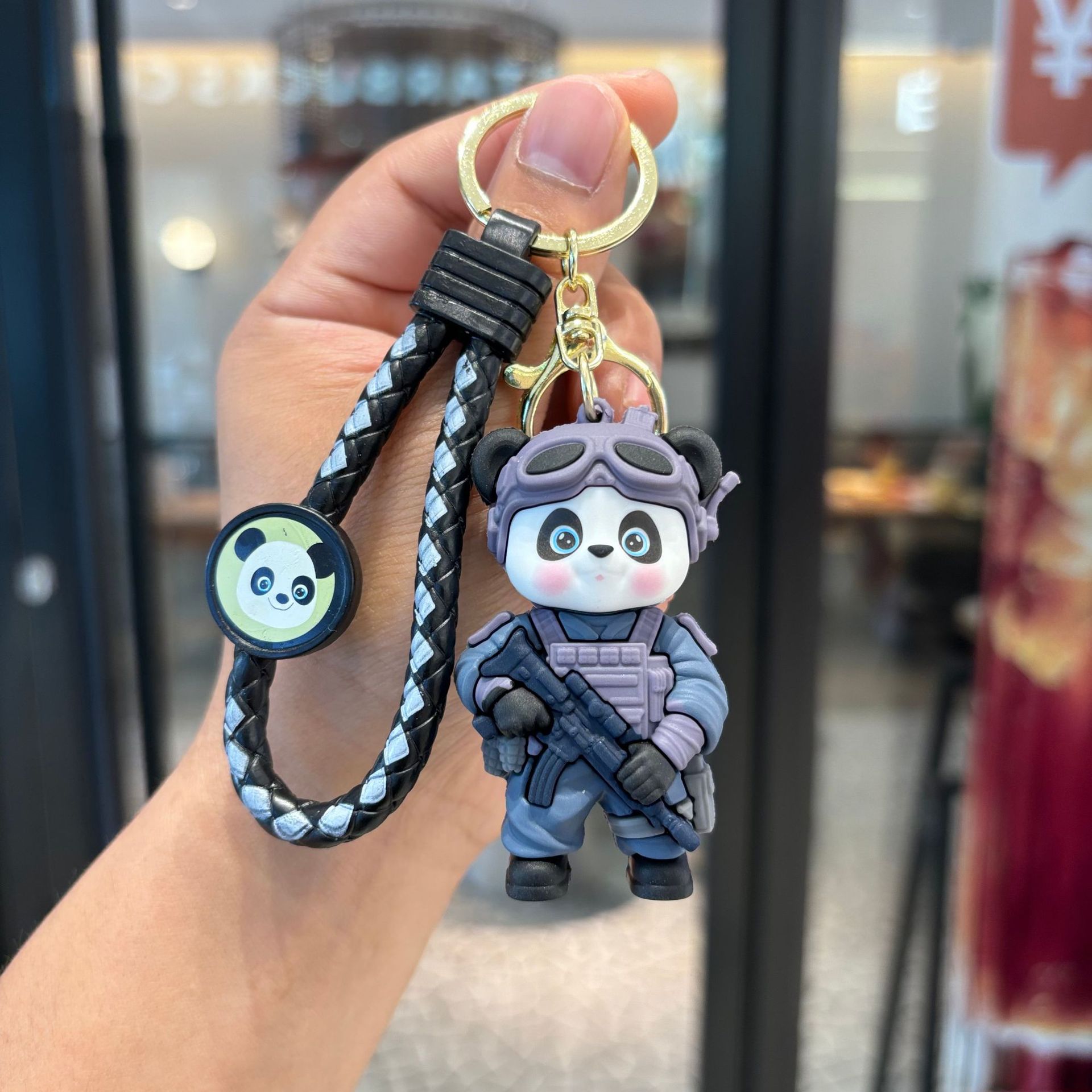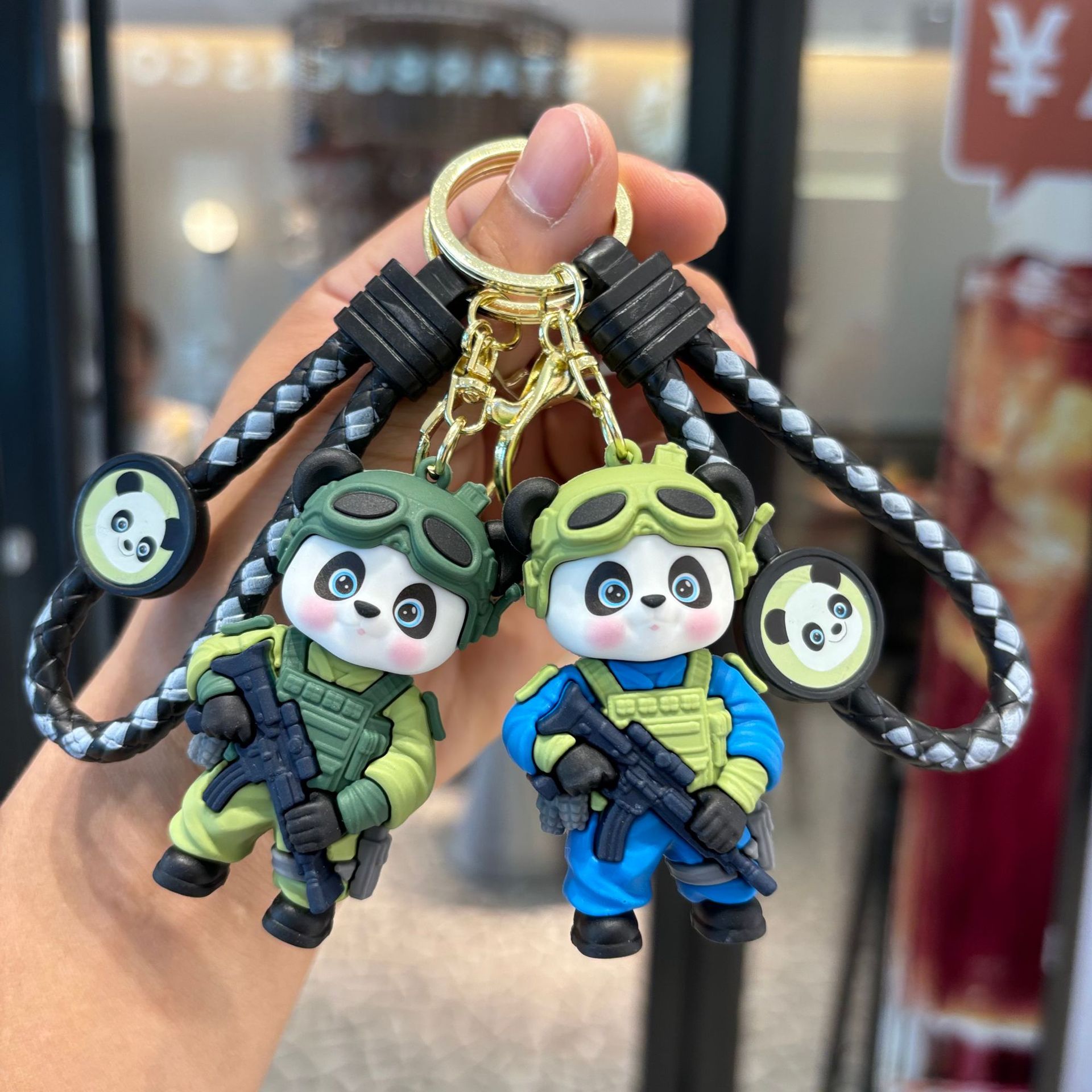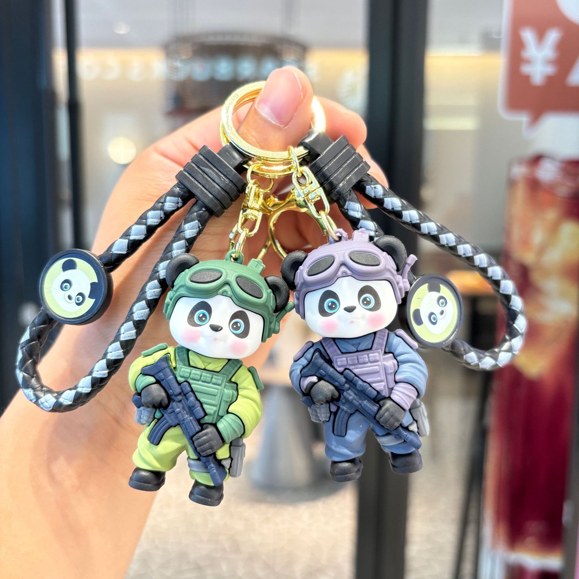 卡通熊猫可爱特勤武装枪械熊猫钥匙链男女包包配饰礼品钥匙扣批发