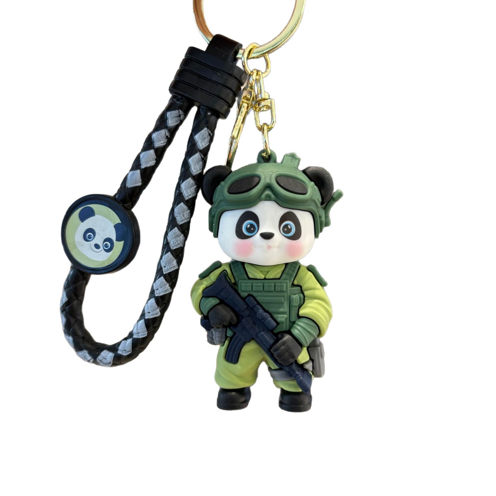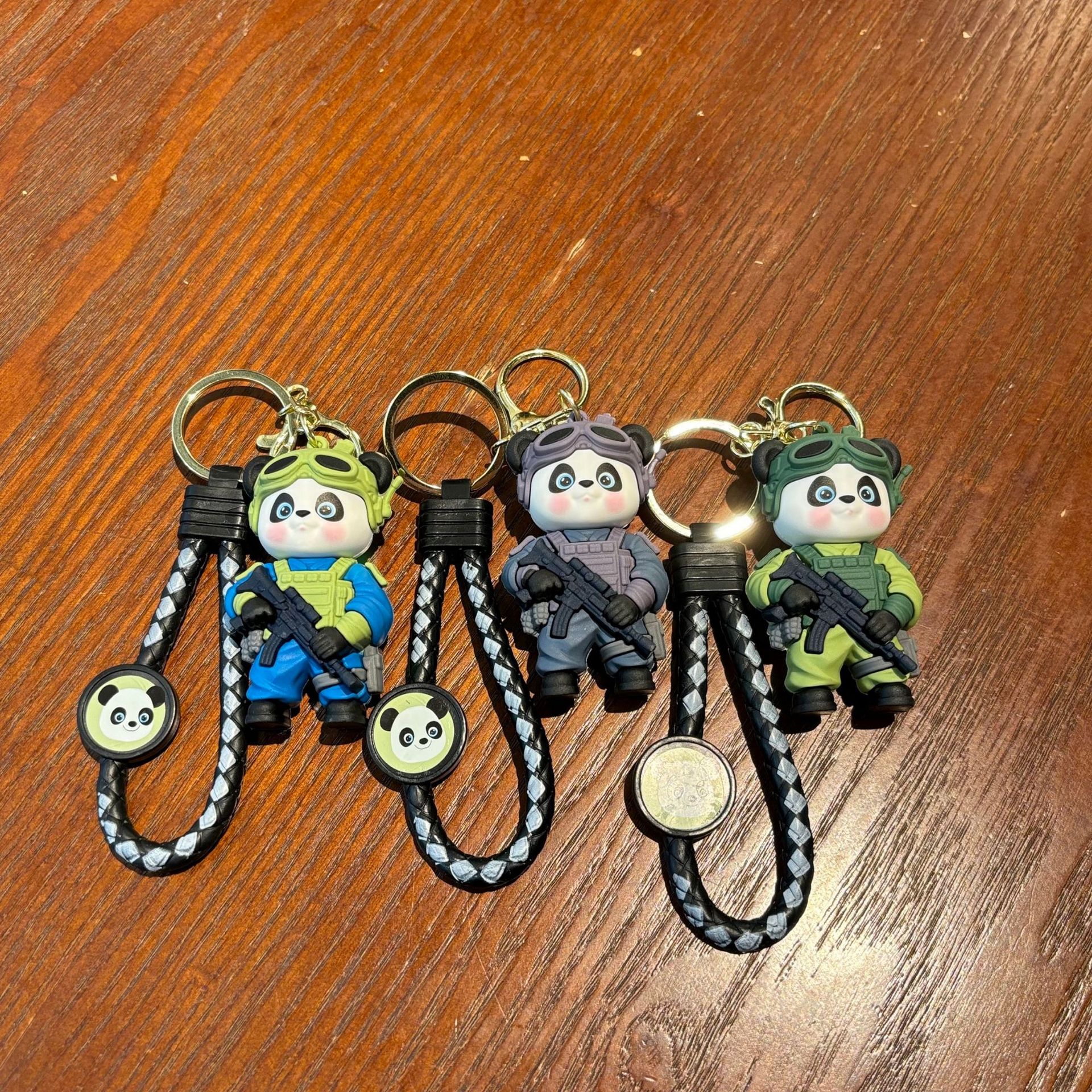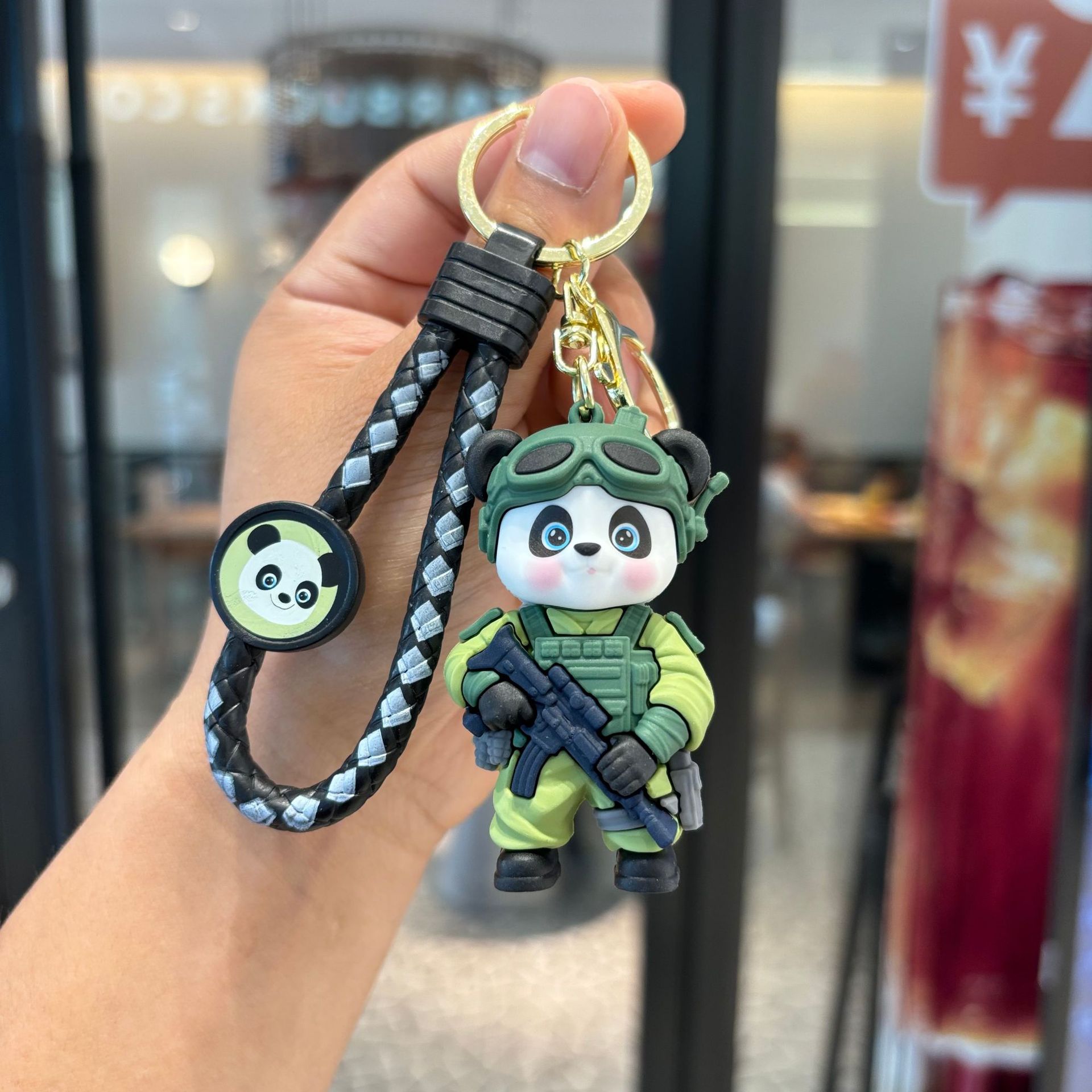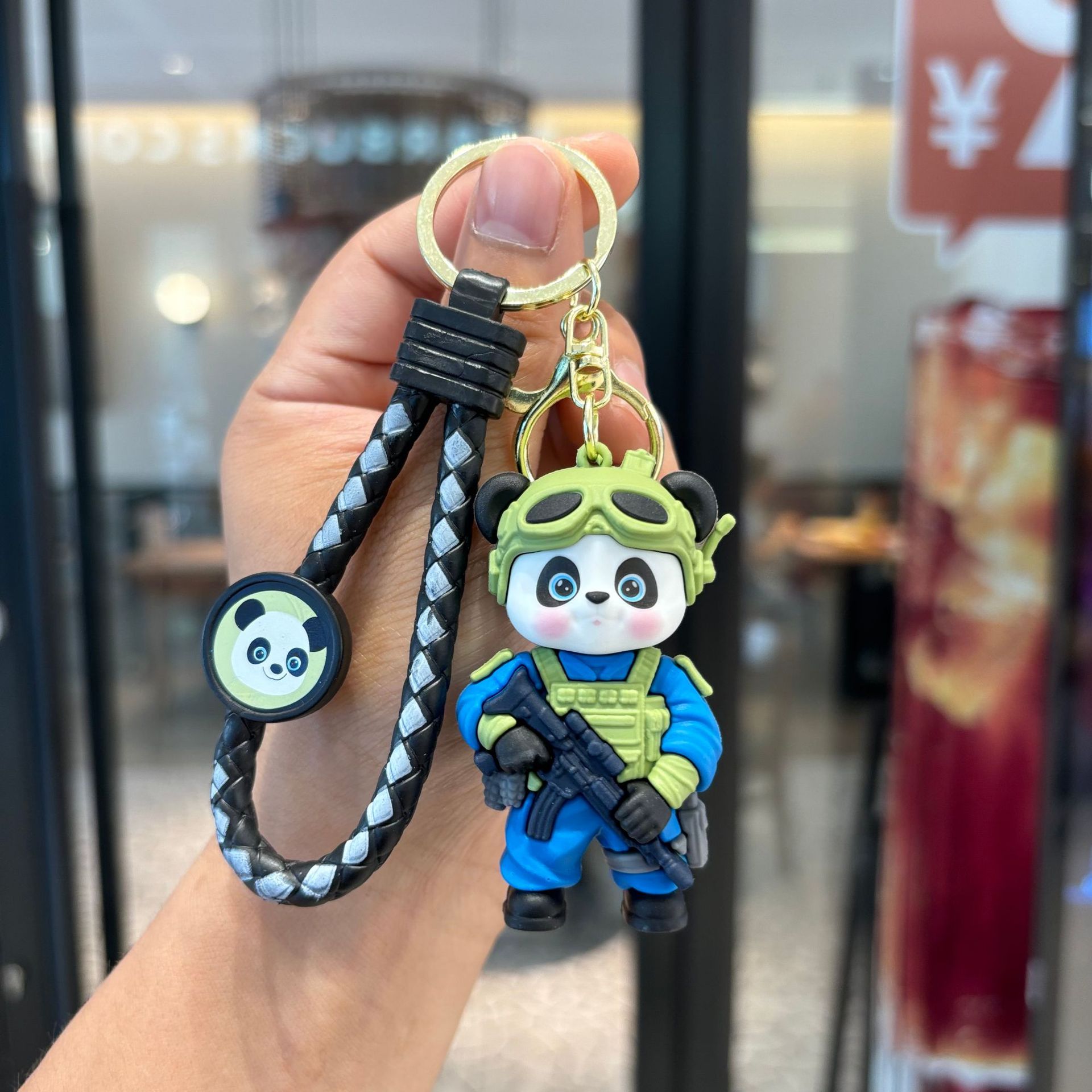 卡通熊猫可爱特勤武装枪械熊猫钥匙链男女包包配饰礼品钥匙扣批发