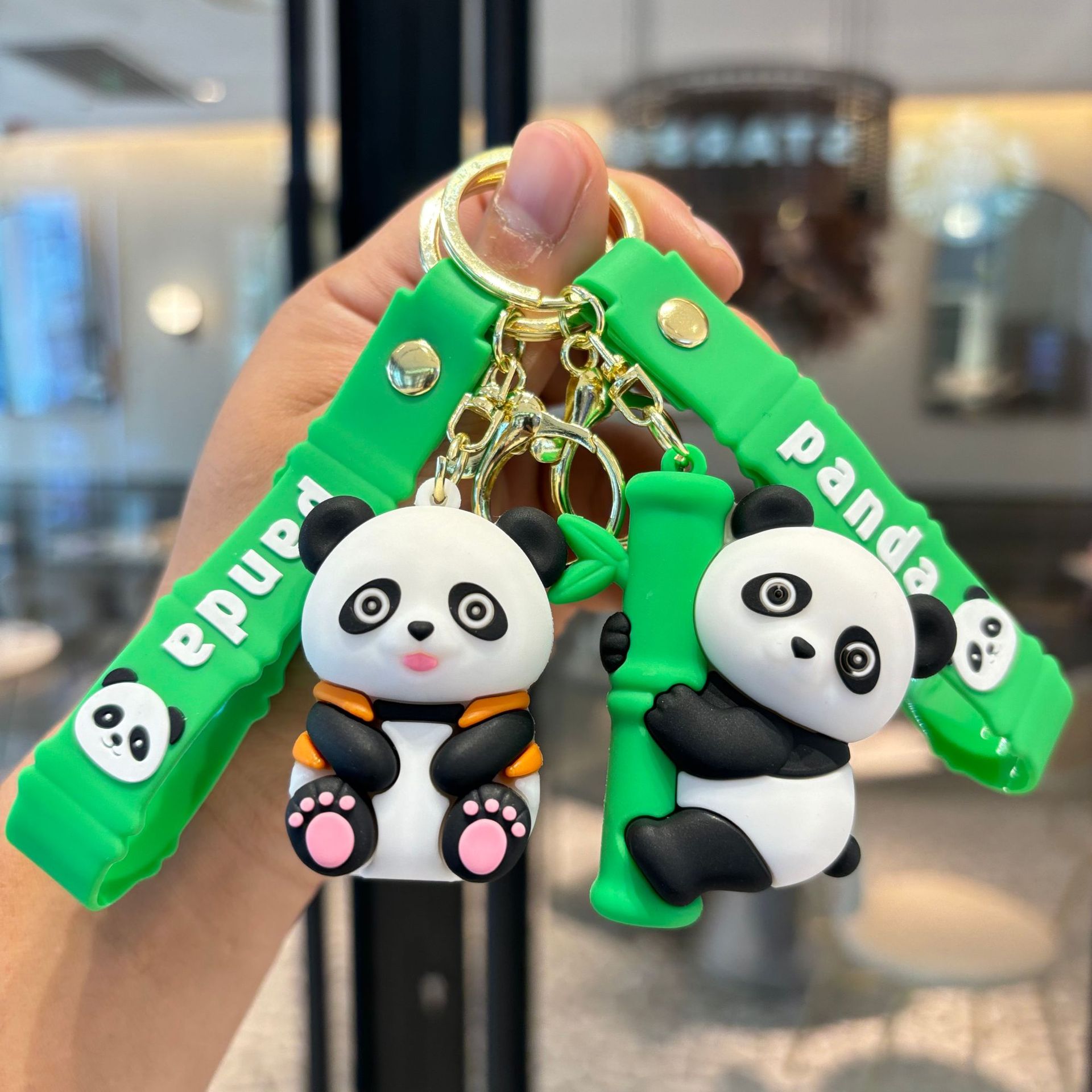 卡通小熊猫钥匙扣挂件pvc熊猫公仔钥匙链汽车背包挂饰抓娃机礼品