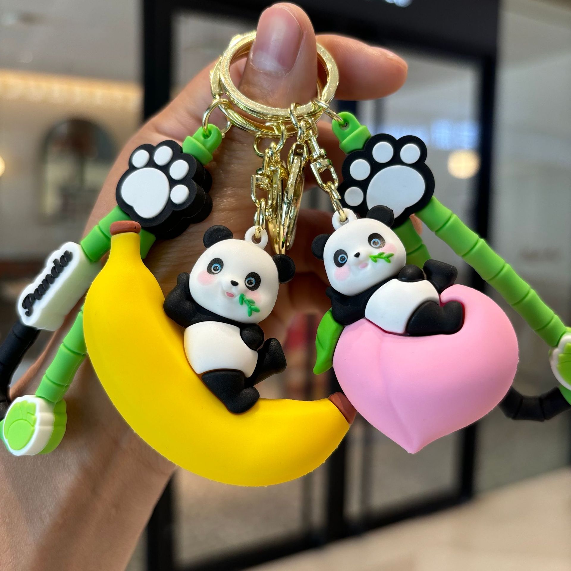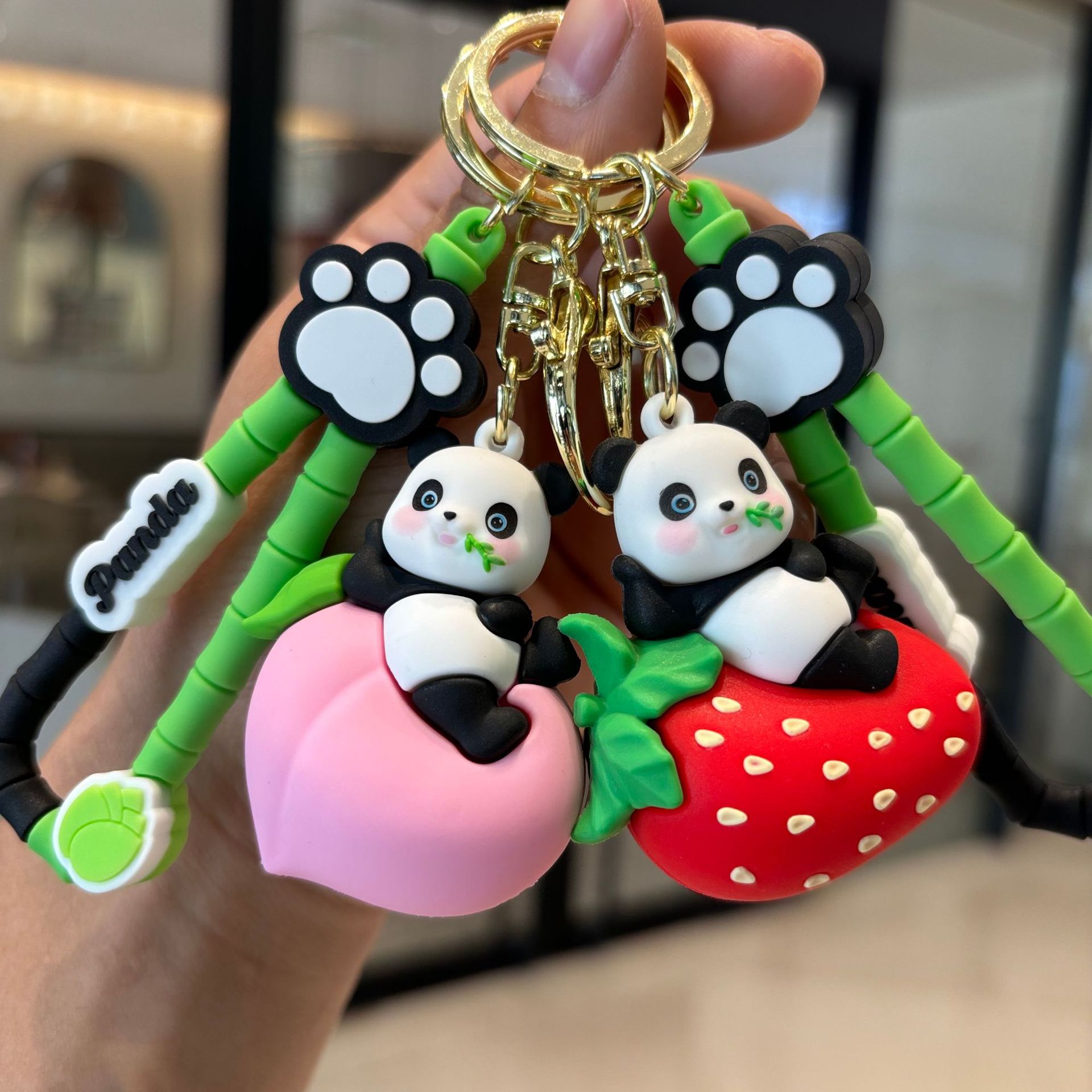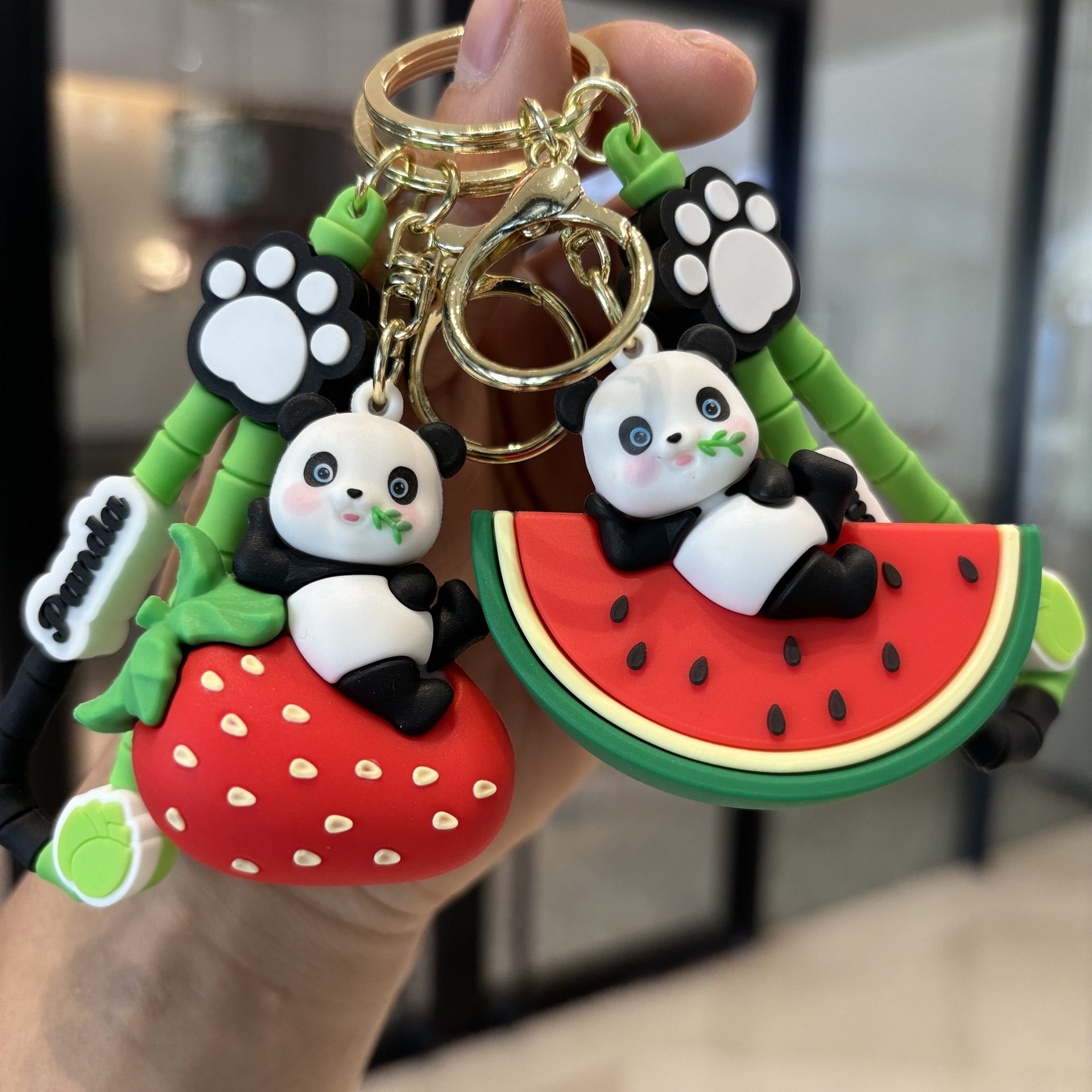 创意水果熊猫钥匙扣情侣卡通汽车包包公仔挂件钥匙链小礼品批发