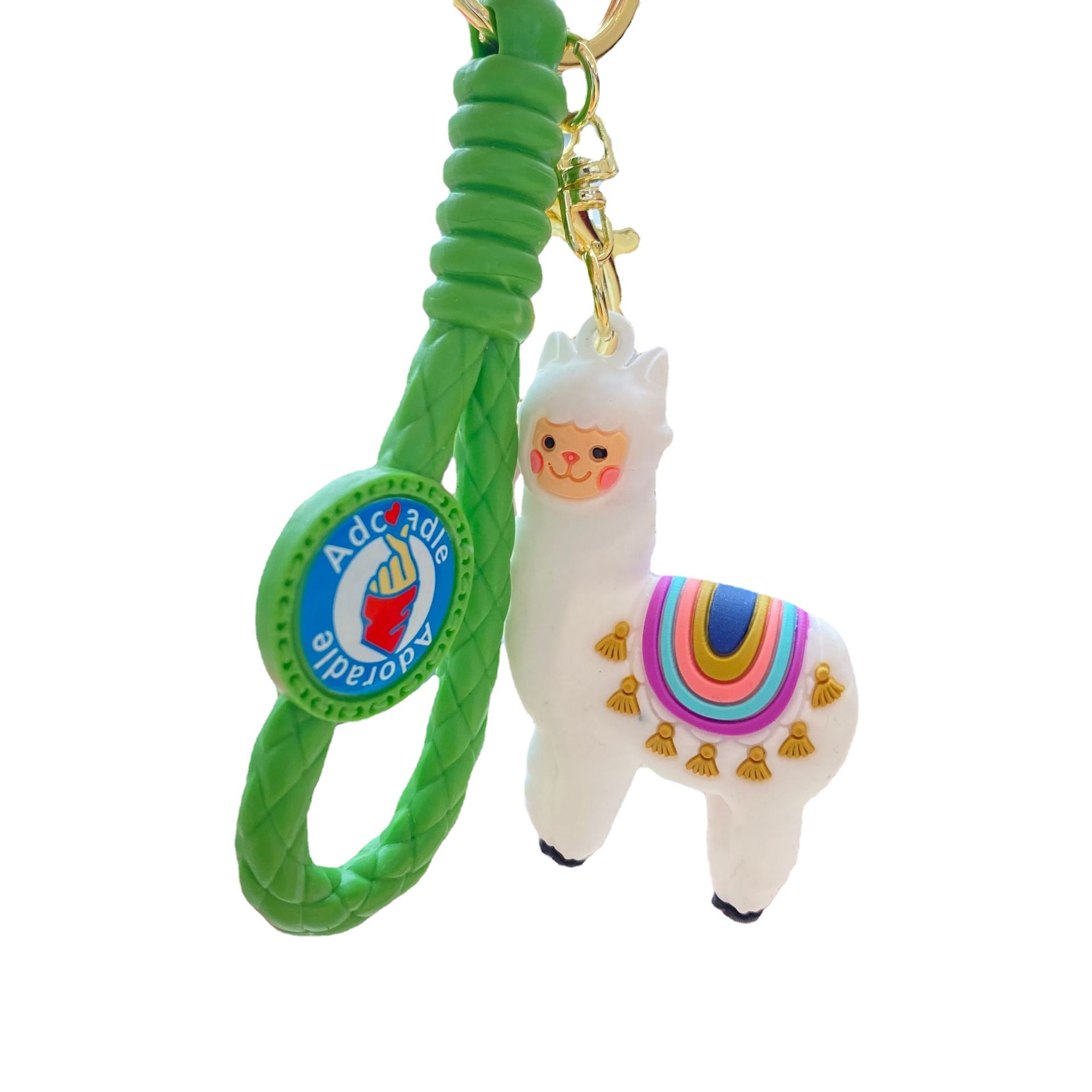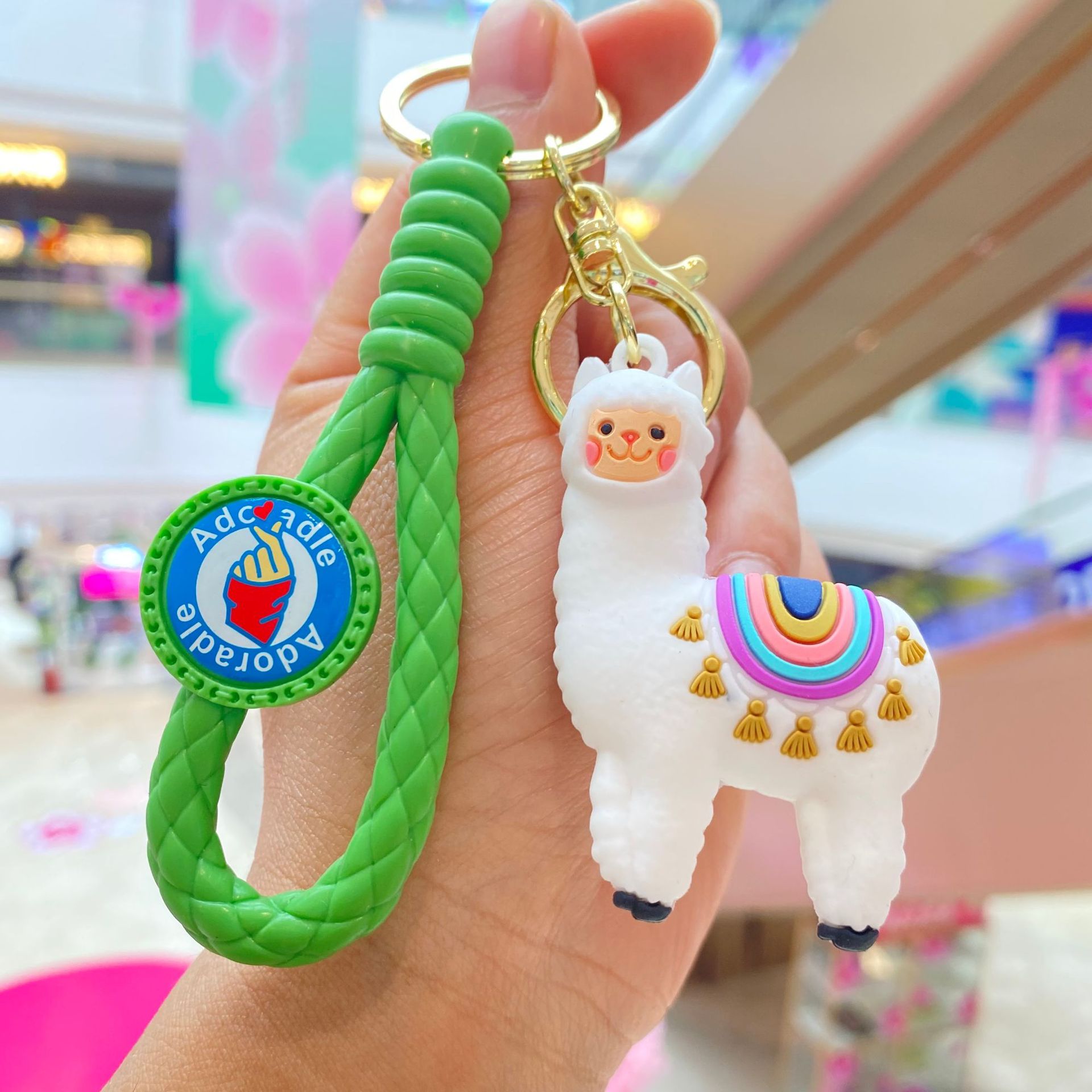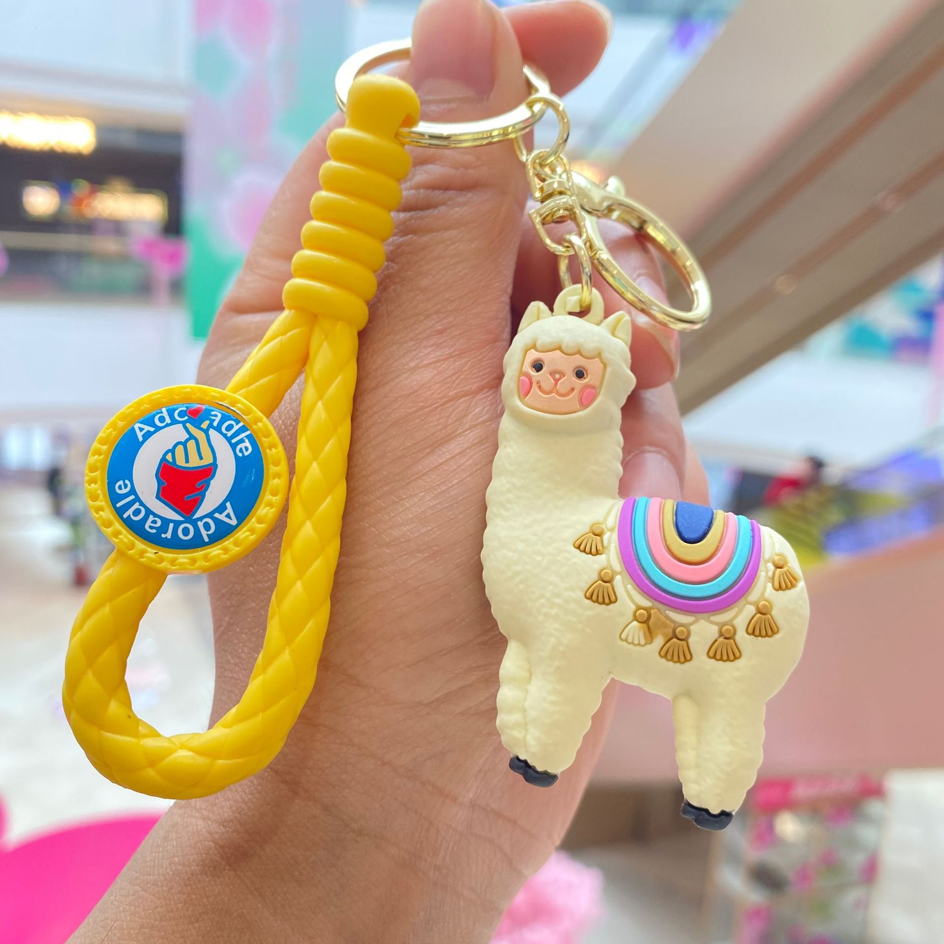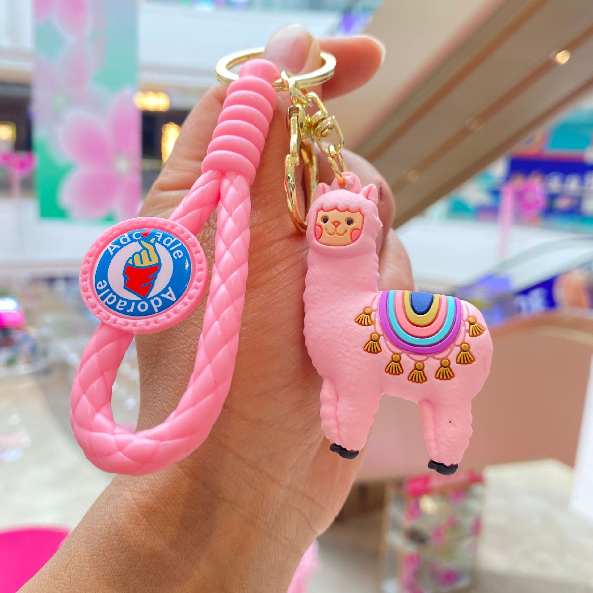新款可爱彩虹羊驼钥匙扣pvc软胶挂件 创意汽车钥匙链圈包包挂饰品