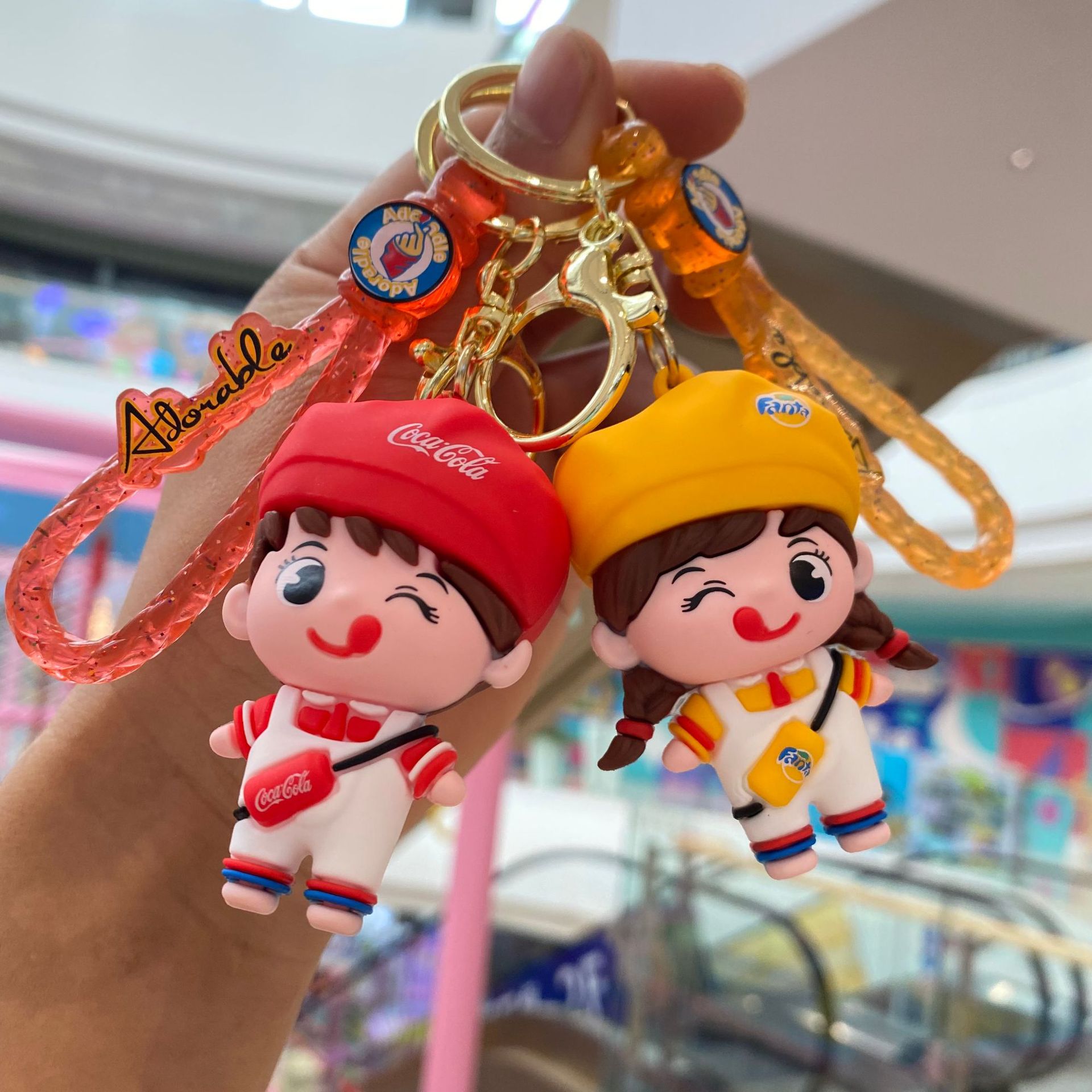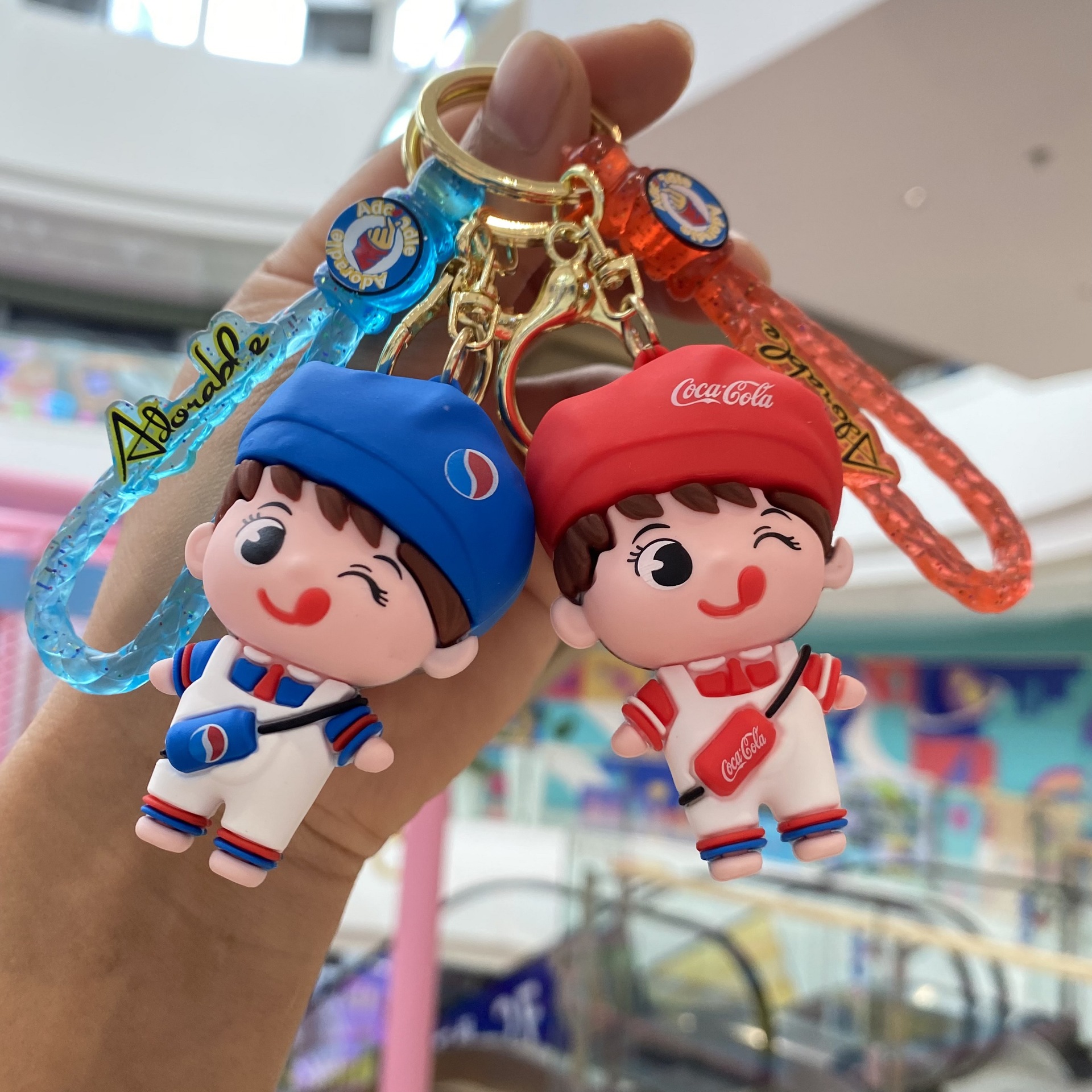 卡通饮料汽水情侣钥匙扣可爱公仔书包挂件钥匙链抓娃机小礼物批发