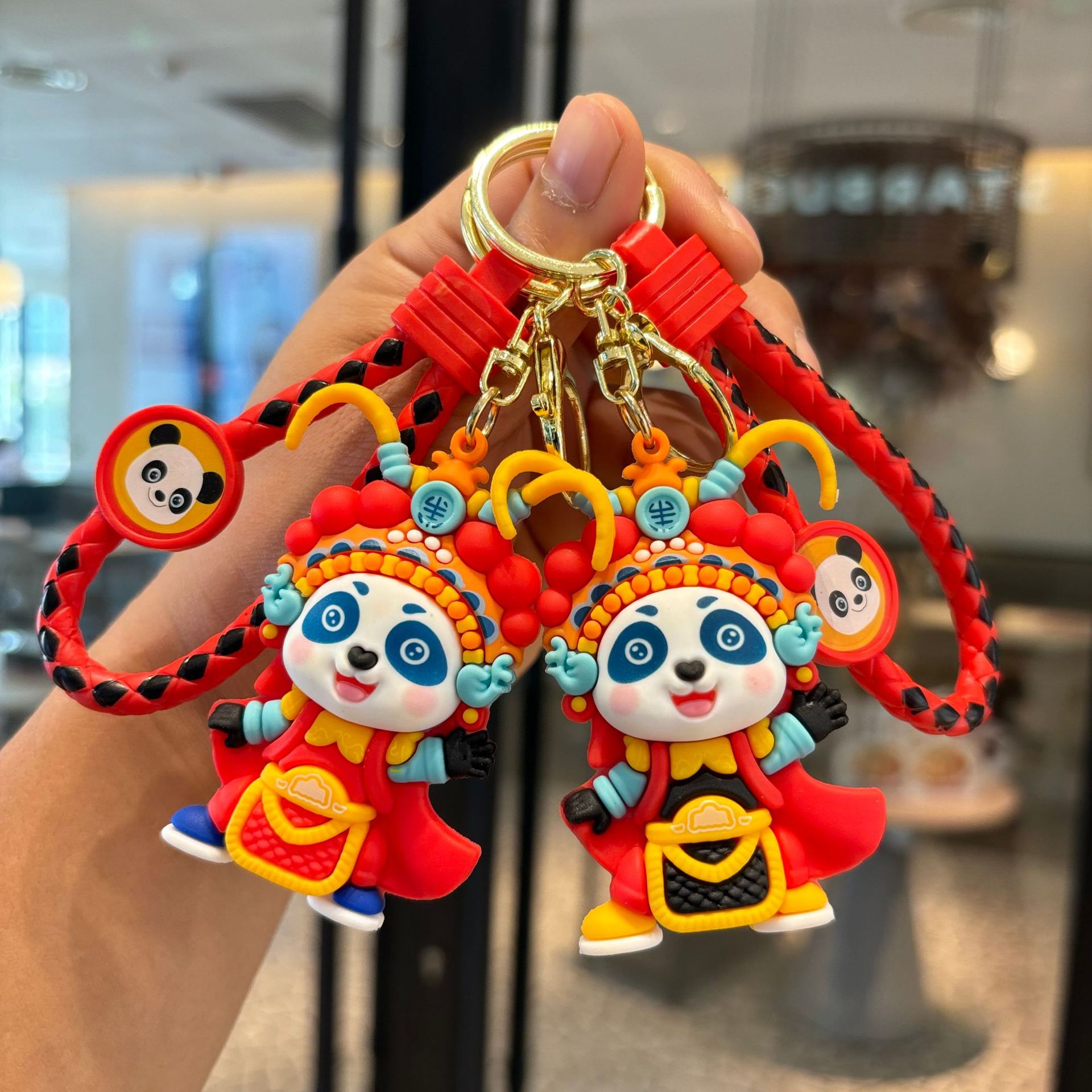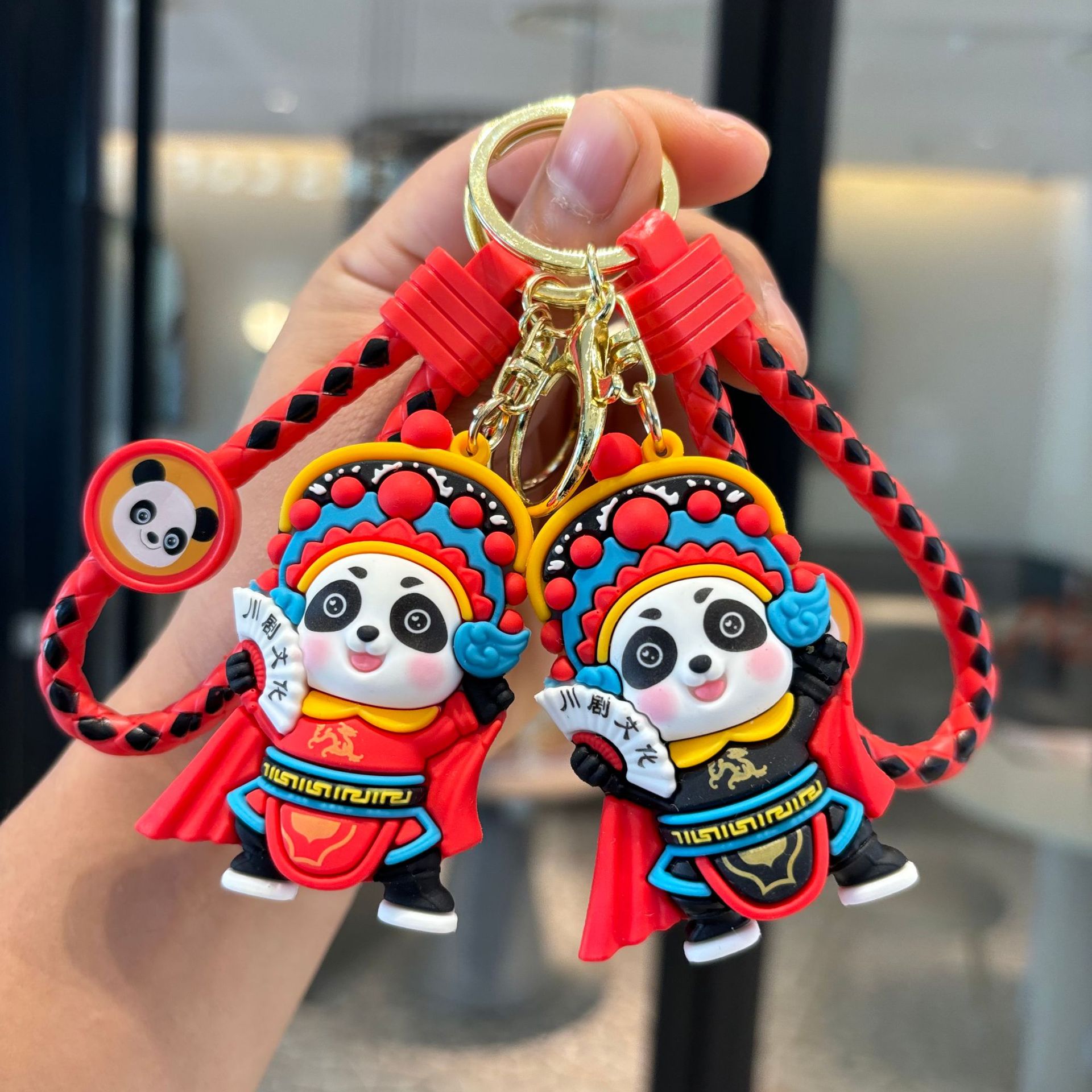 国风戏曲熊猫钥匙扣可爱情侣公仔挂件汽车包包挂饰抓娃机小礼品
