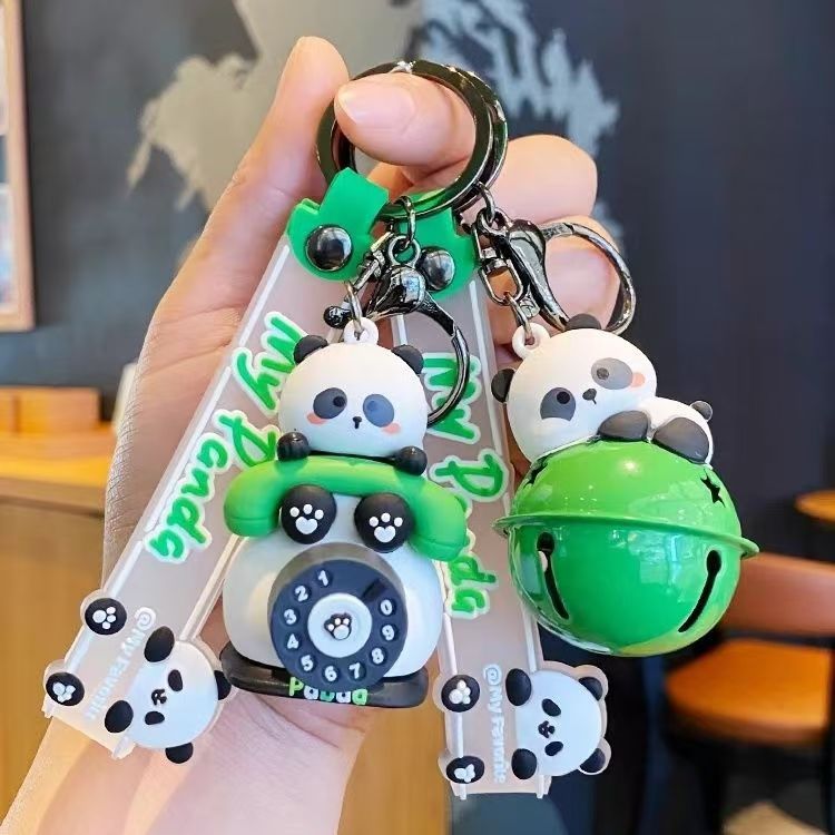 创意可爱发财旋转抱抱熊猫钥匙扣卡通情侣汽车书包钥匙链礼品硅胶