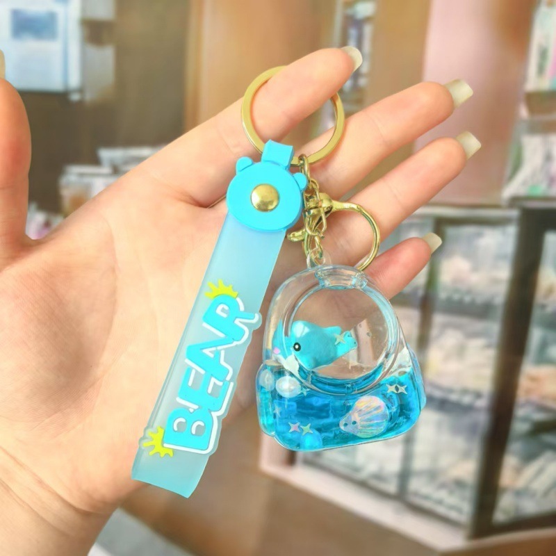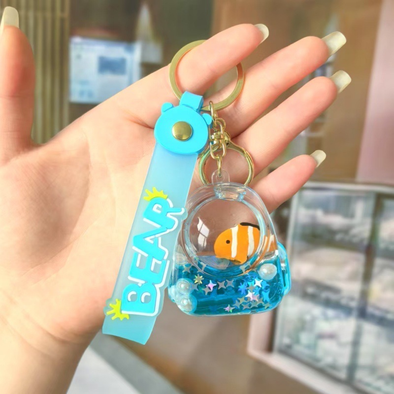 入油海洋动物流沙瓶卡通鲨鱼海龟挂件创意钥匙扣挂件书包挂饰礼物