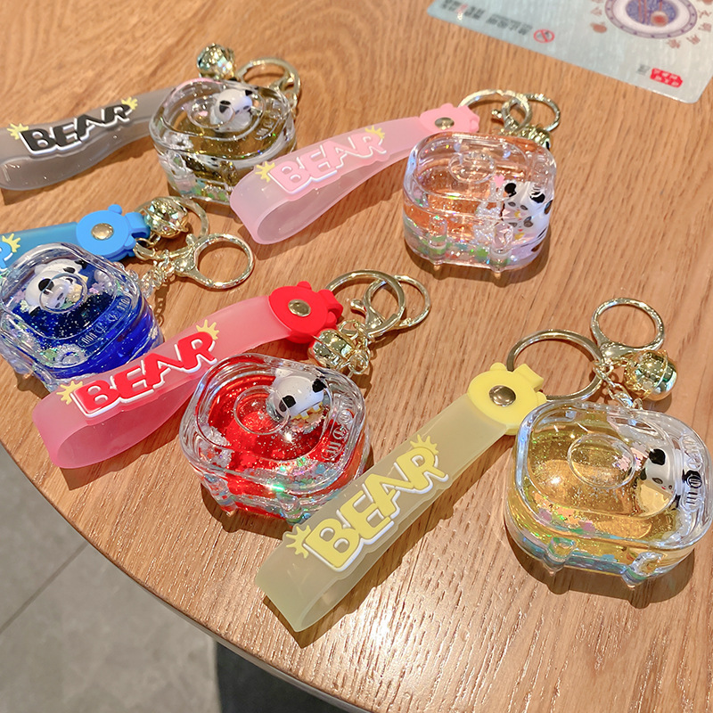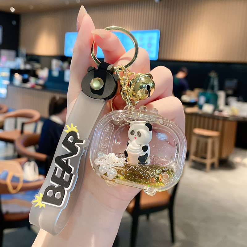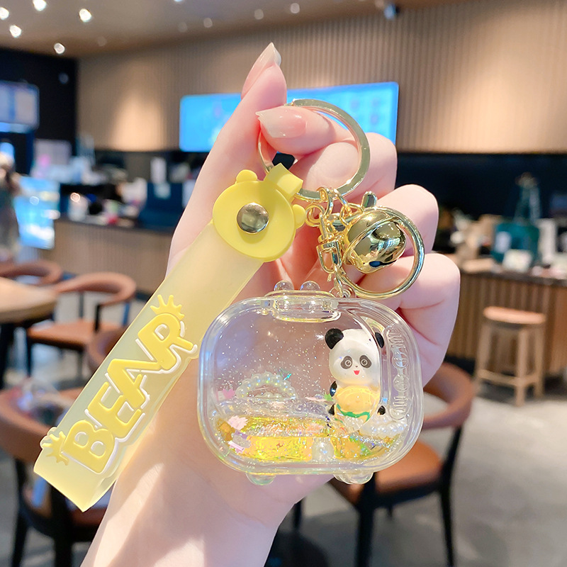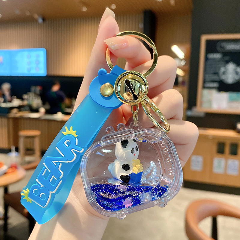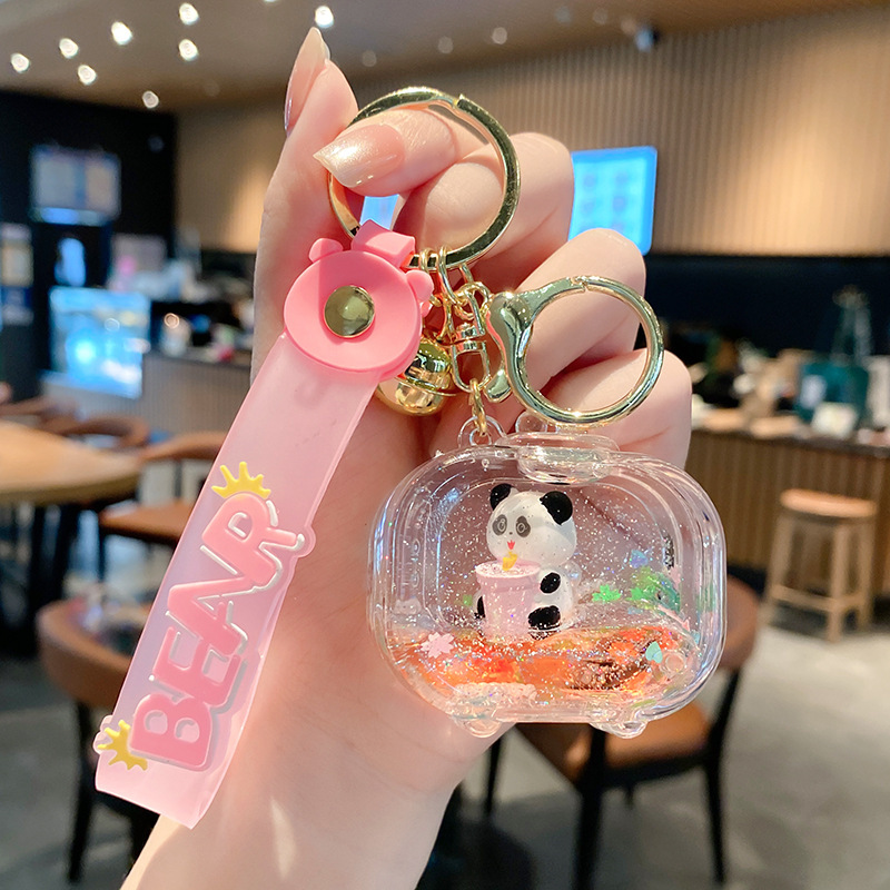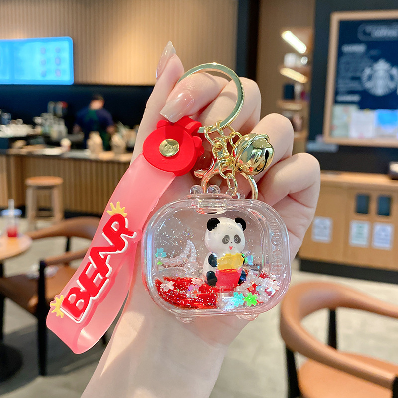 亚克力入油国潮电视机熊猫流沙瓶钥匙扣可爱饰品熊猫漂浮公仔挂件