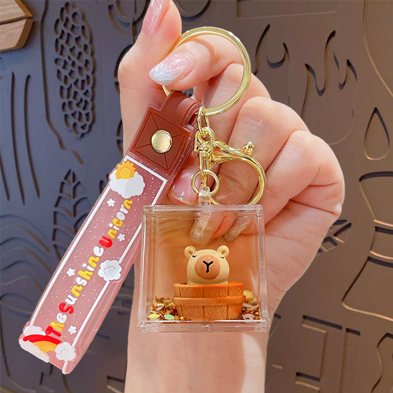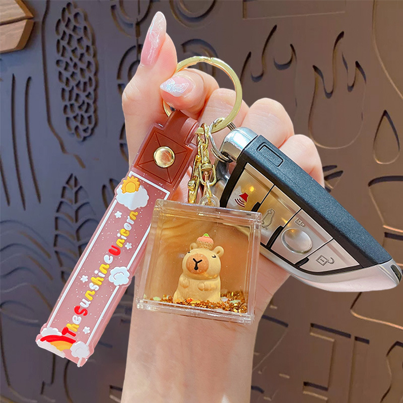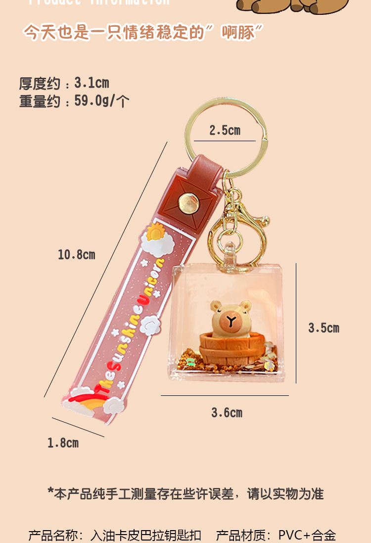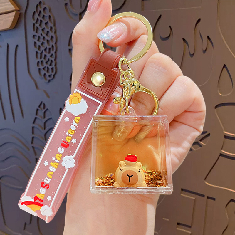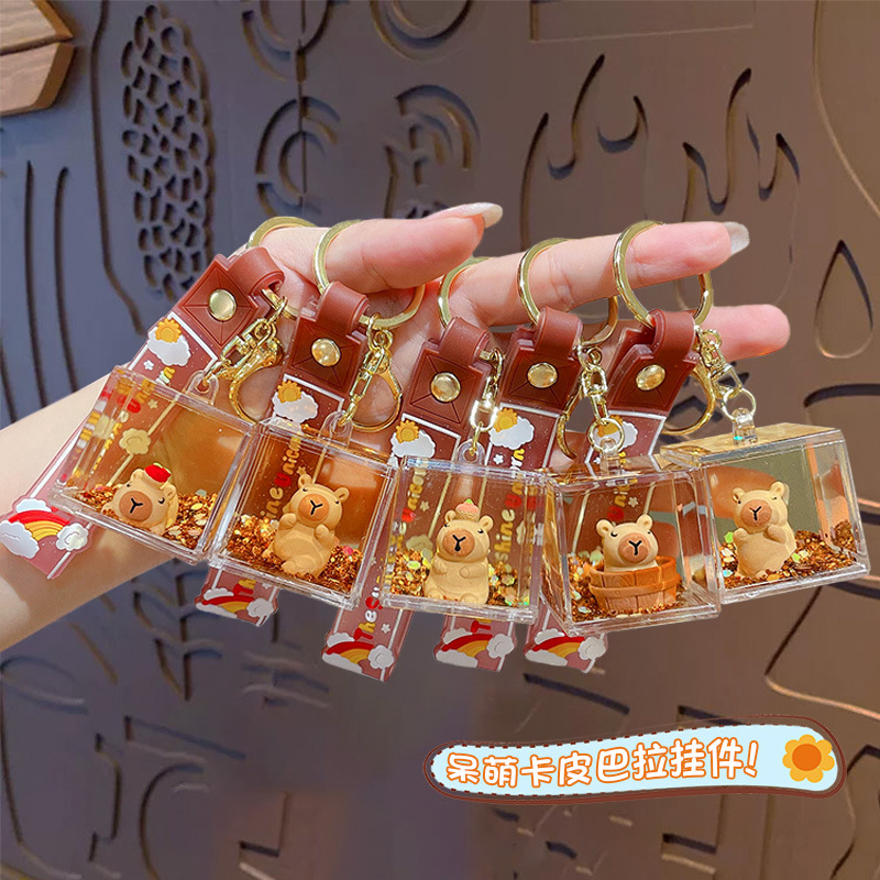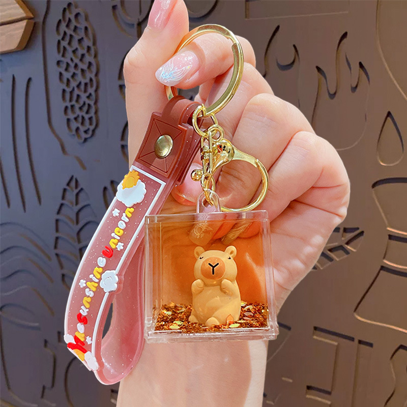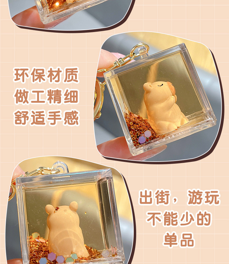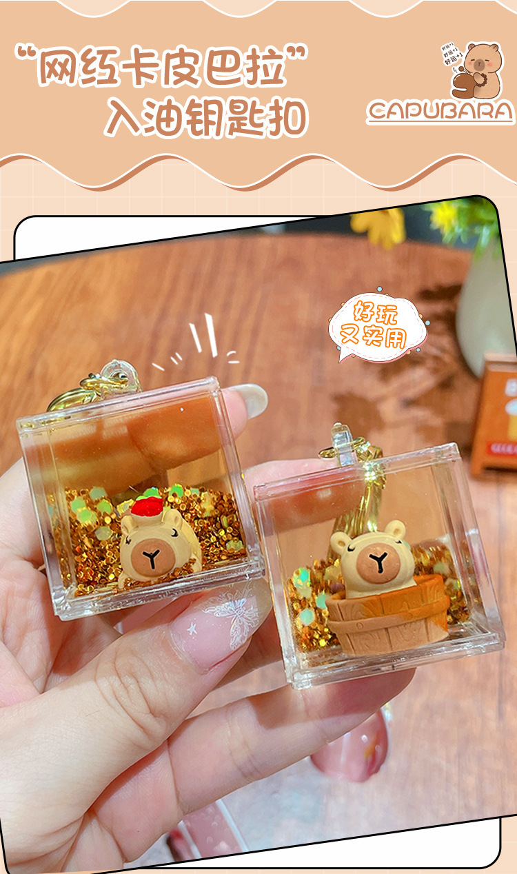 亚克力入油流沙瓶可爱卡皮巴拉钥匙扣包包挂件液体流沙玩具钥匙链