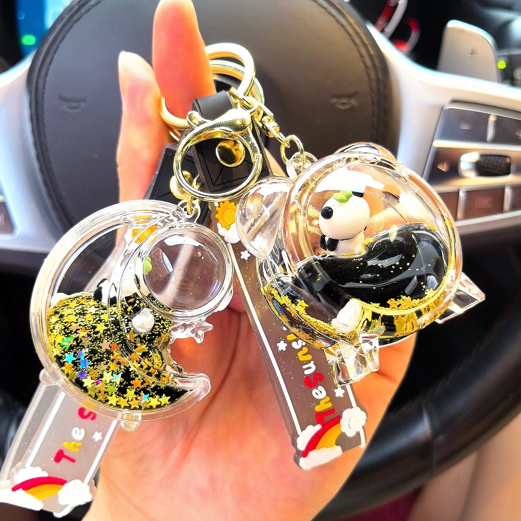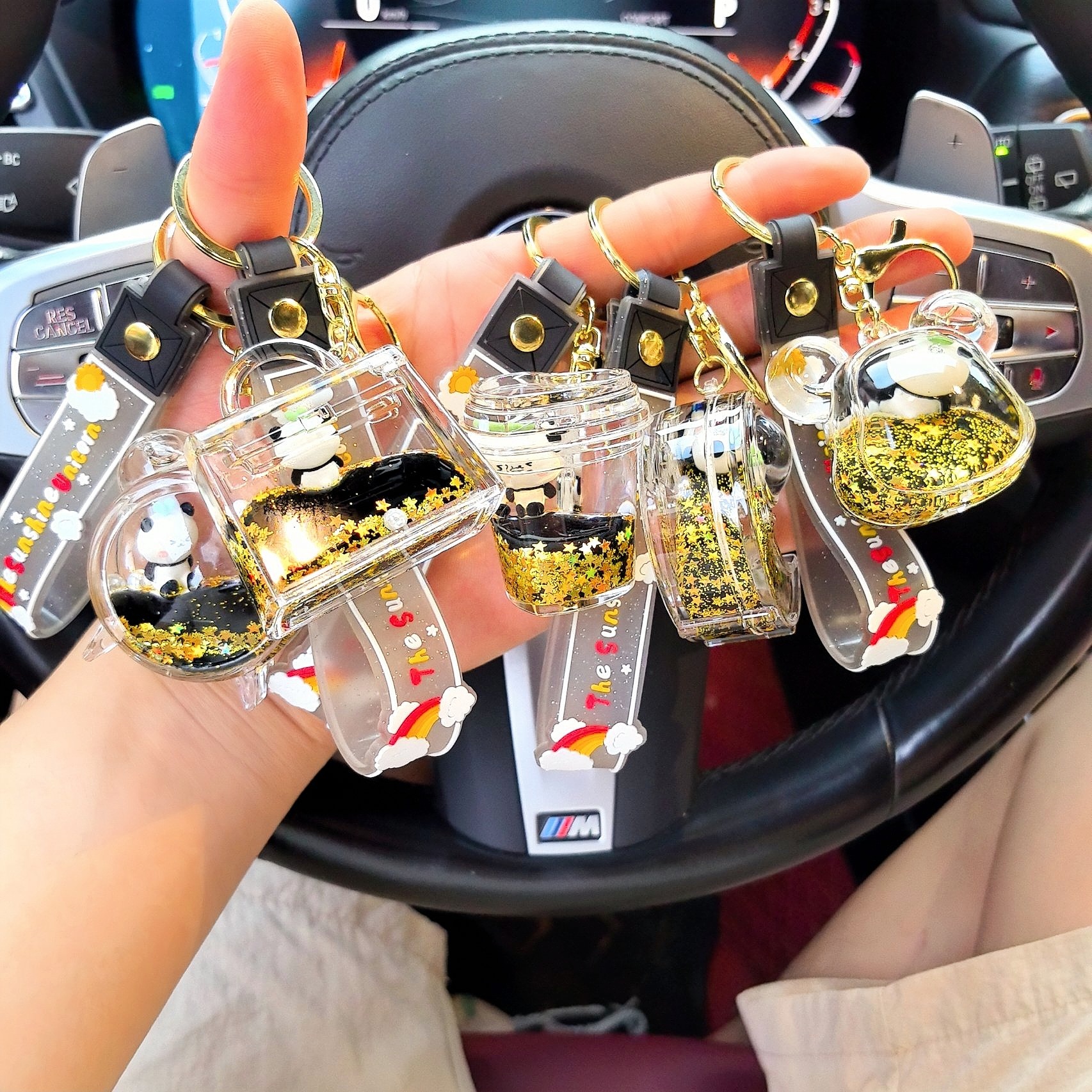 国潮入油黑金熊猫流沙瓶钥匙扣可爱精致液体长草熊猫公仔挂件礼品