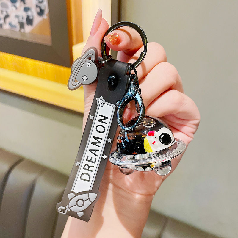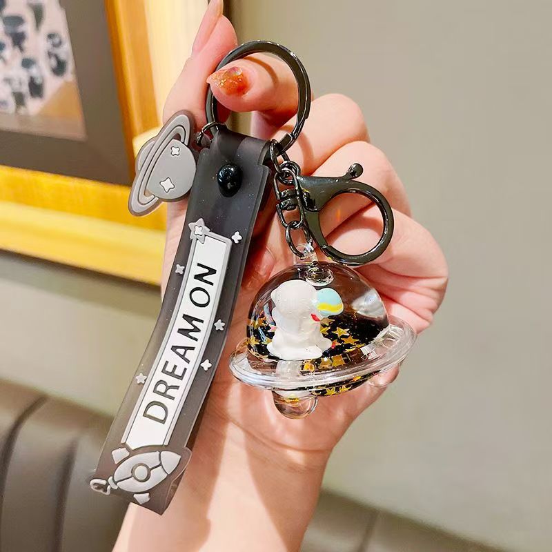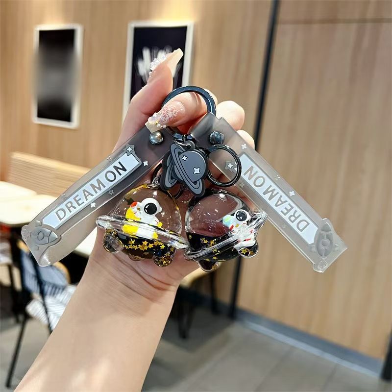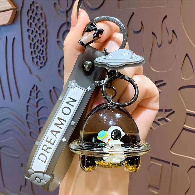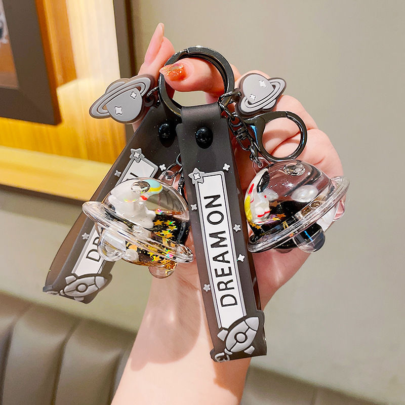 创意漂流瓶黑金太空飞船入油钥匙扣可爱漂浮液体宇航员流沙瓶挂件