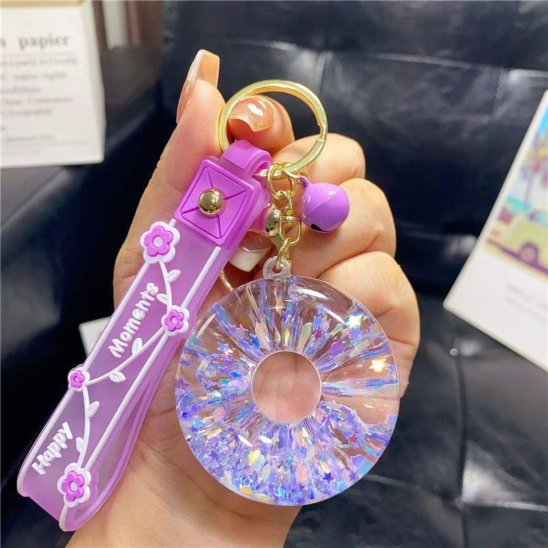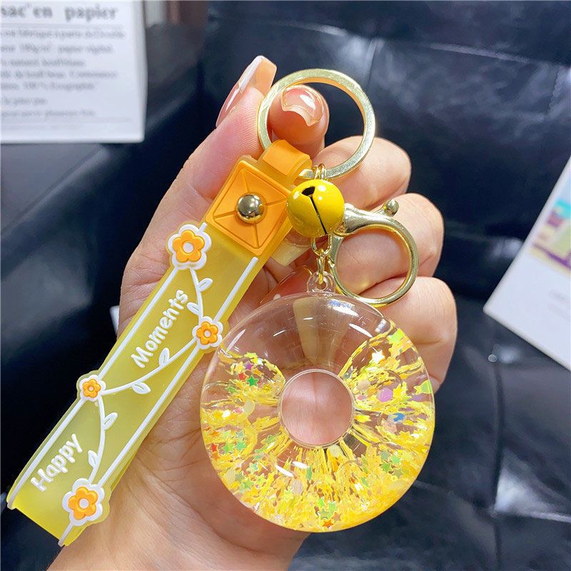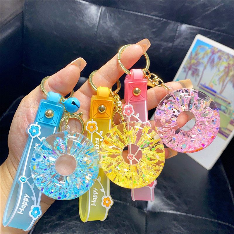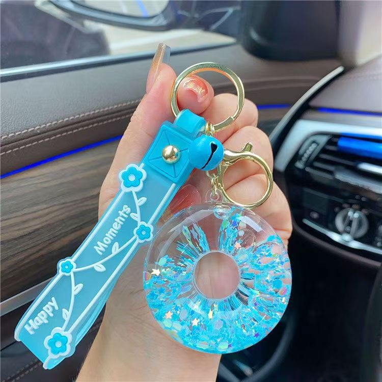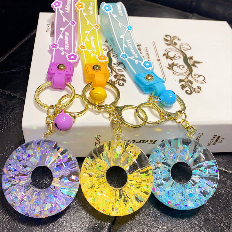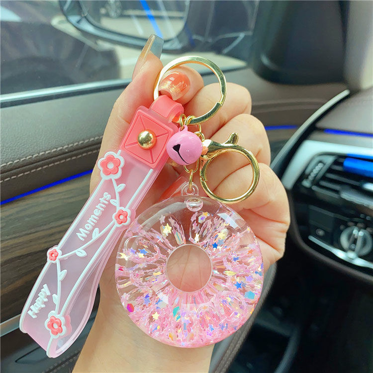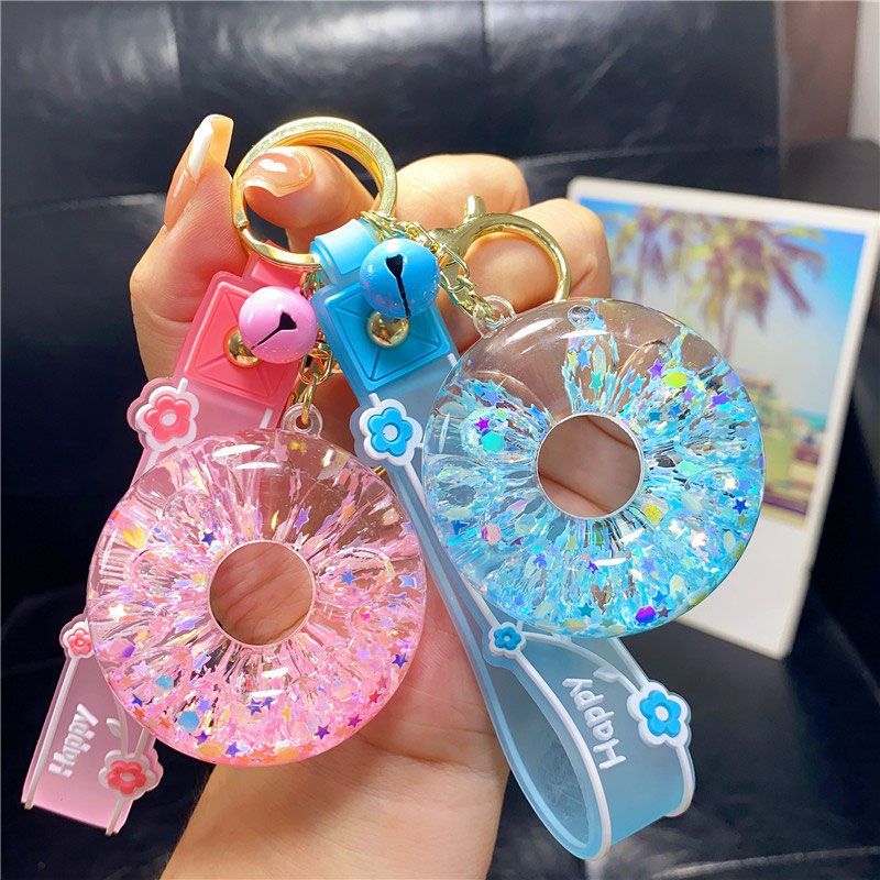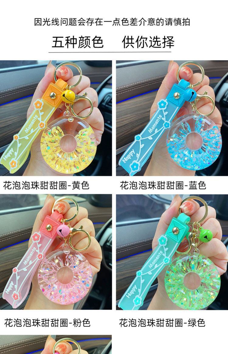 网红入油小清新液体流沙泡泡珠甜甜圈钥匙扣精致情侣包包挂件挂饰