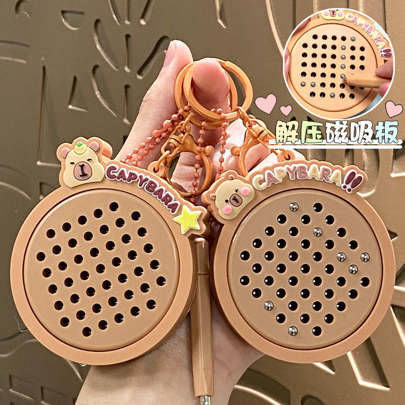 创意卡皮巴拉解压磁吸钢珠画板钥匙扣可爱卡通钥匙链儿童包包挂件