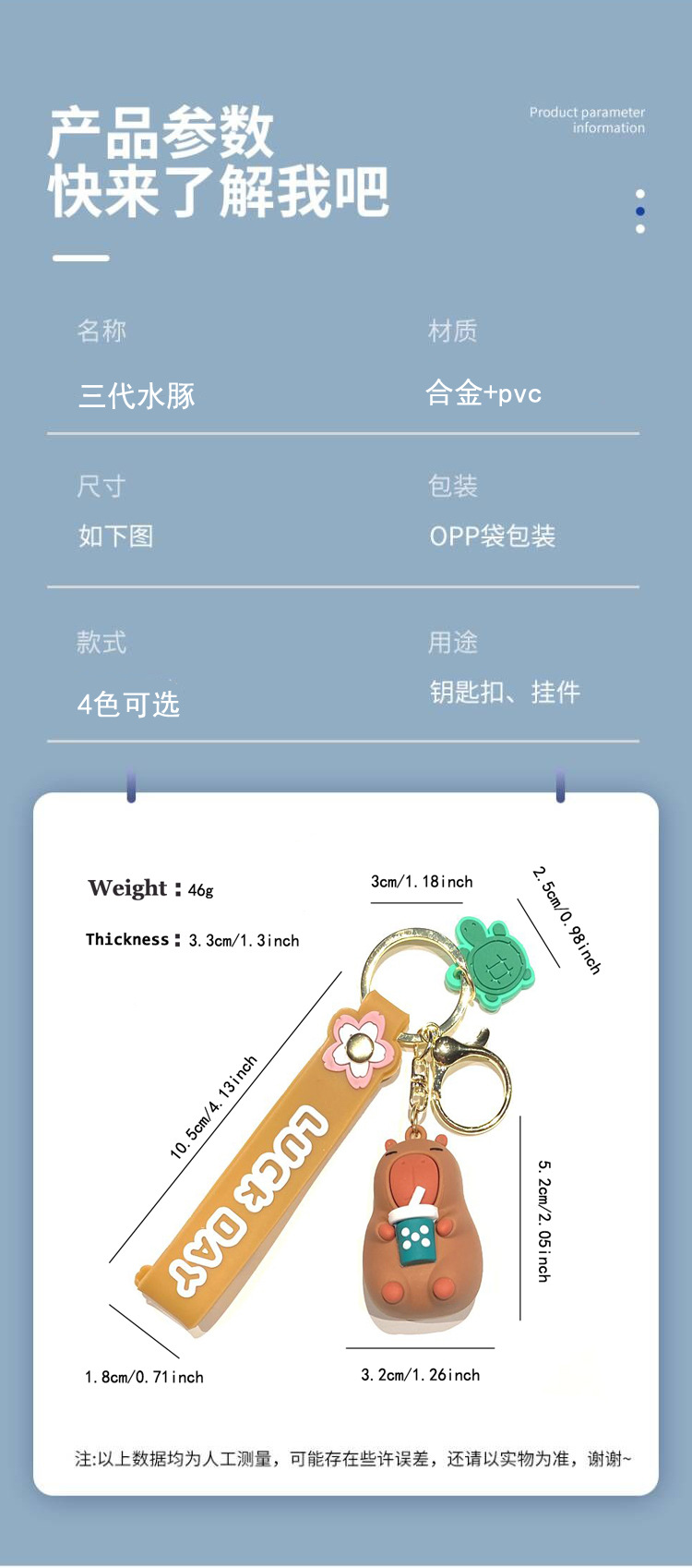 跨境新款钥匙扣卡皮巴拉挂件可爱公仔包包钥匙链娃娃机小礼品批发