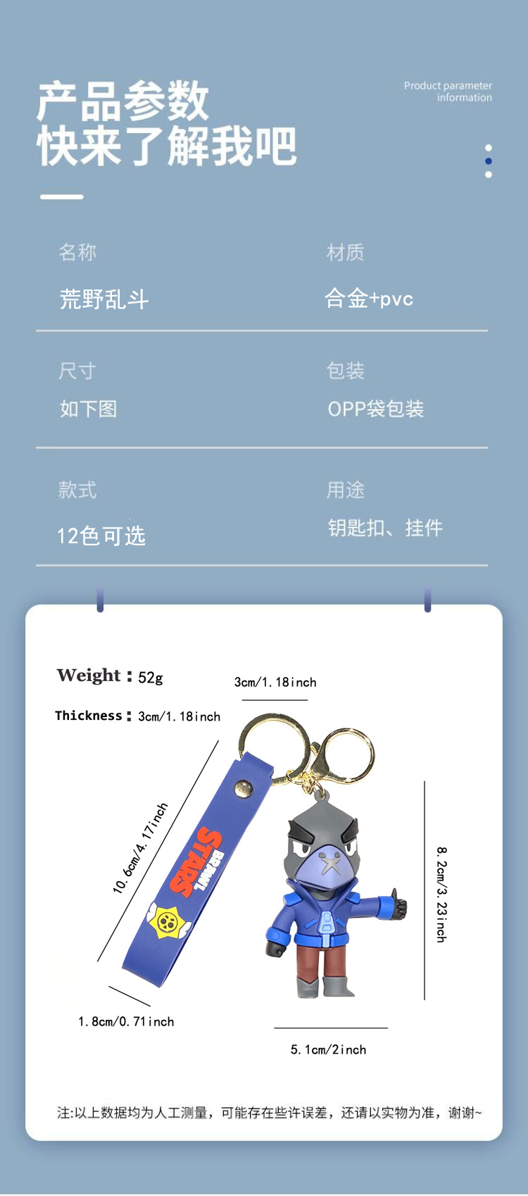 新款跨境创意卡通荒野乱斗公仔钥匙扣挂件包包汽车钥匙链配饰发