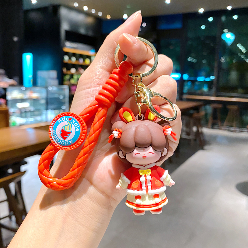 创意国风吉娃娃公仔卡通汽车链钥匙扣学生书包挂件情侣小礼品批发