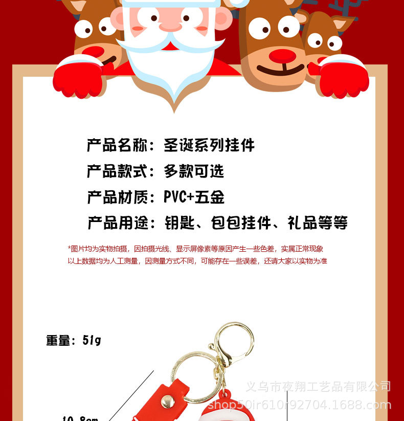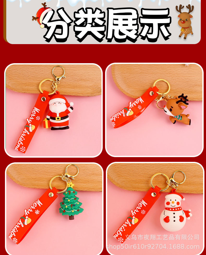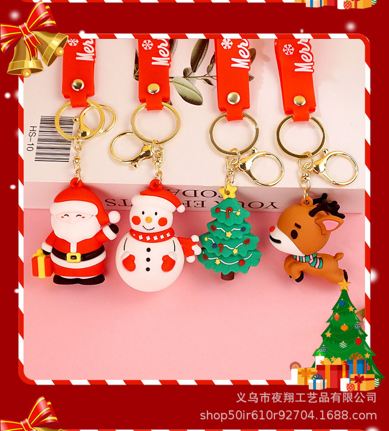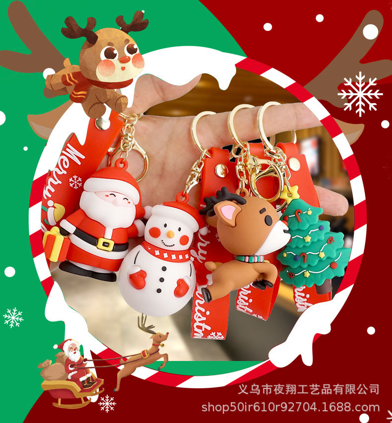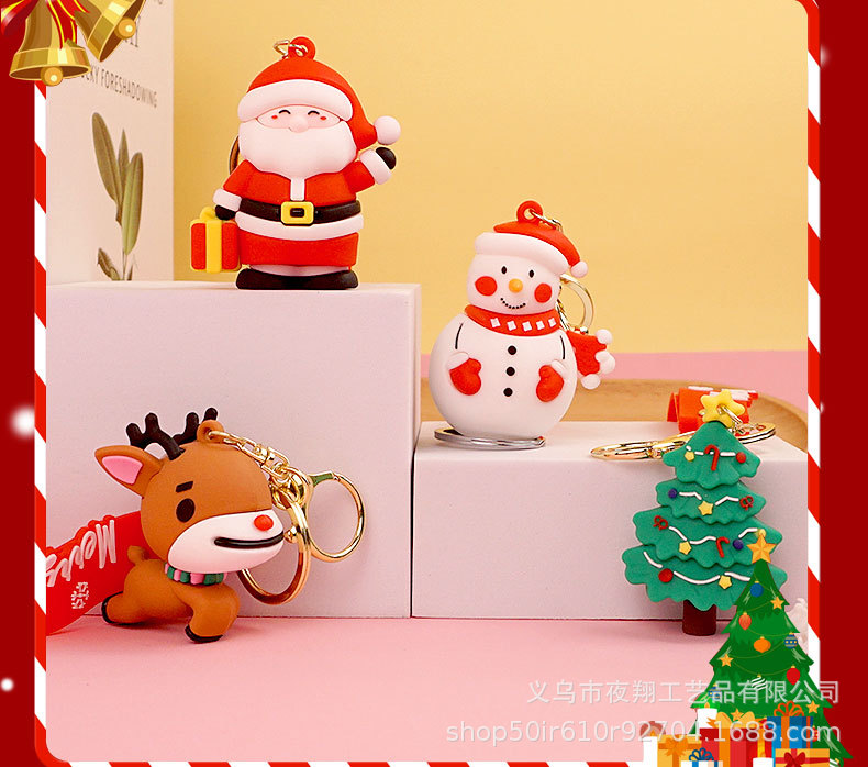 卡通滴胶圣诞老人钥匙扣小挂件可爱卡通包包挂饰圣诞节小礼物批发