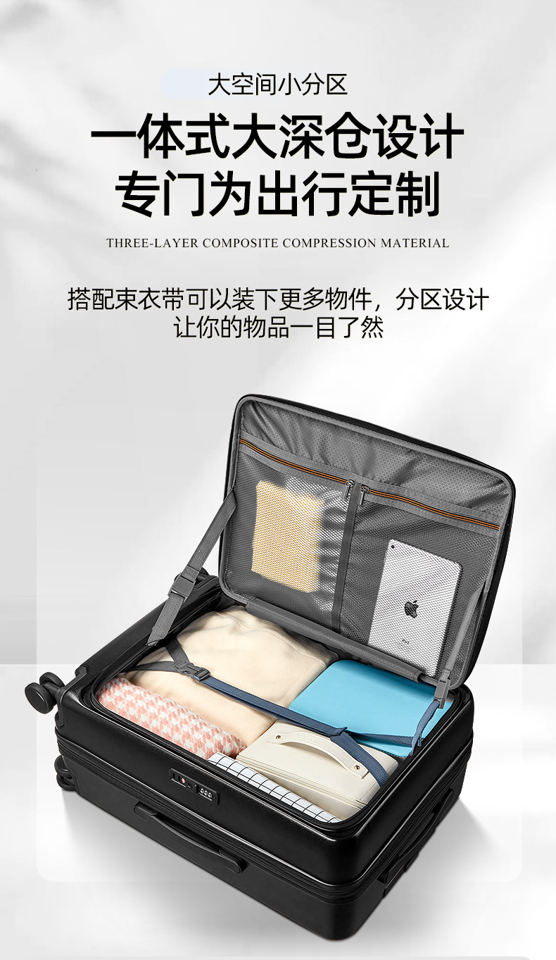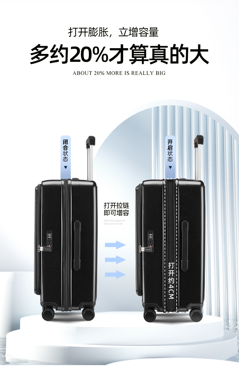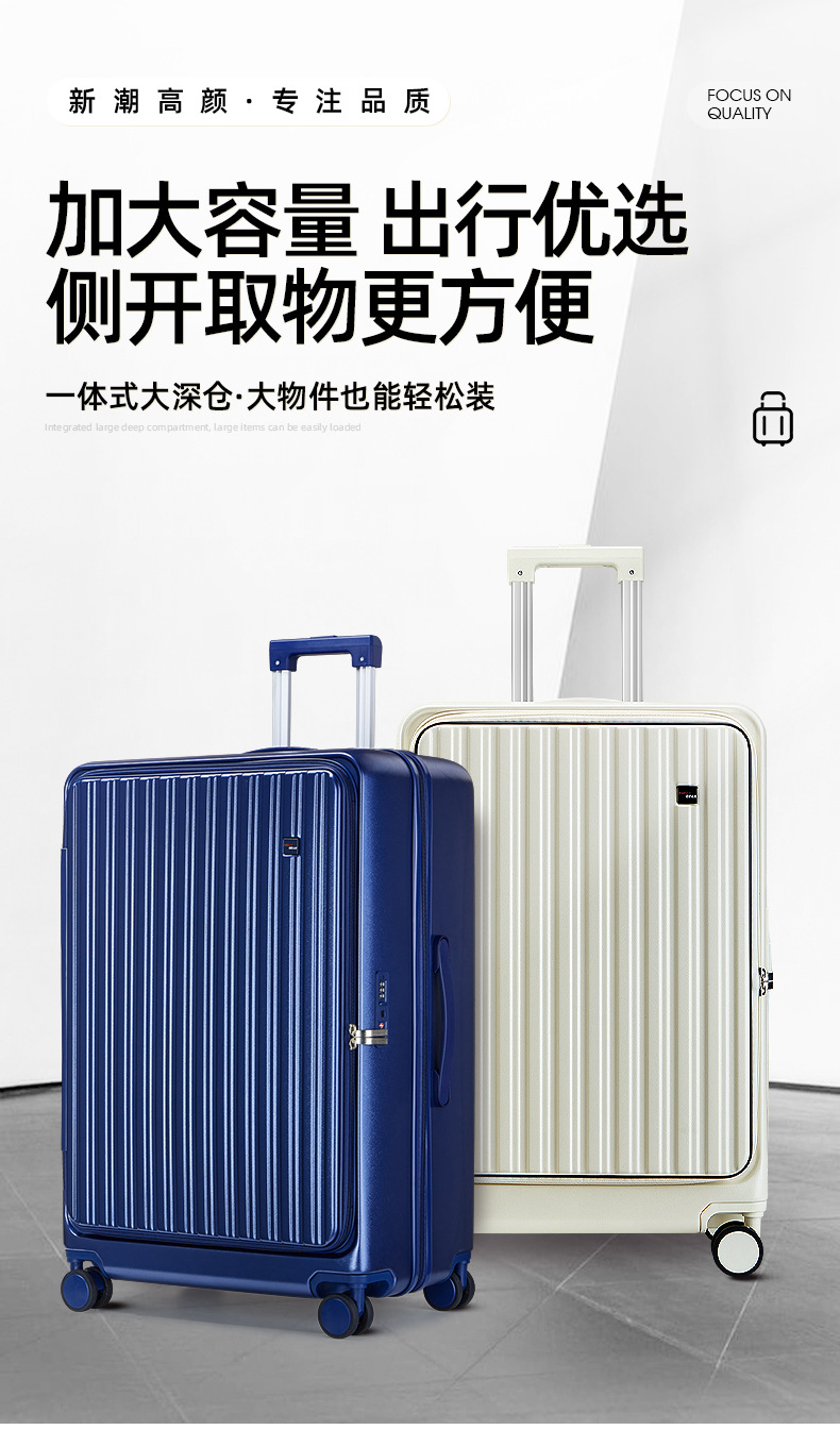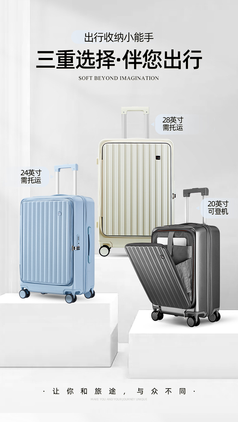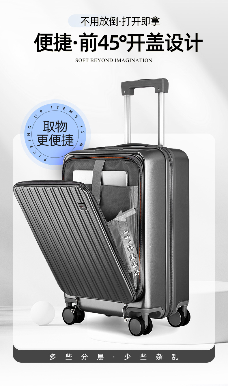 定制LOGO新款爆火多功能前开盖拉杆箱时尚行李箱万向轮登机旅行箱