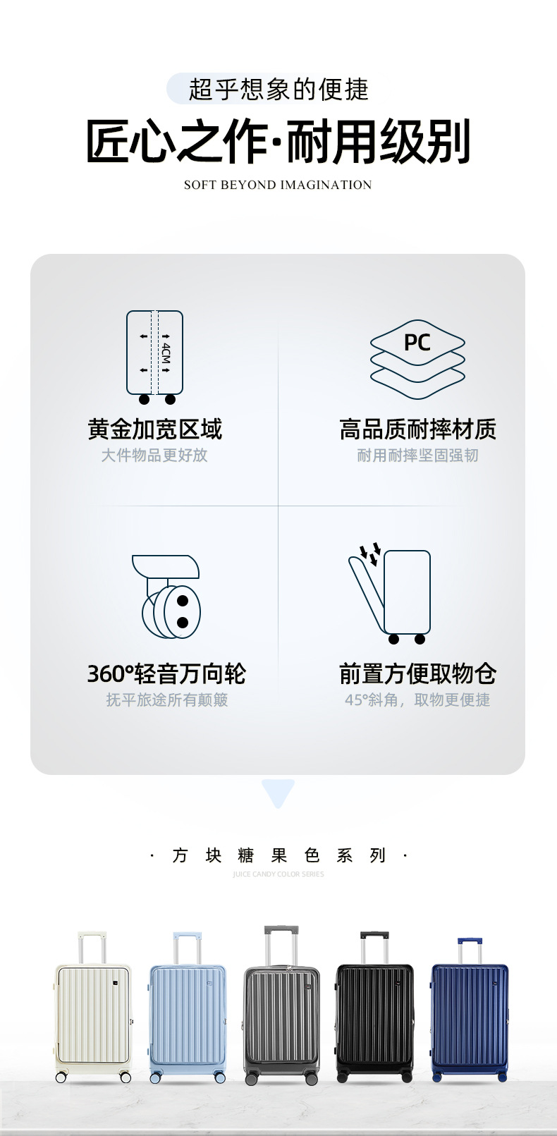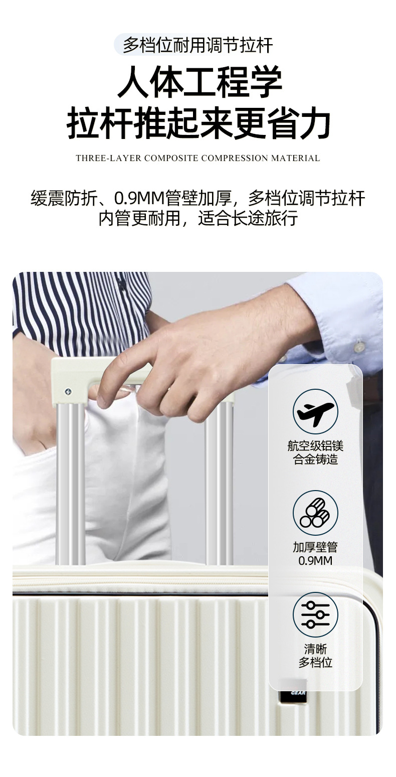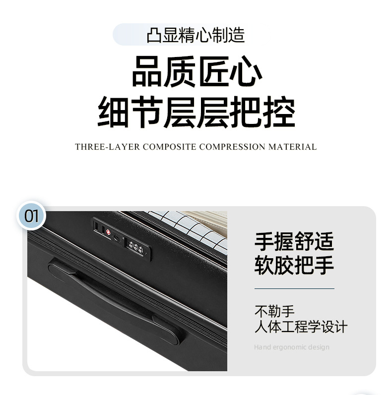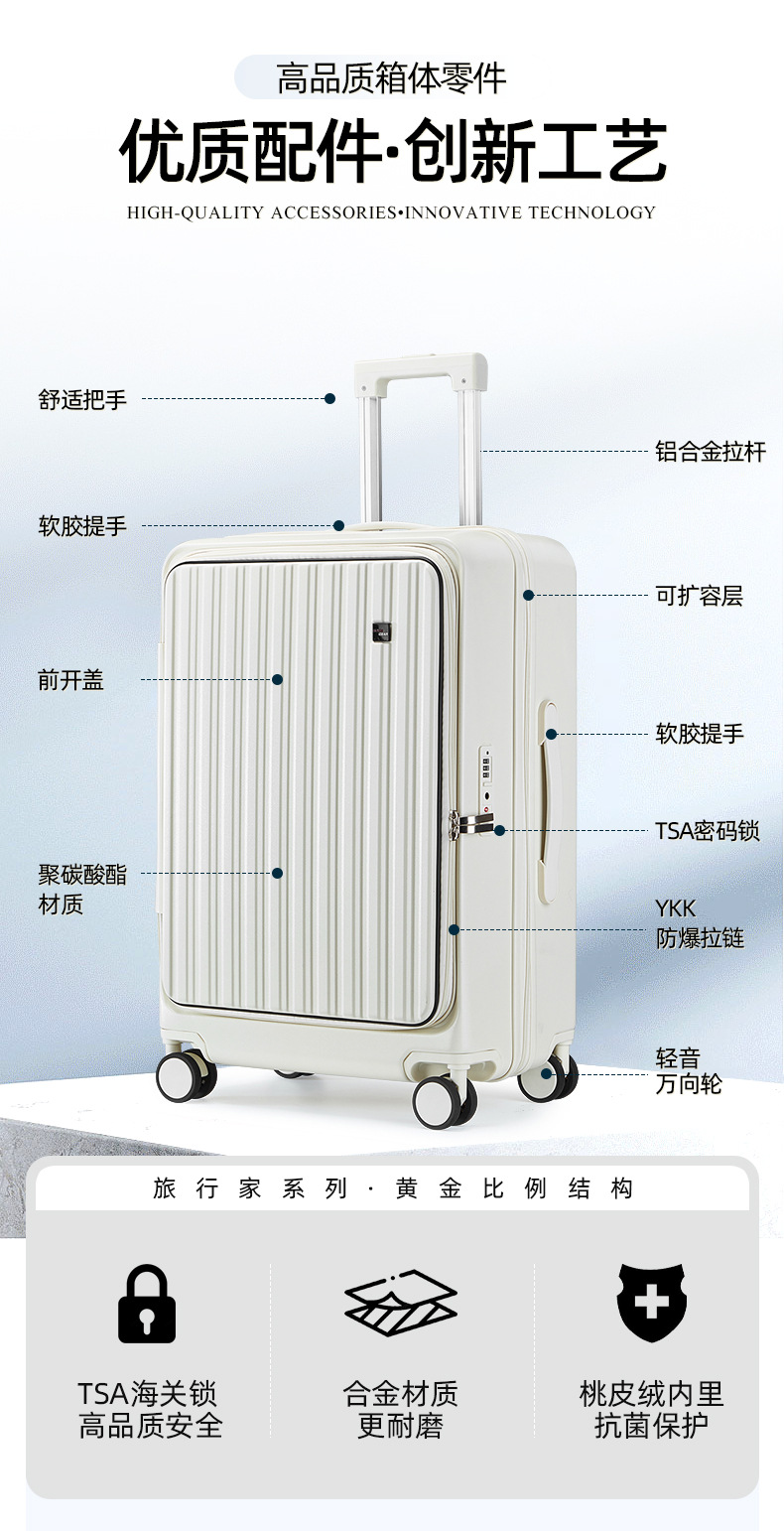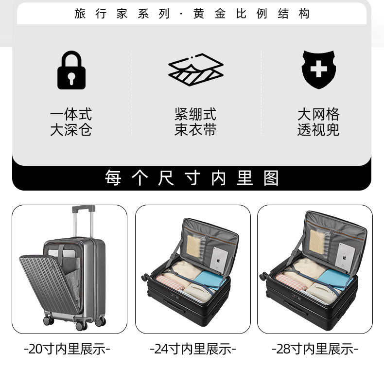 定制LOGO新款爆火多功能前开盖拉杆箱时尚行李箱万向轮登机旅行箱