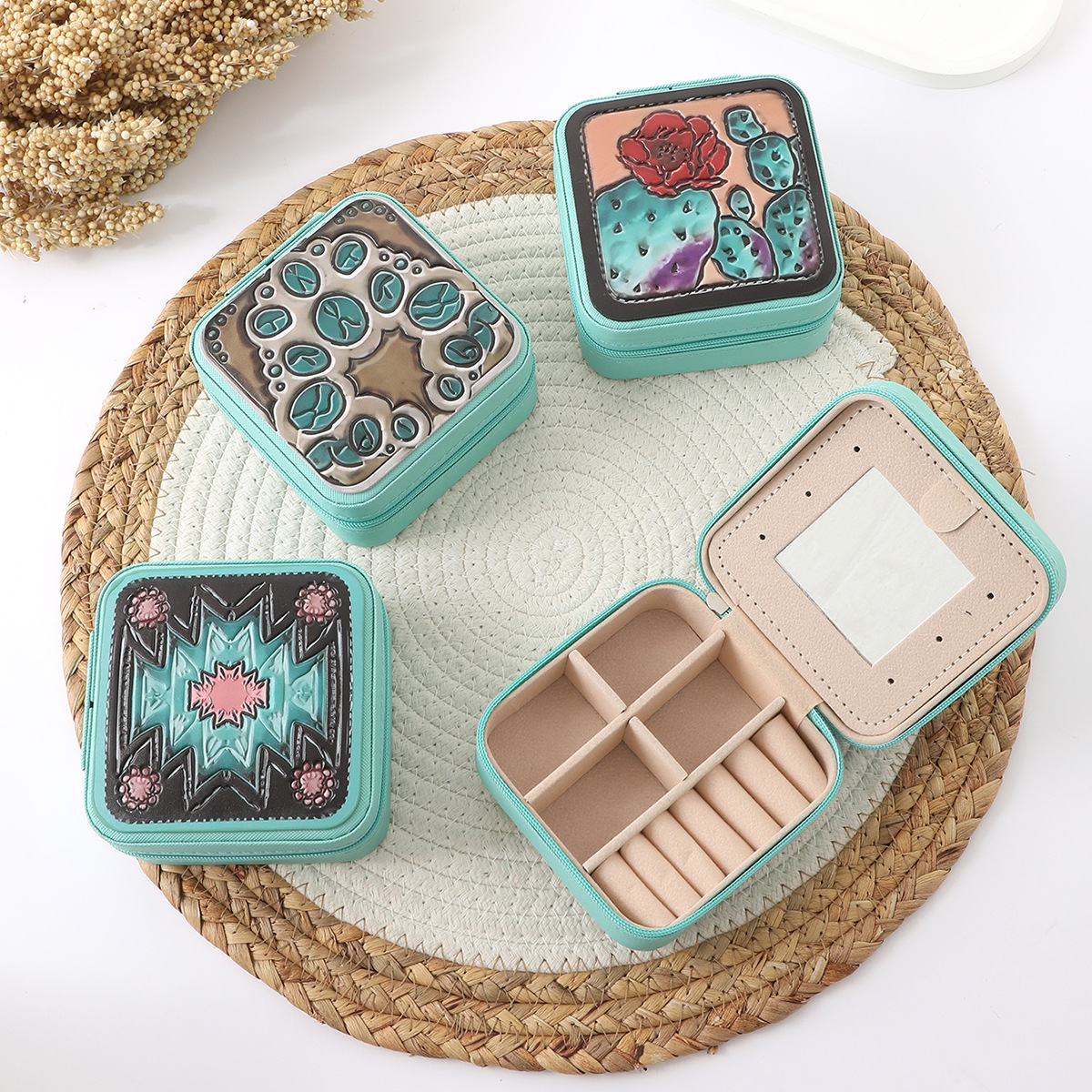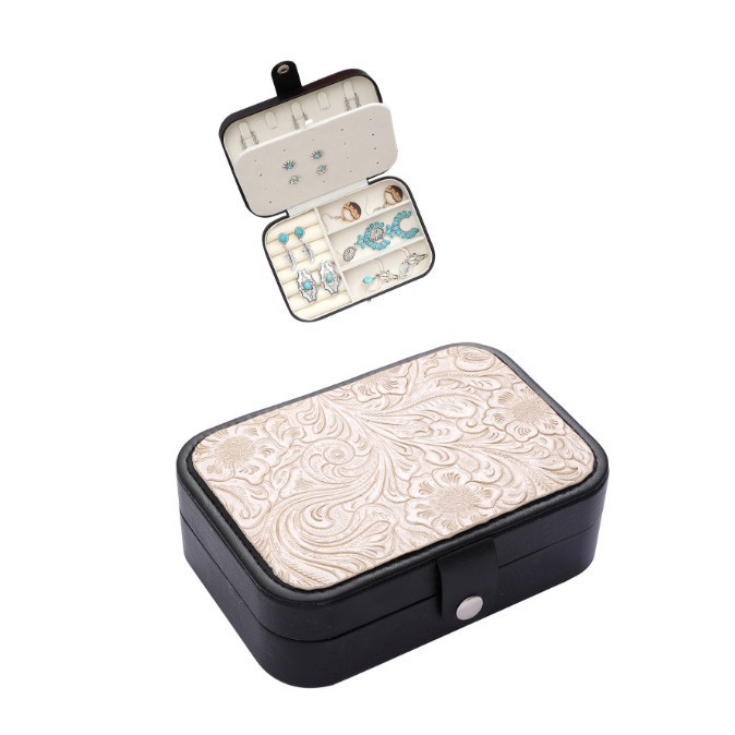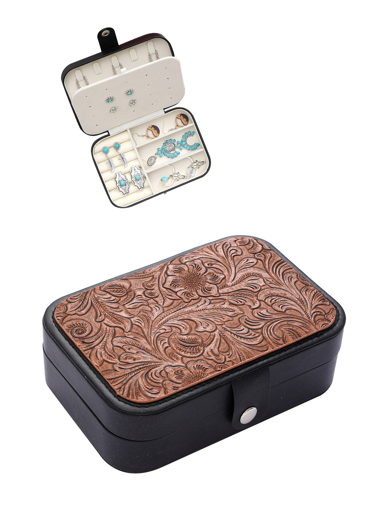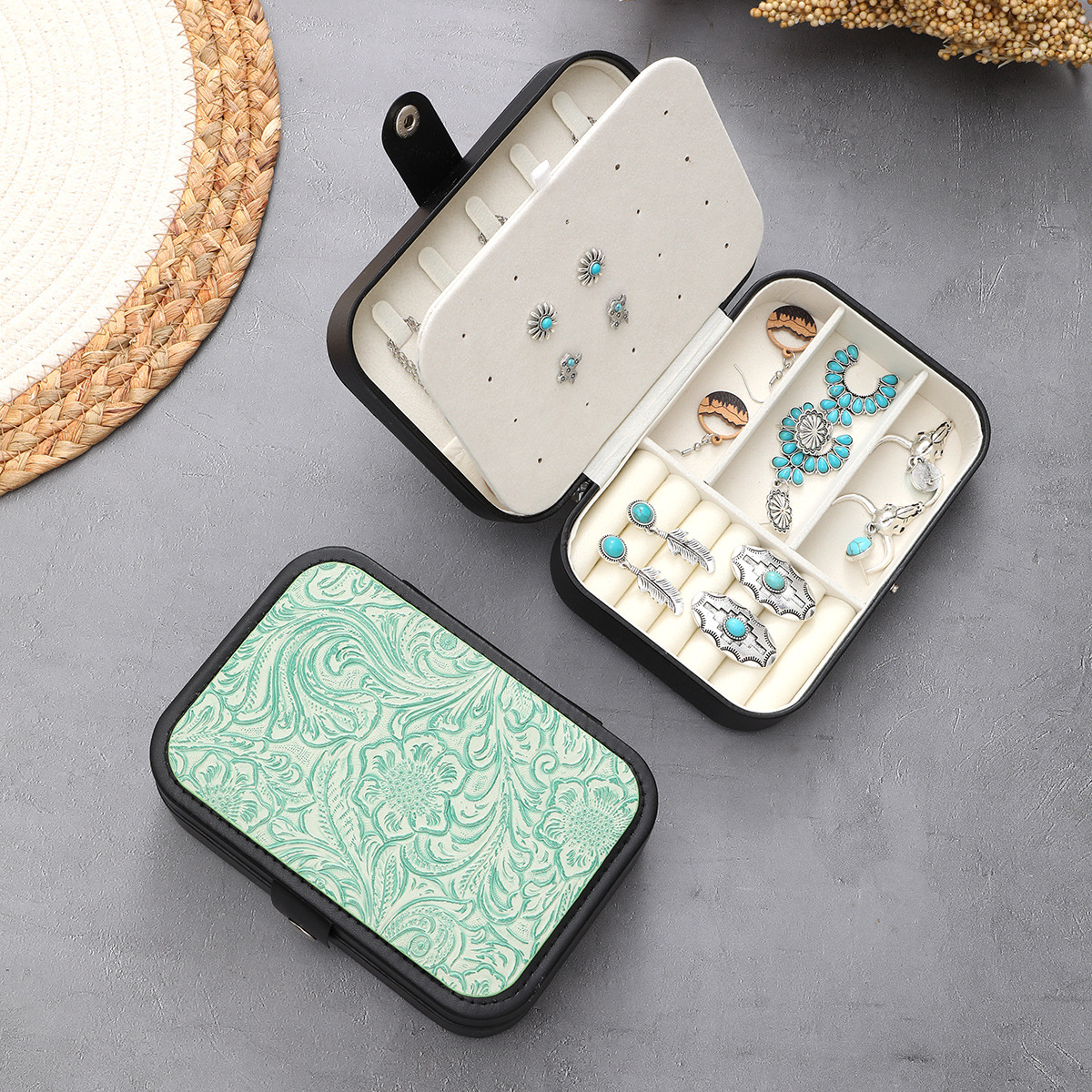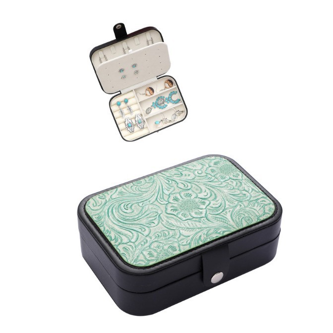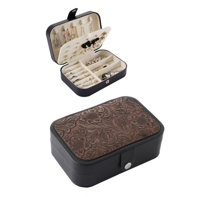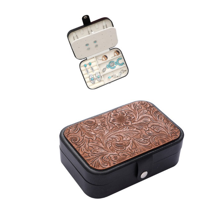 真皮PU首饰收纳盒压印多功能可拆卸复古西部风首饰盒亚马逊跨境