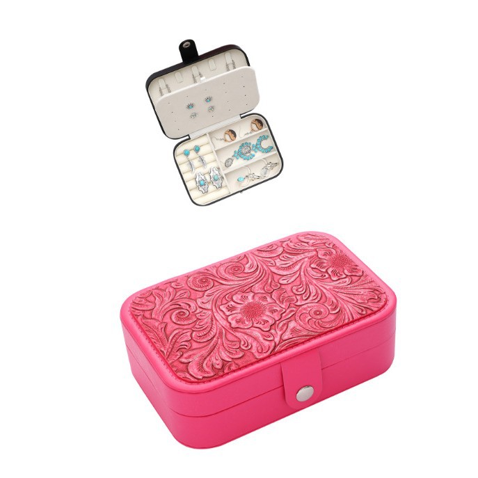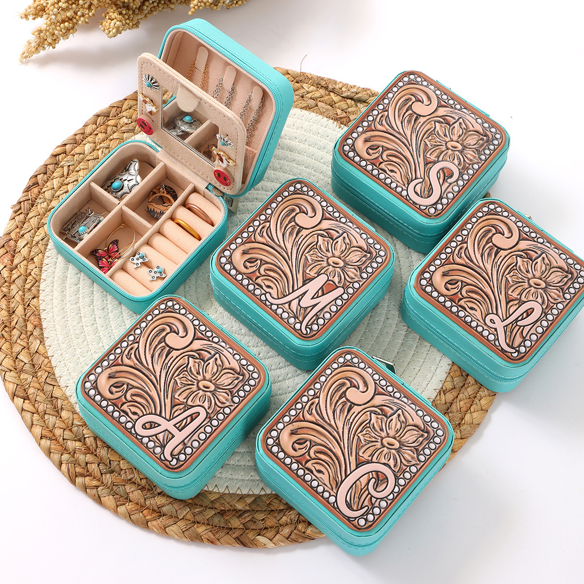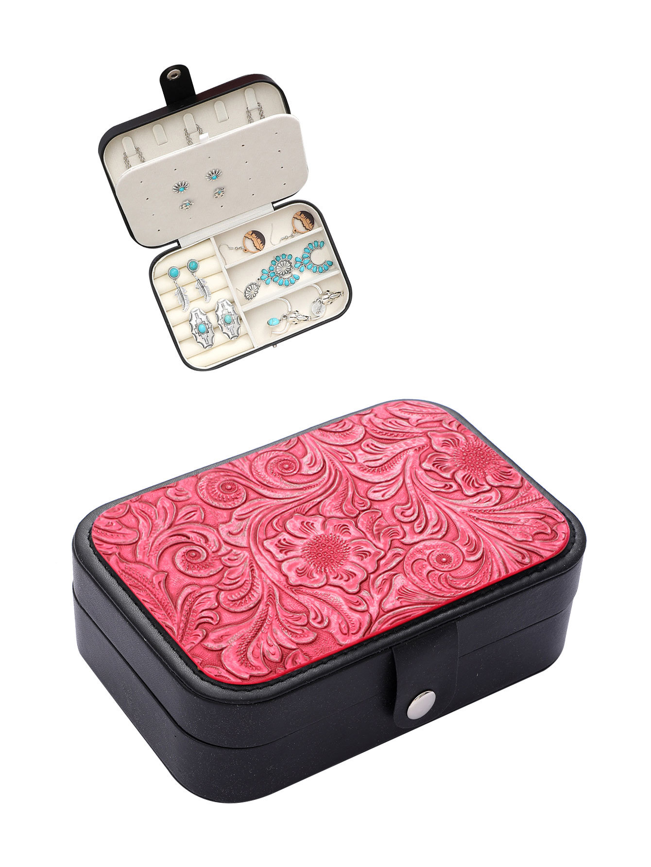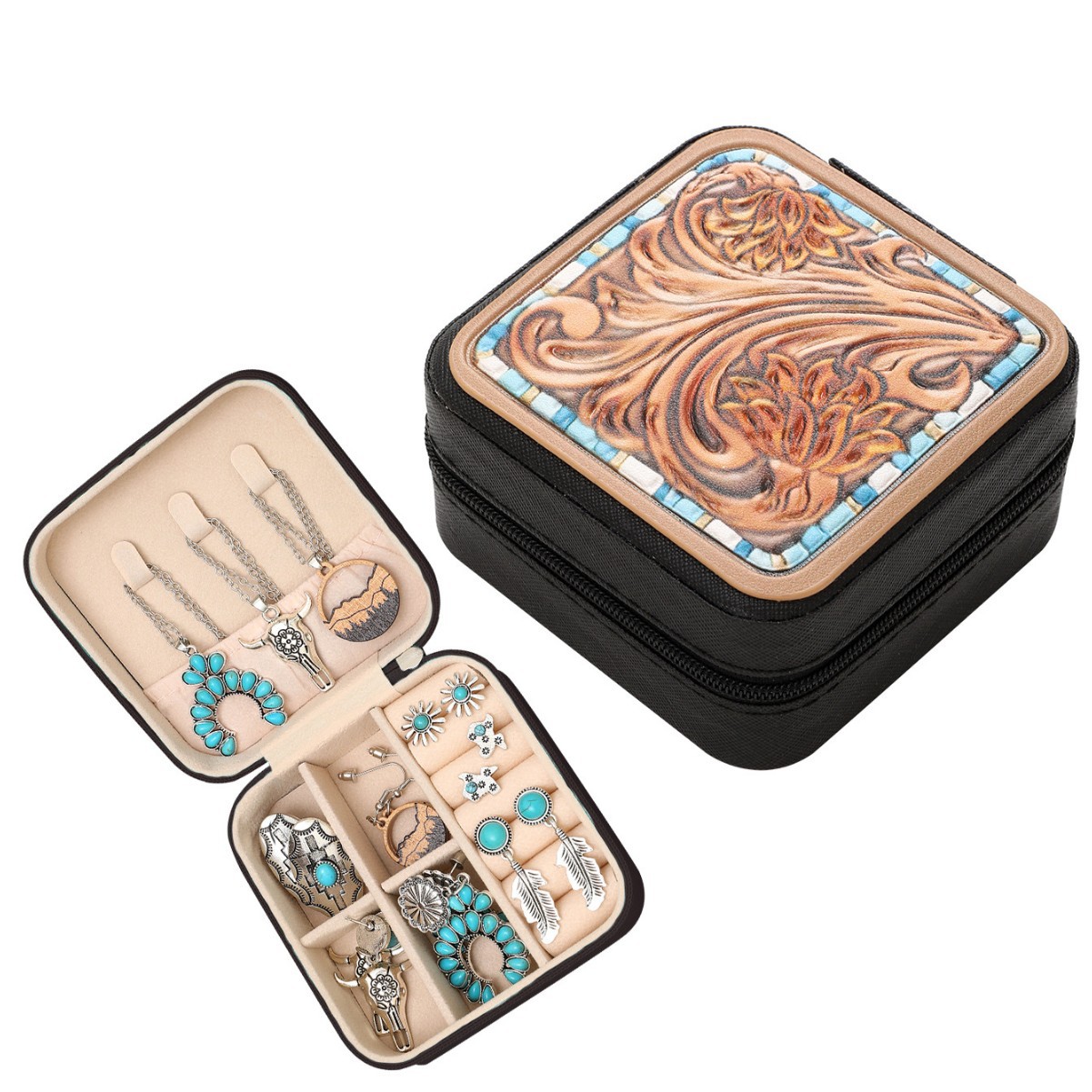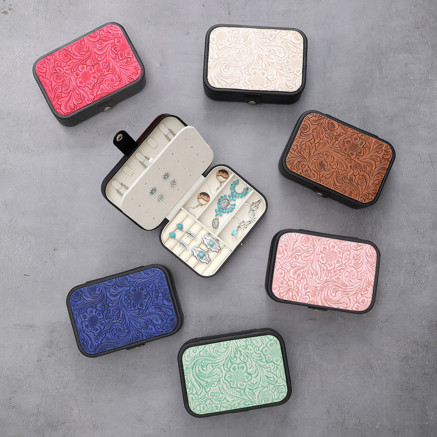真皮PU首饰收纳盒压印多功能可拆卸复古西部风首饰盒亚马逊跨境