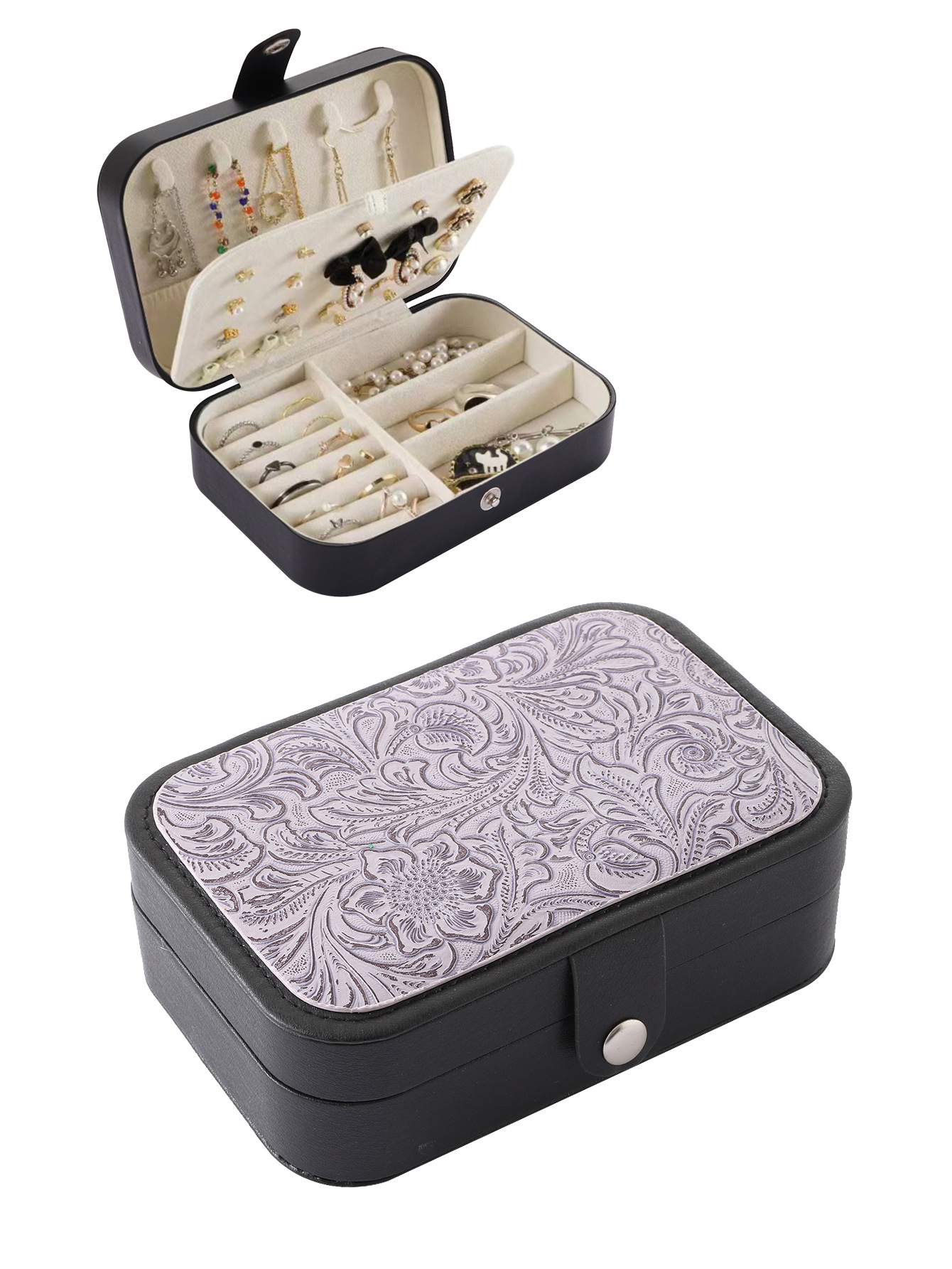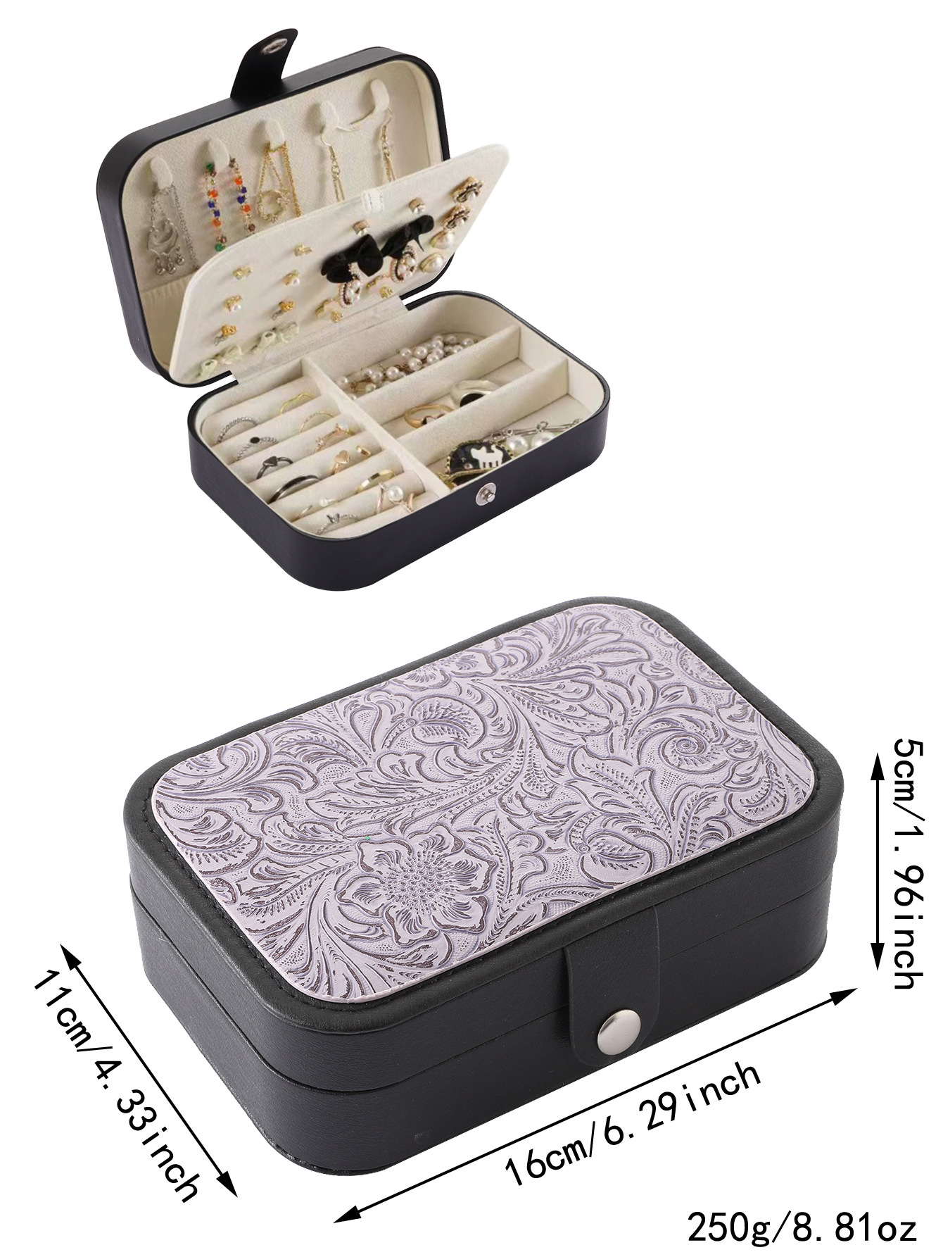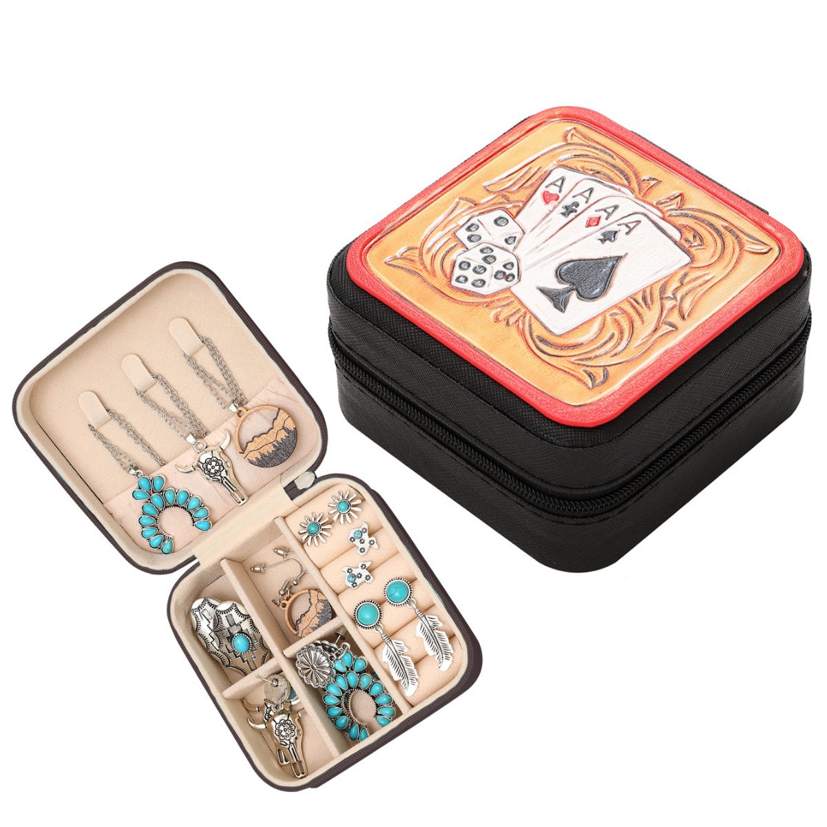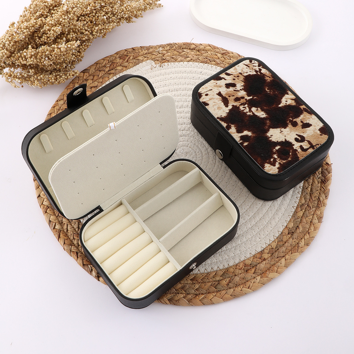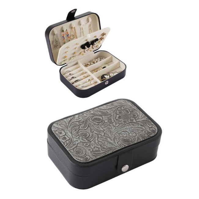 真皮PU首饰收纳盒压印多功能可拆卸复古西部风首饰盒亚马逊跨境