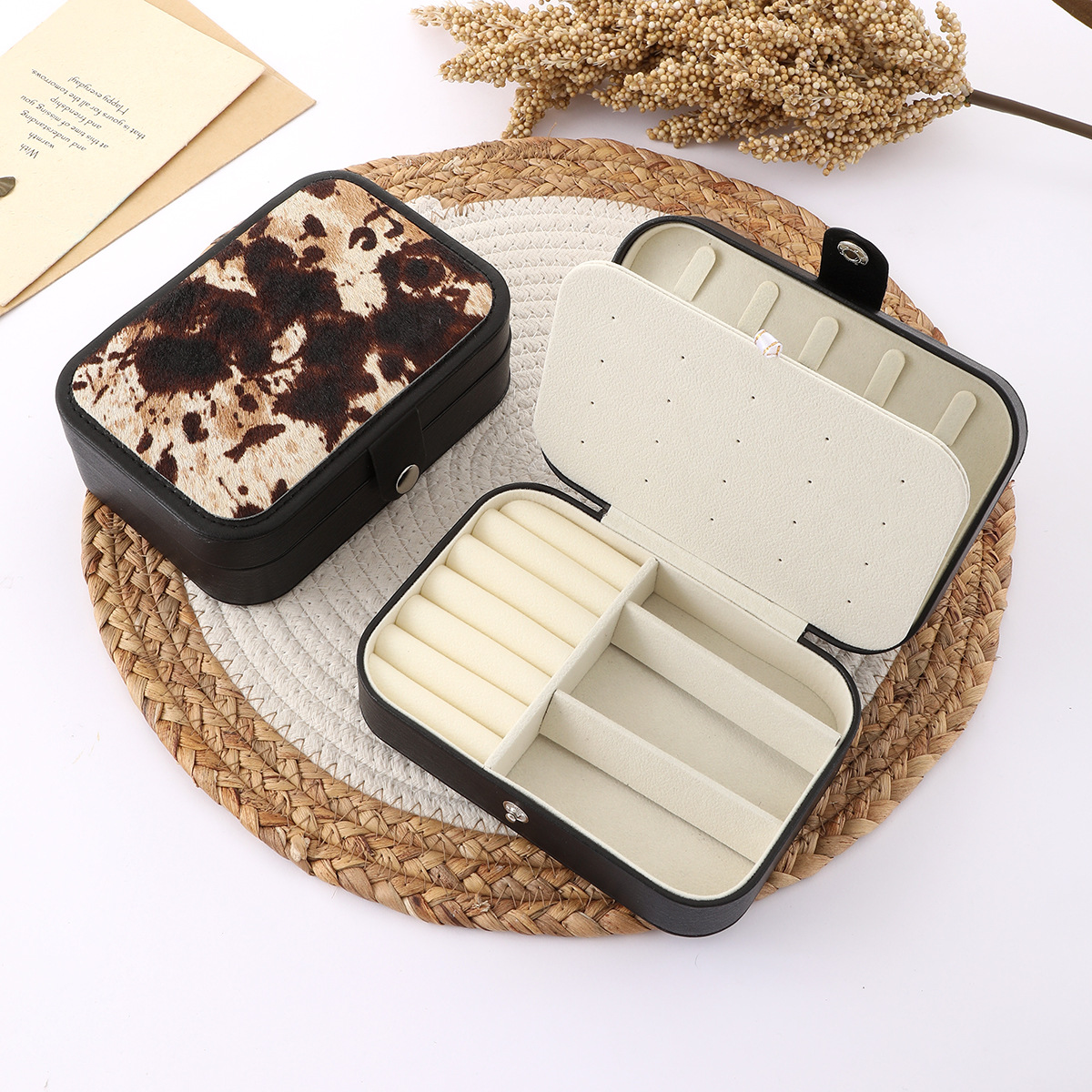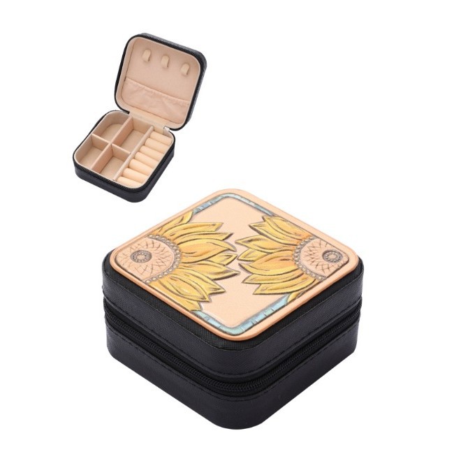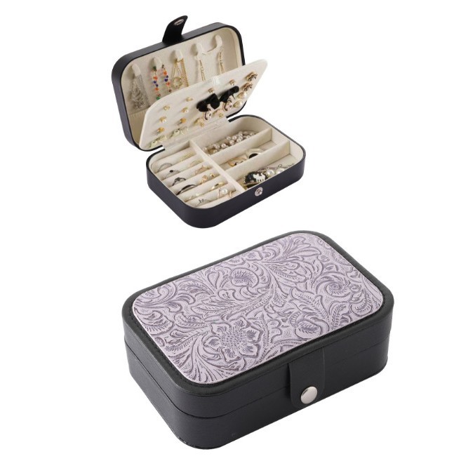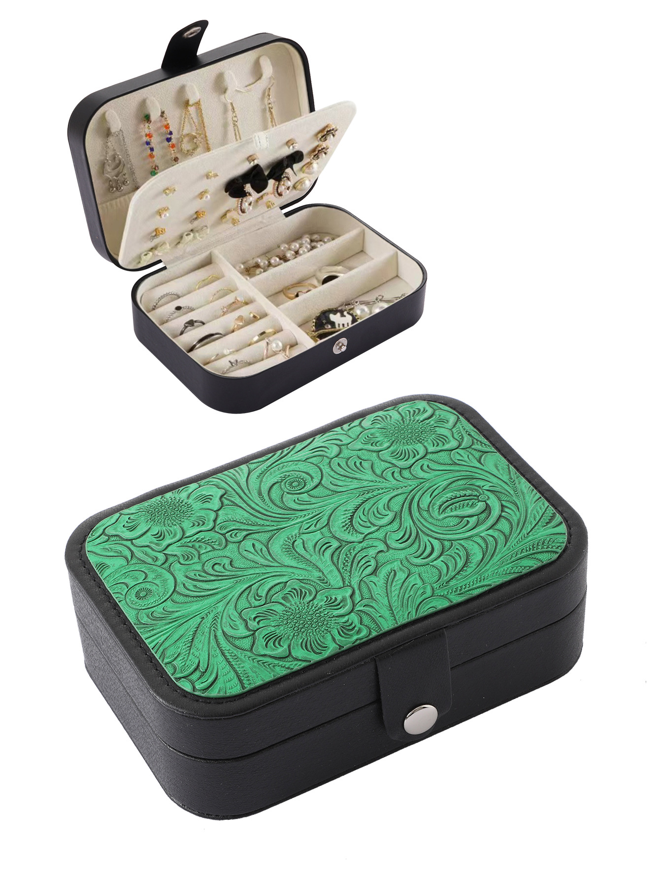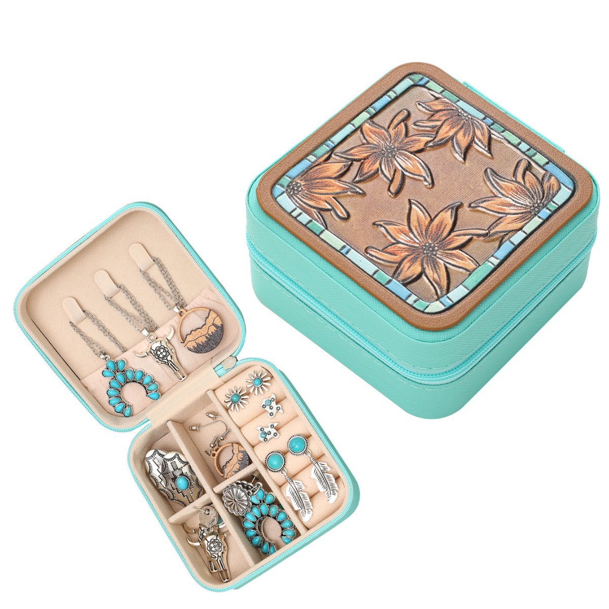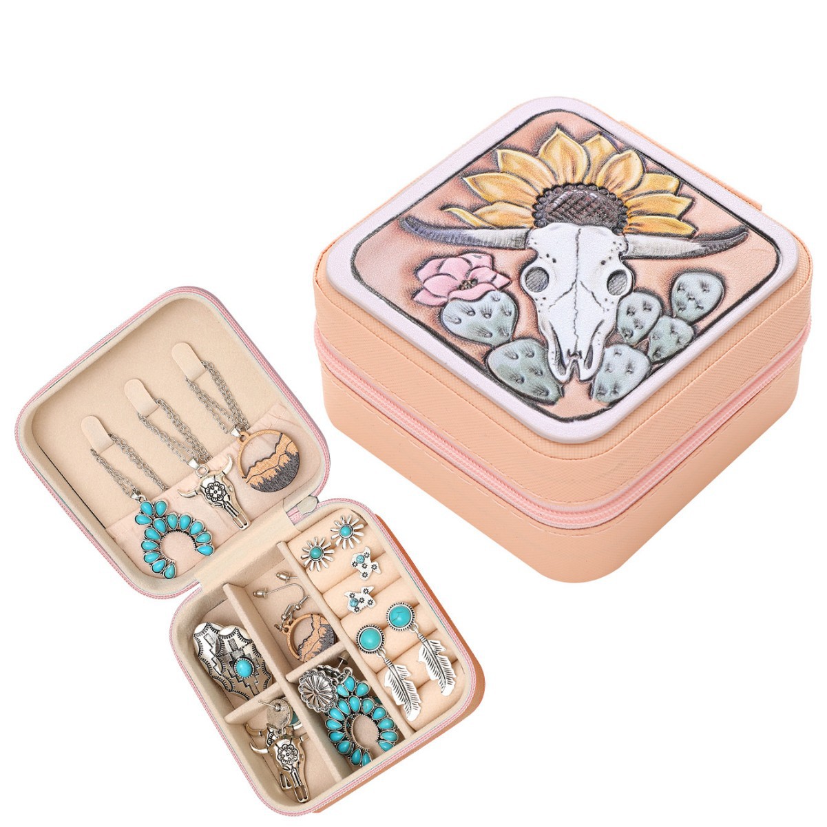 真皮PU首饰收纳盒压印多功能可拆卸复古西部风首饰盒亚马逊跨境