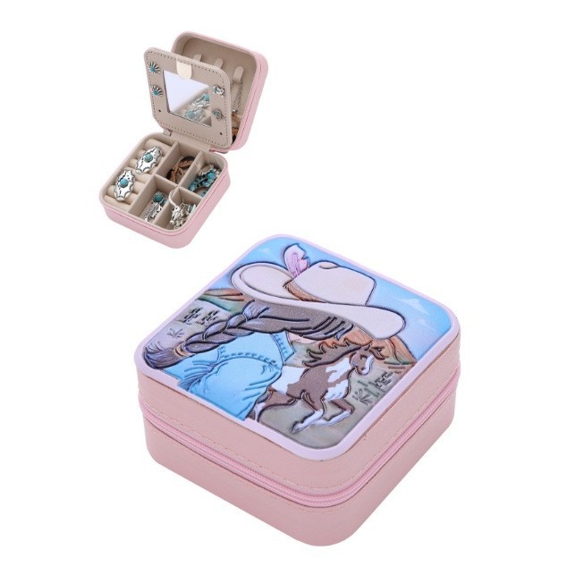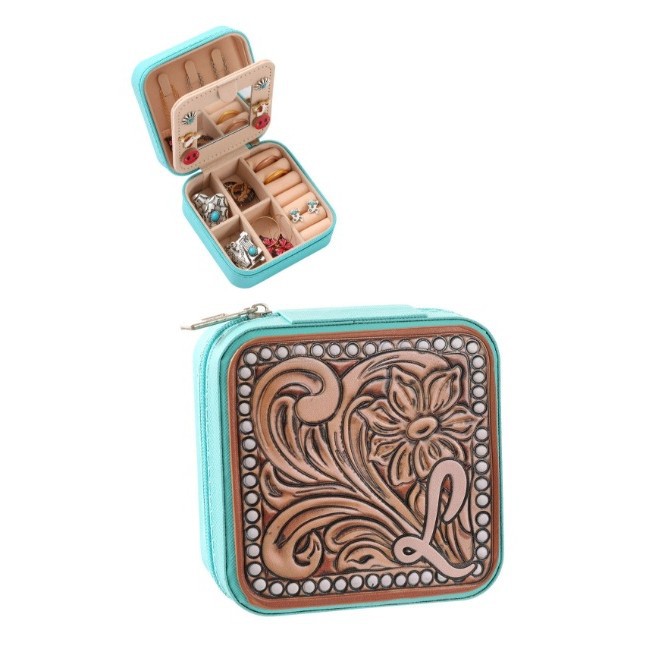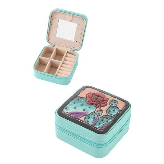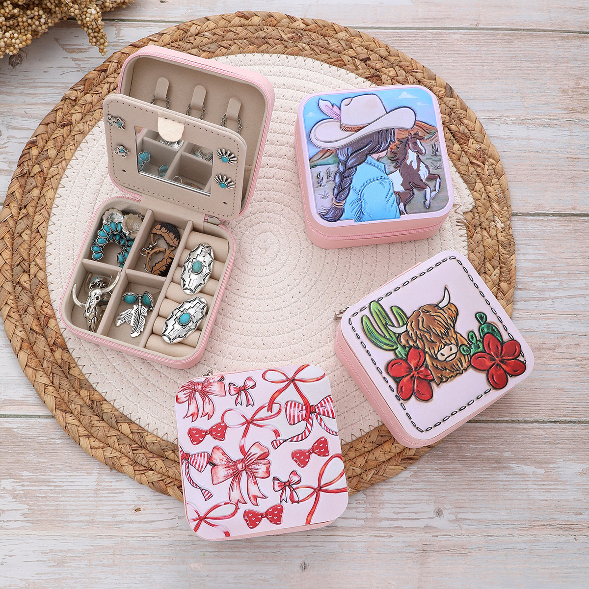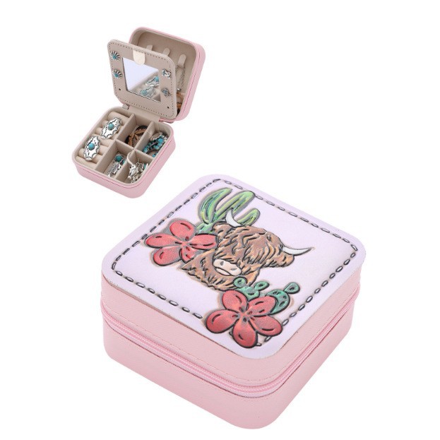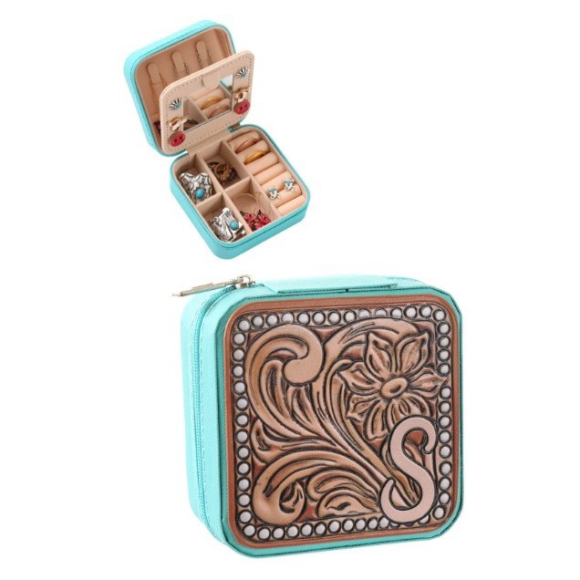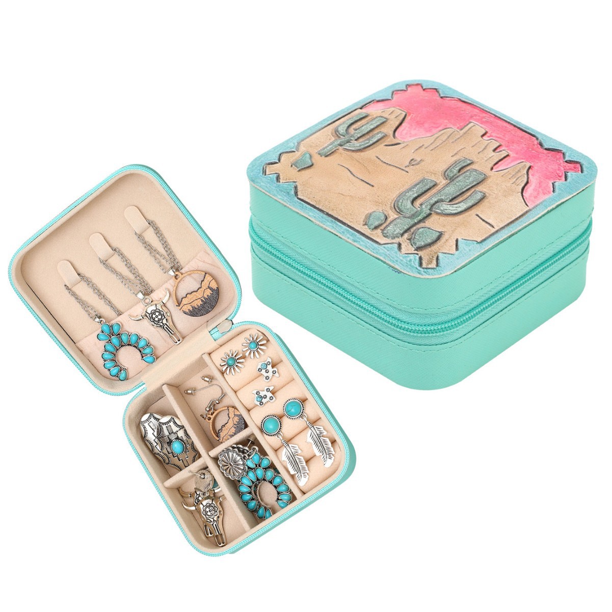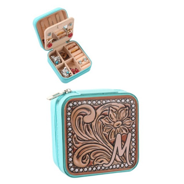 真皮PU首饰收纳盒压印多功能可拆卸复古西部风首饰盒亚马逊跨境