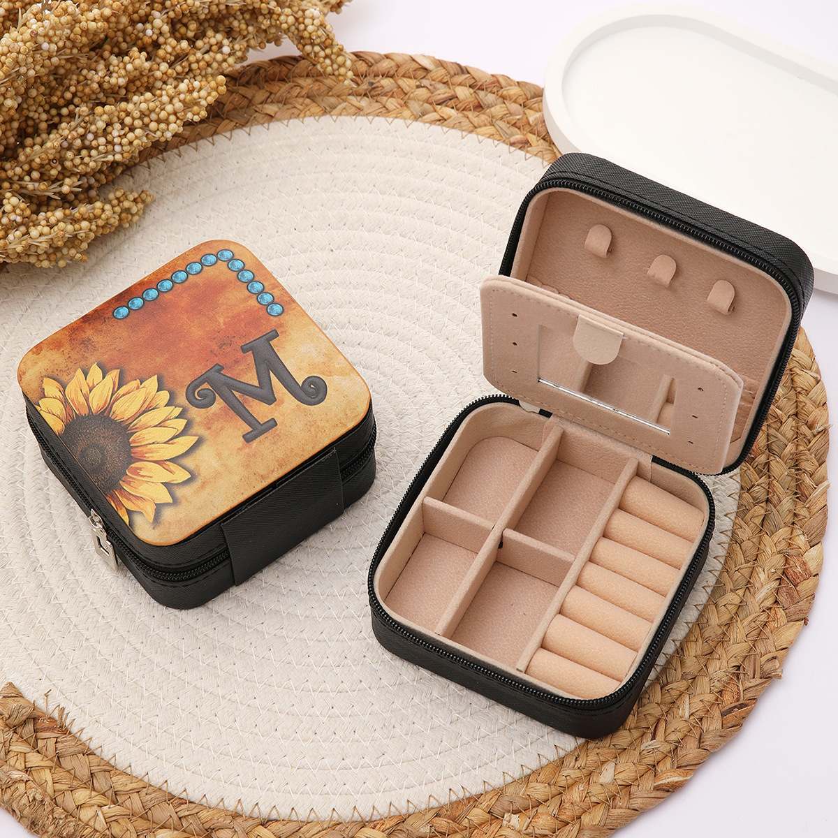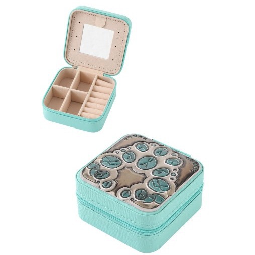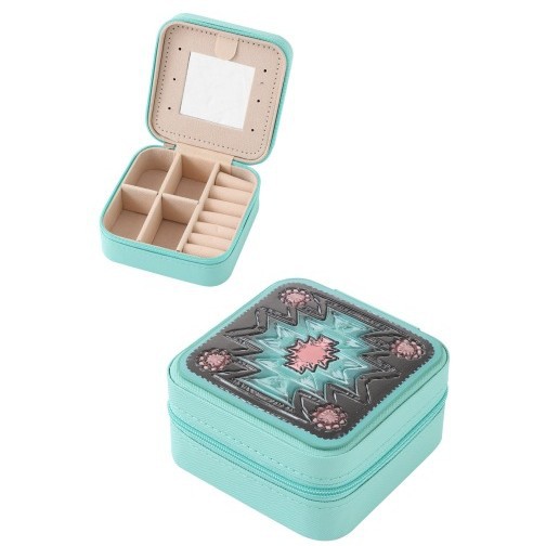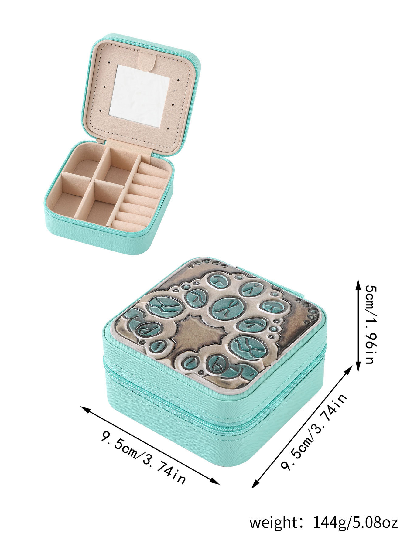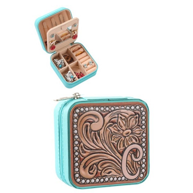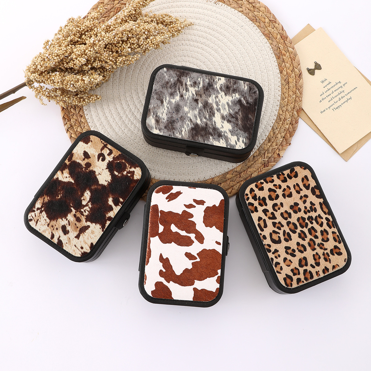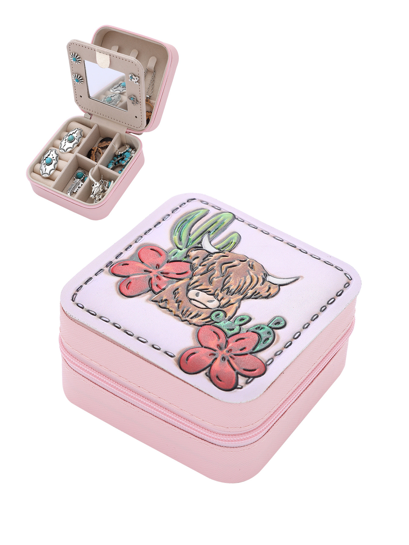真皮PU首饰收纳盒压印多功能可拆卸复古西部风首饰盒亚马逊跨境