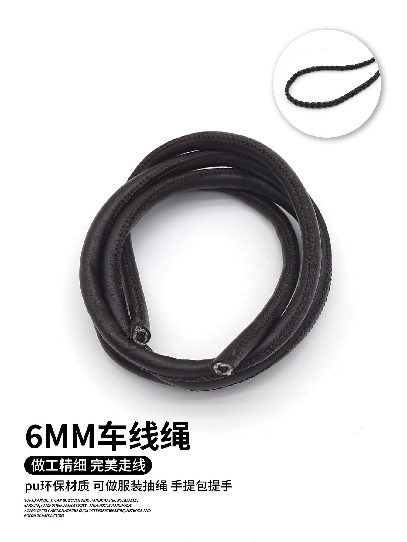 踩线圆形车线包芯绳多色PU车缝皮绳配饰DIY挂件钥匙扣手机绳批发
