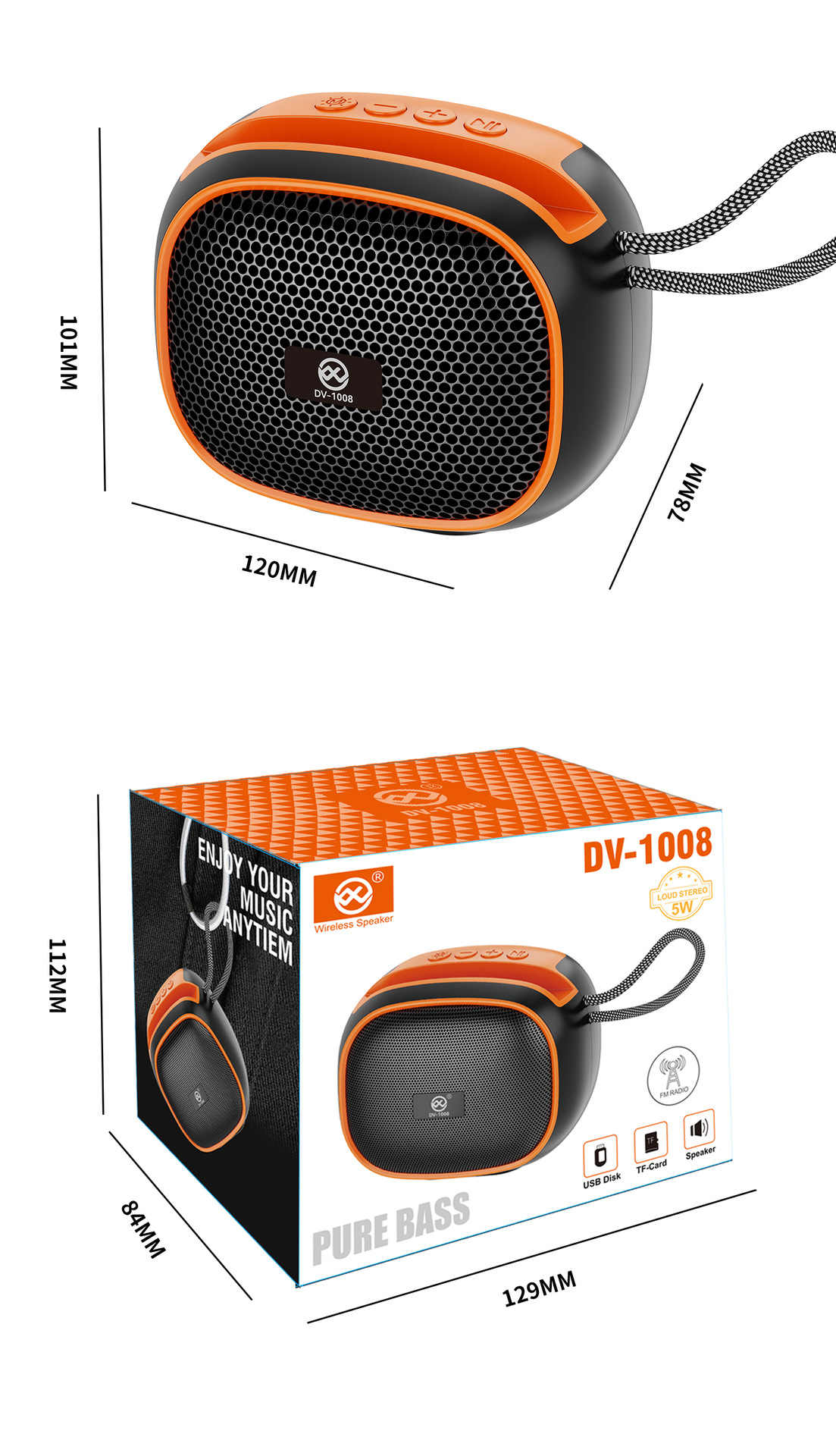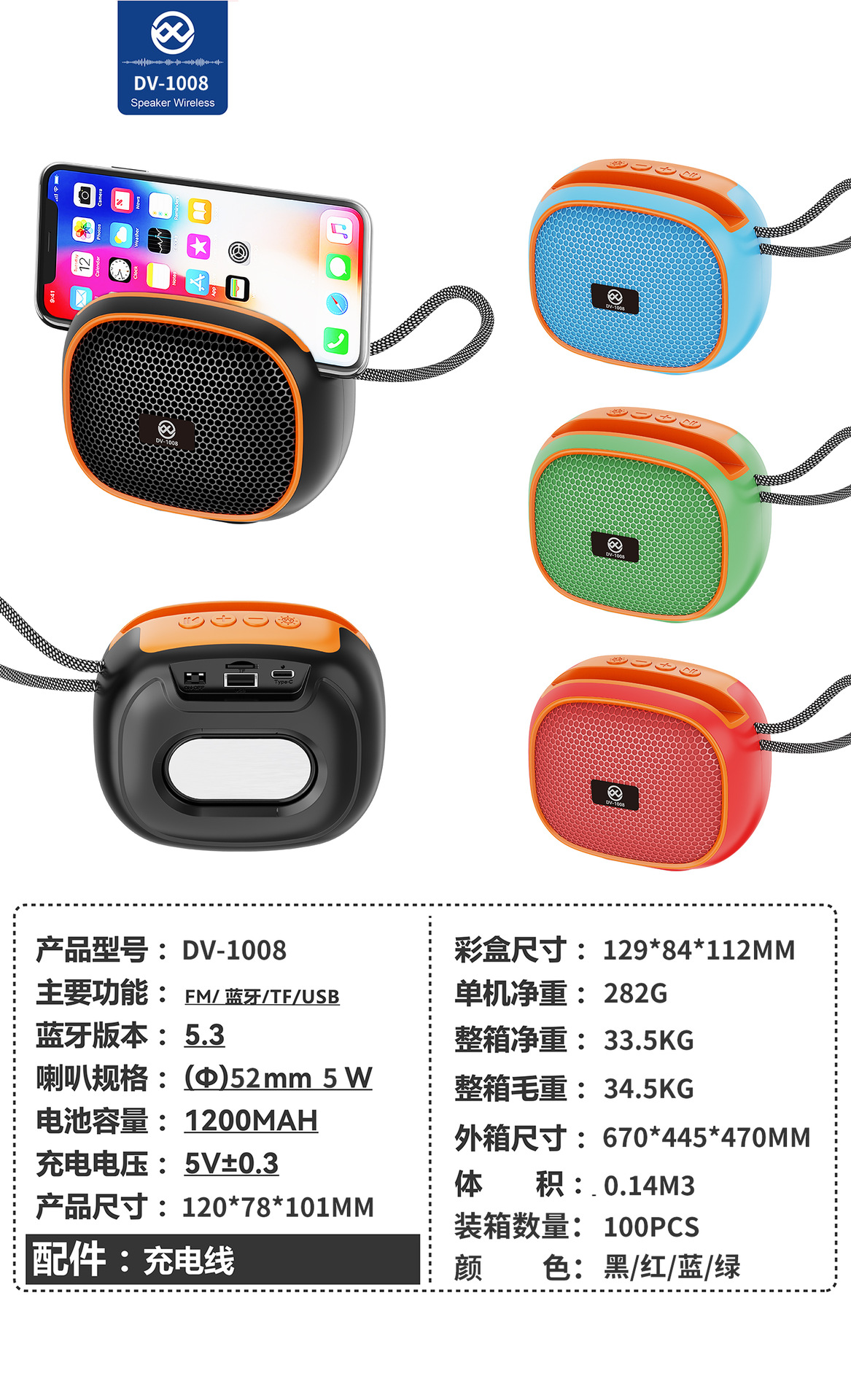 DV-1008 跨境无线蓝牙音箱插卡便携桌面礼品迷你小音响超重低音炮
