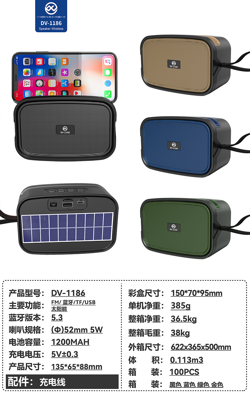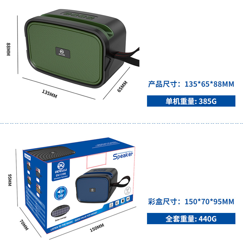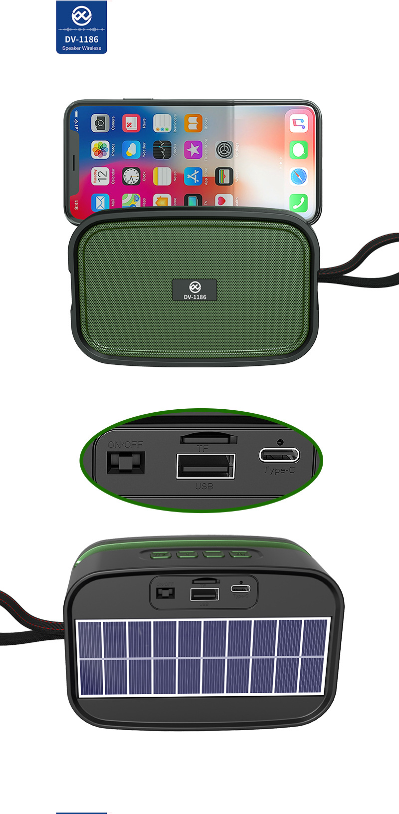 DV-1186 跨境太阳能蓝牙音响小型户外插卡低音炮音箱便捷式音响
