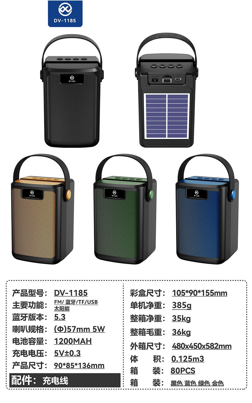 DV-1185 跨境蓝牙小音箱户外大音量便携式插卡音乐播放器手提音响