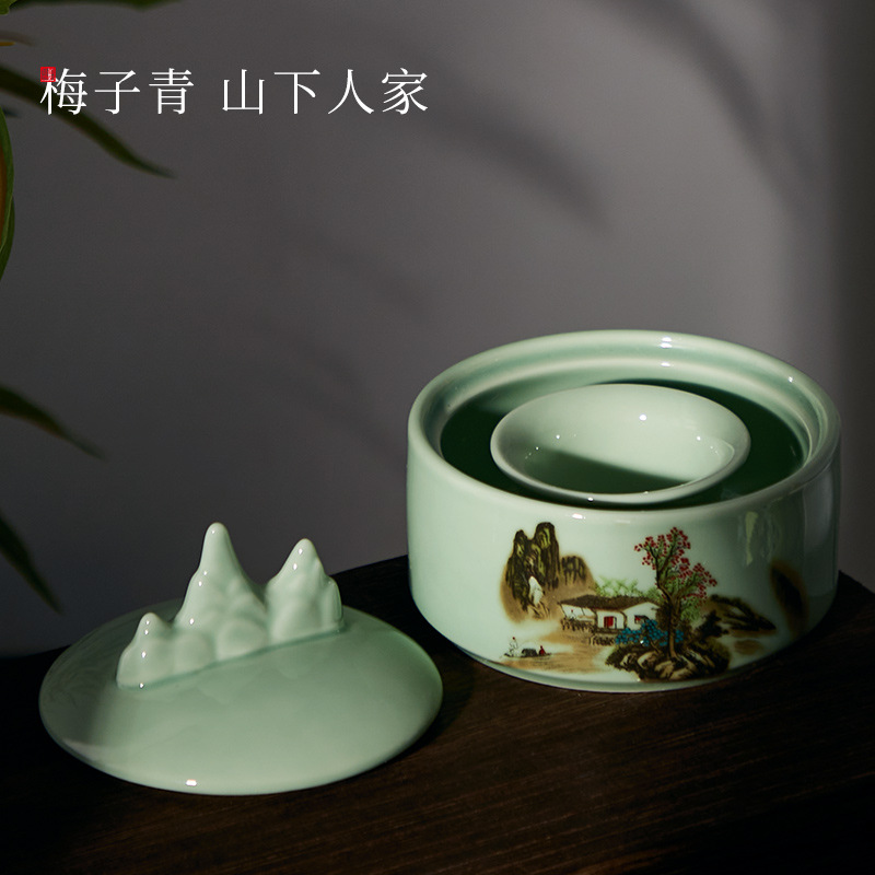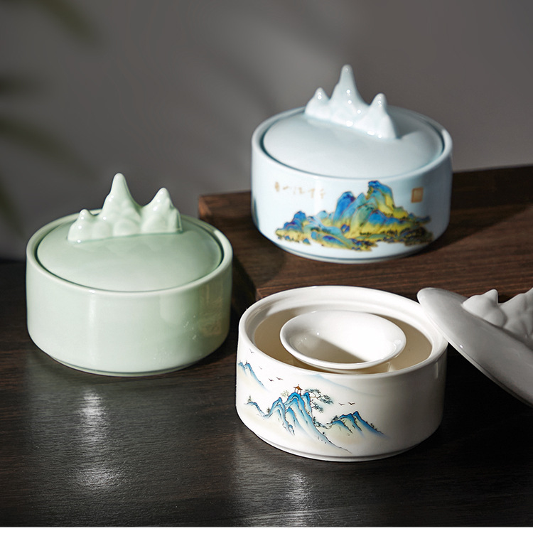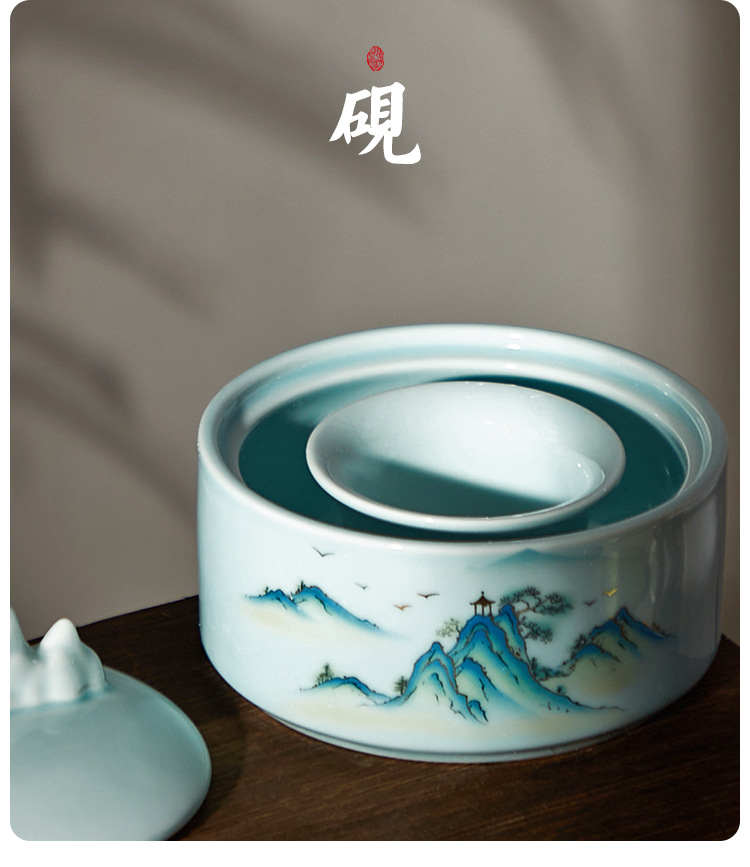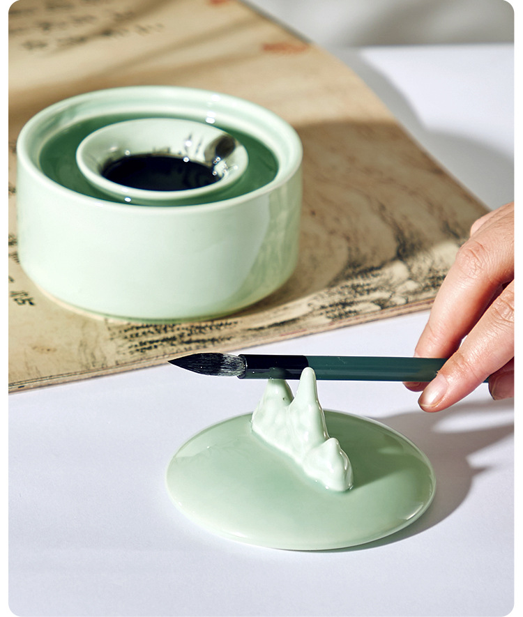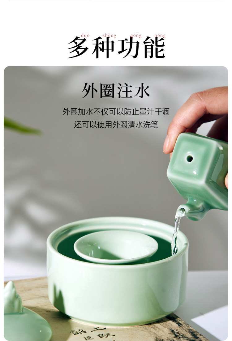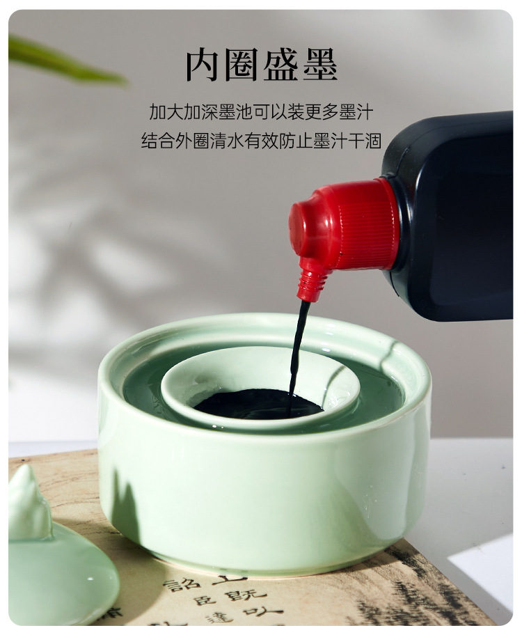 多功能不易干墨池青瓷火锅砚台墨池墨碗文房四宝书法用品墨盒