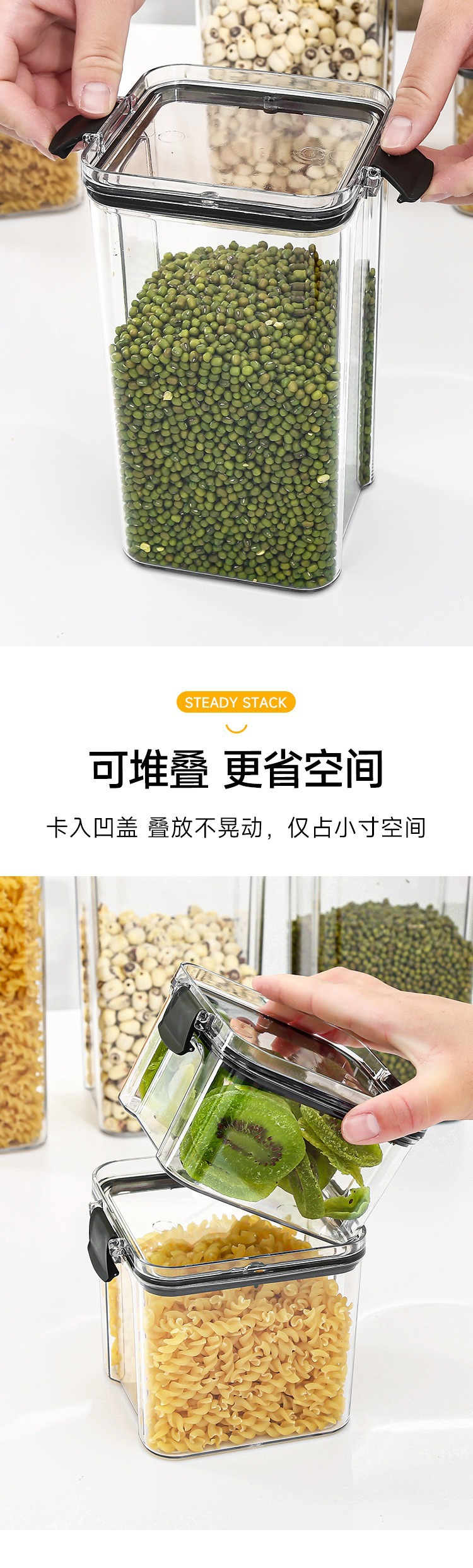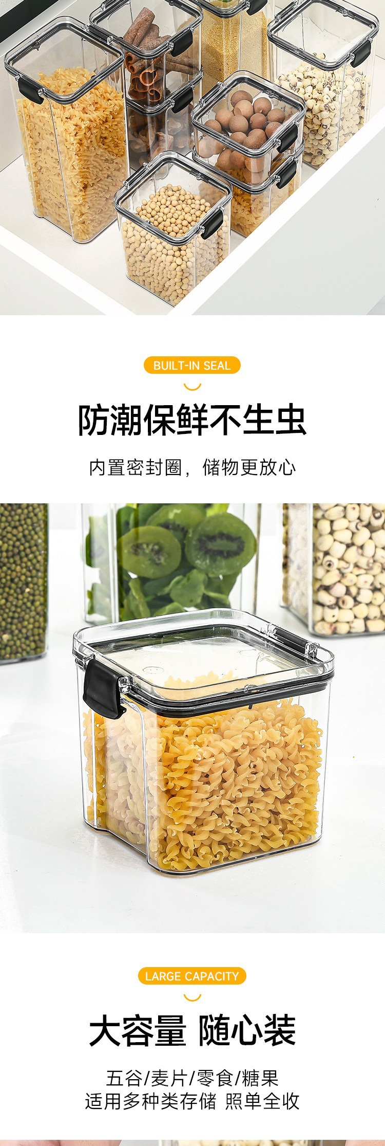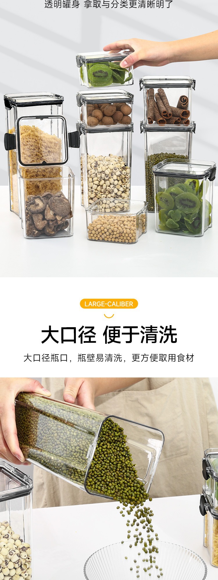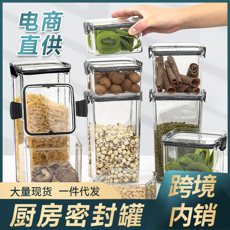 小号加厚方形透明密封罐五谷杂粮厨房收纳透明塑料盒子零食茶叶储