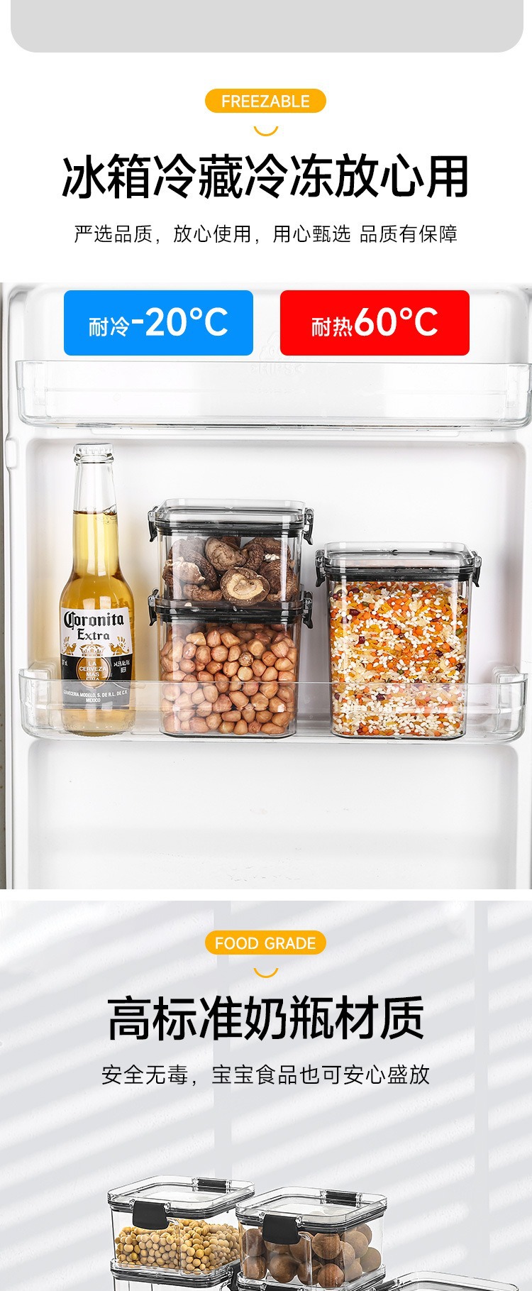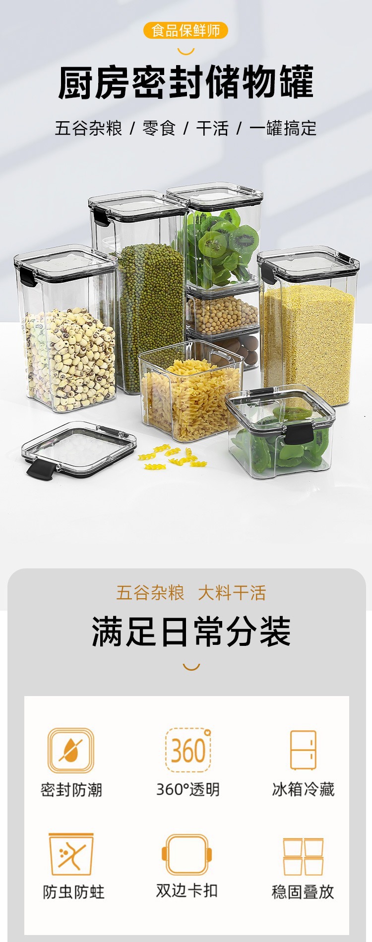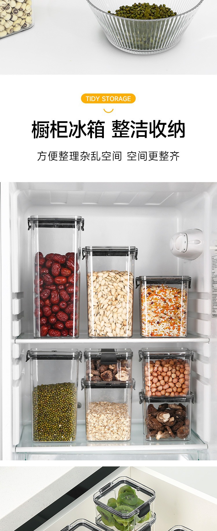 小号加厚方形透明密封罐五谷杂粮厨房收纳透明塑料盒子零食茶叶储