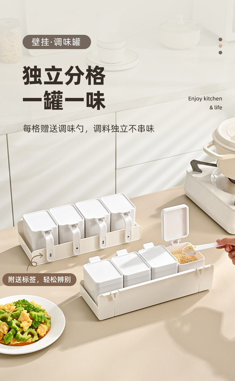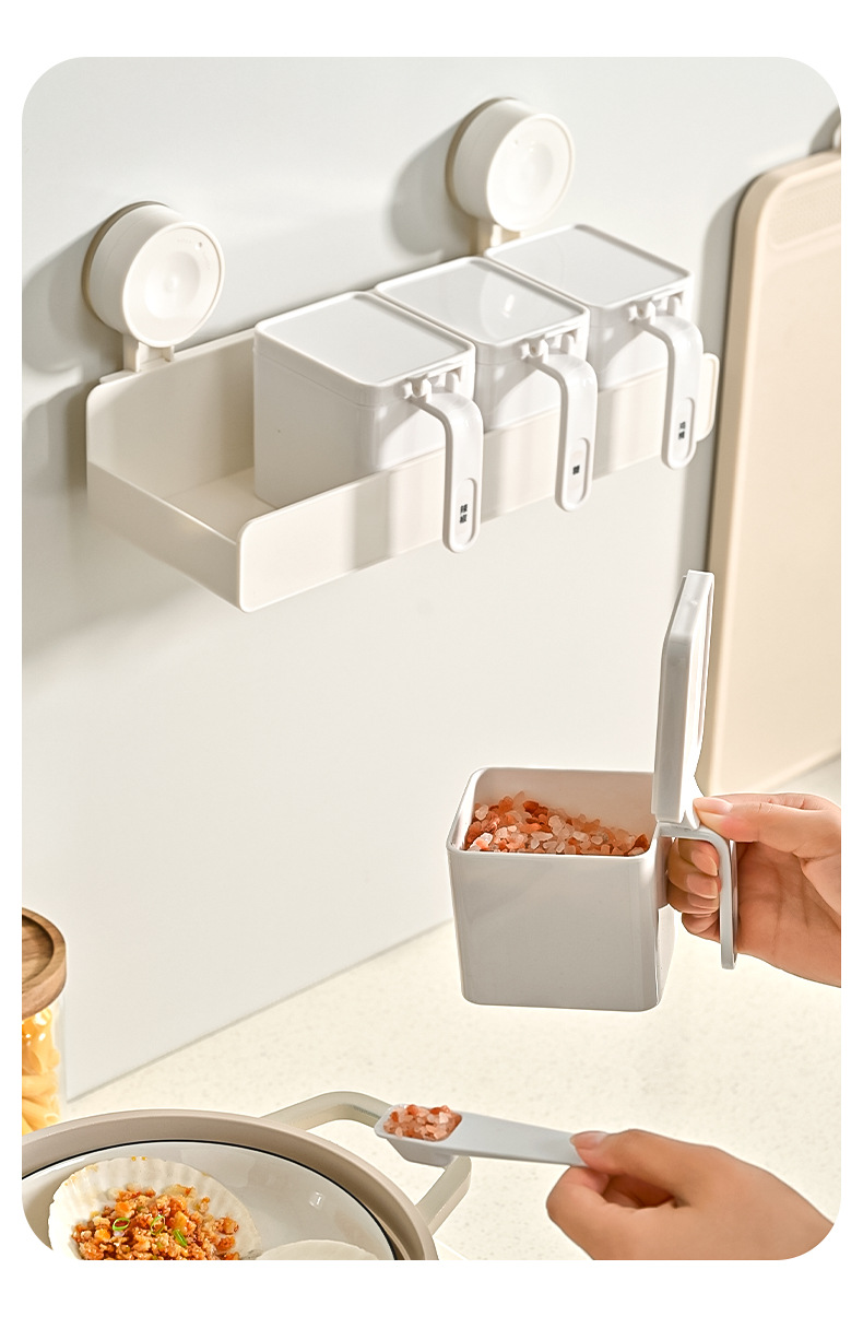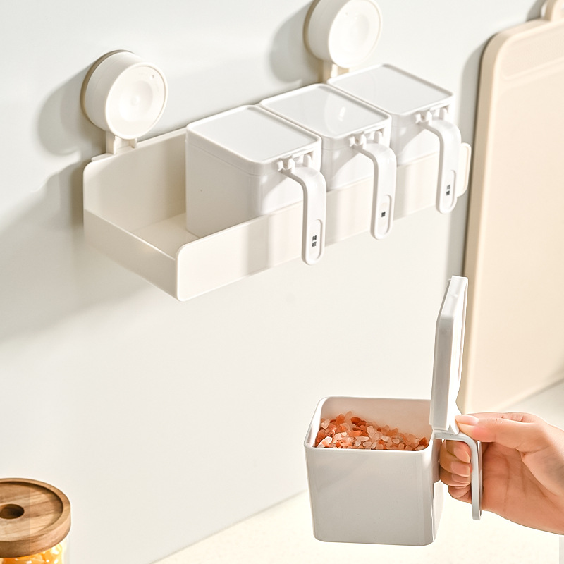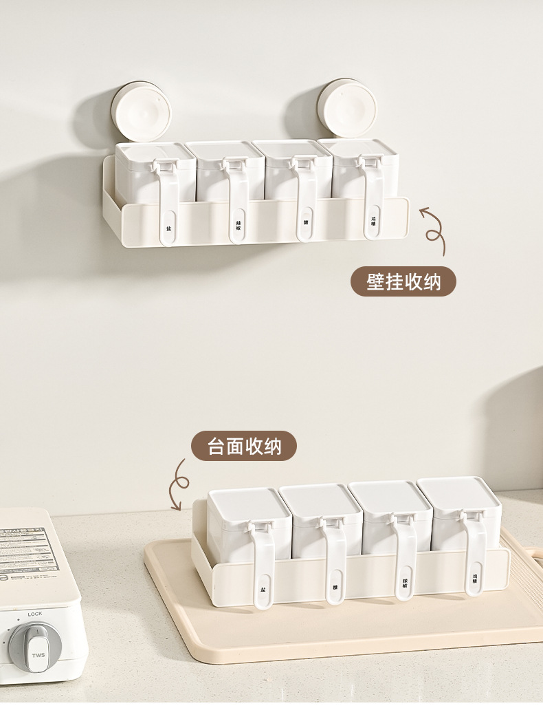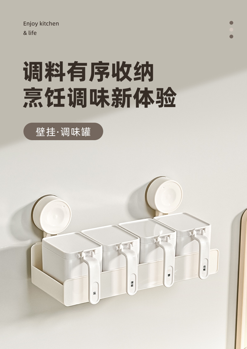 跨境收纳架盐味精佐料调味罐套装组合吸盘壁挂式调料盒置物架组合