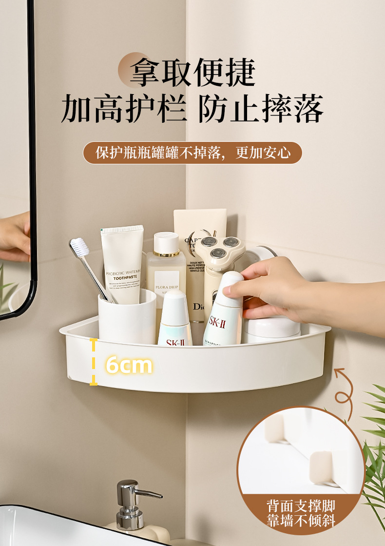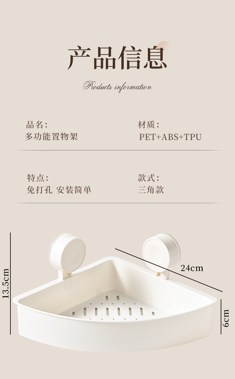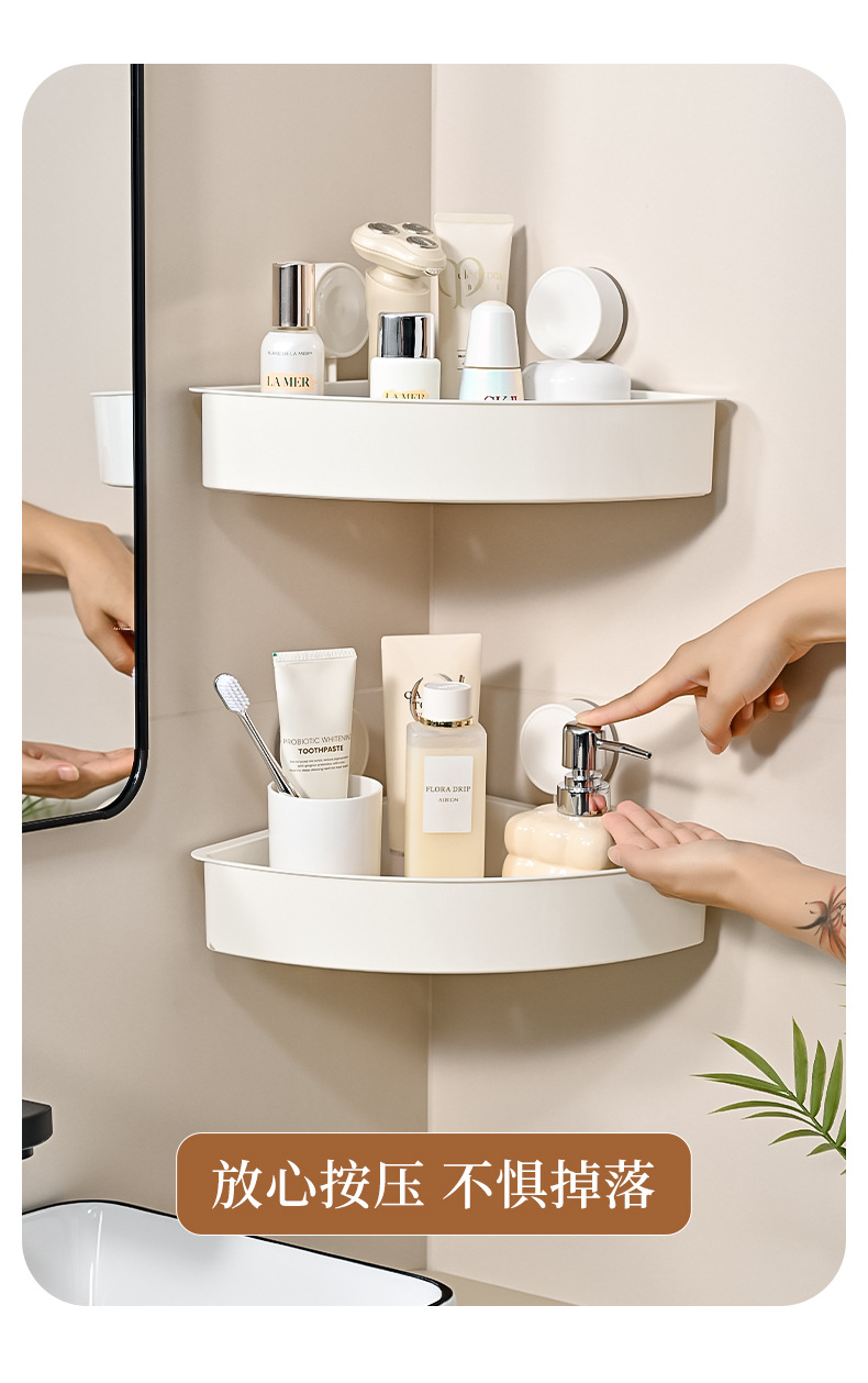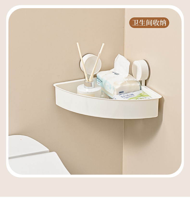 简约免打孔壁挂式架子浴室厨房墙角跨境批发三角置物架吸盘式卫生