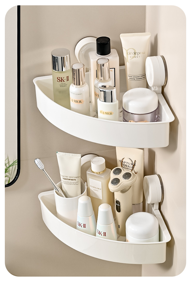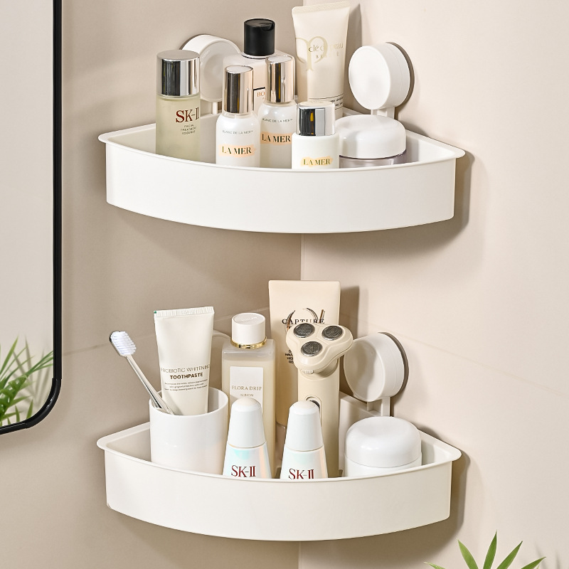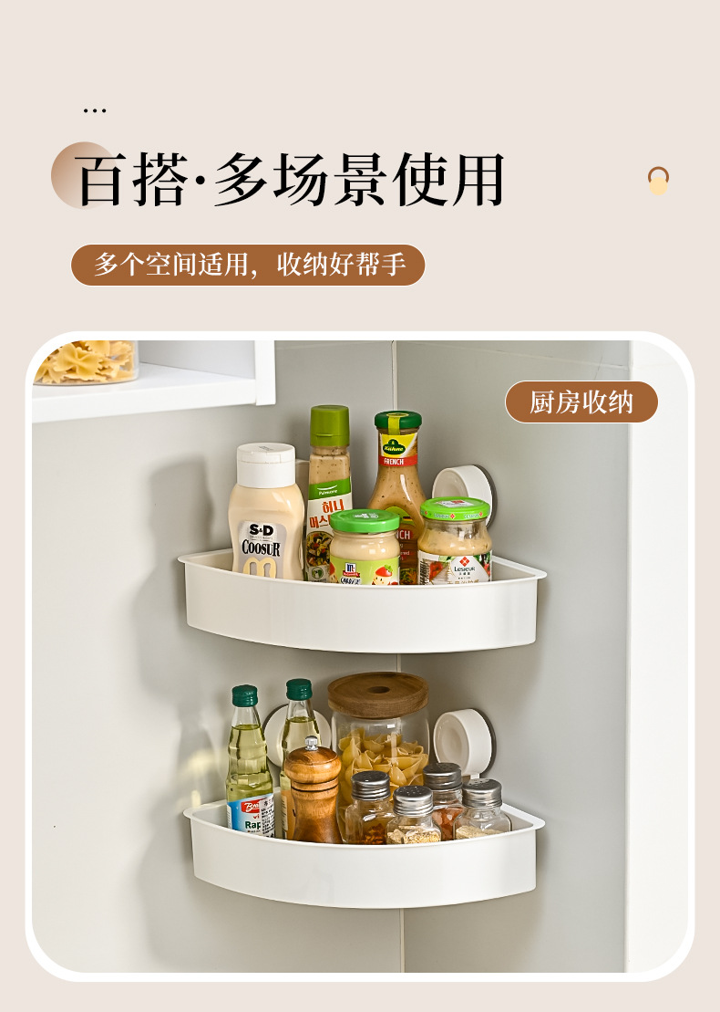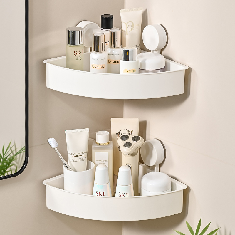 简约免打孔壁挂式架子浴室厨房墙角跨境批发三角置物架吸盘式卫生