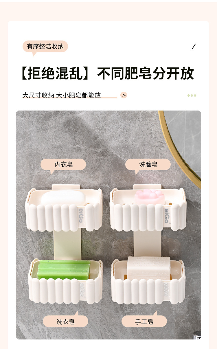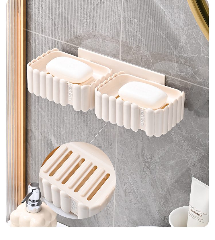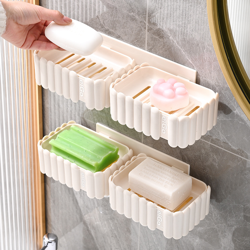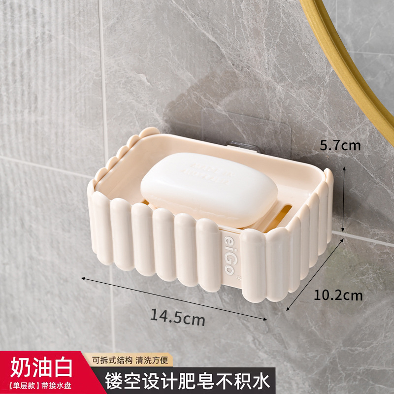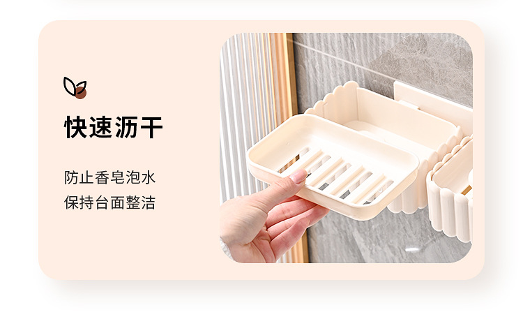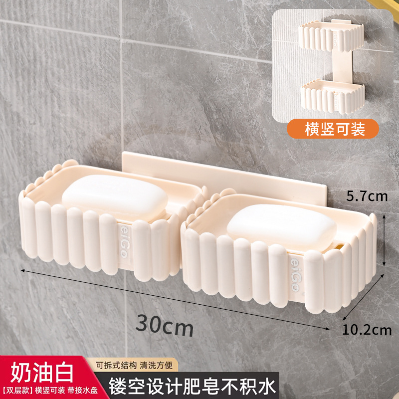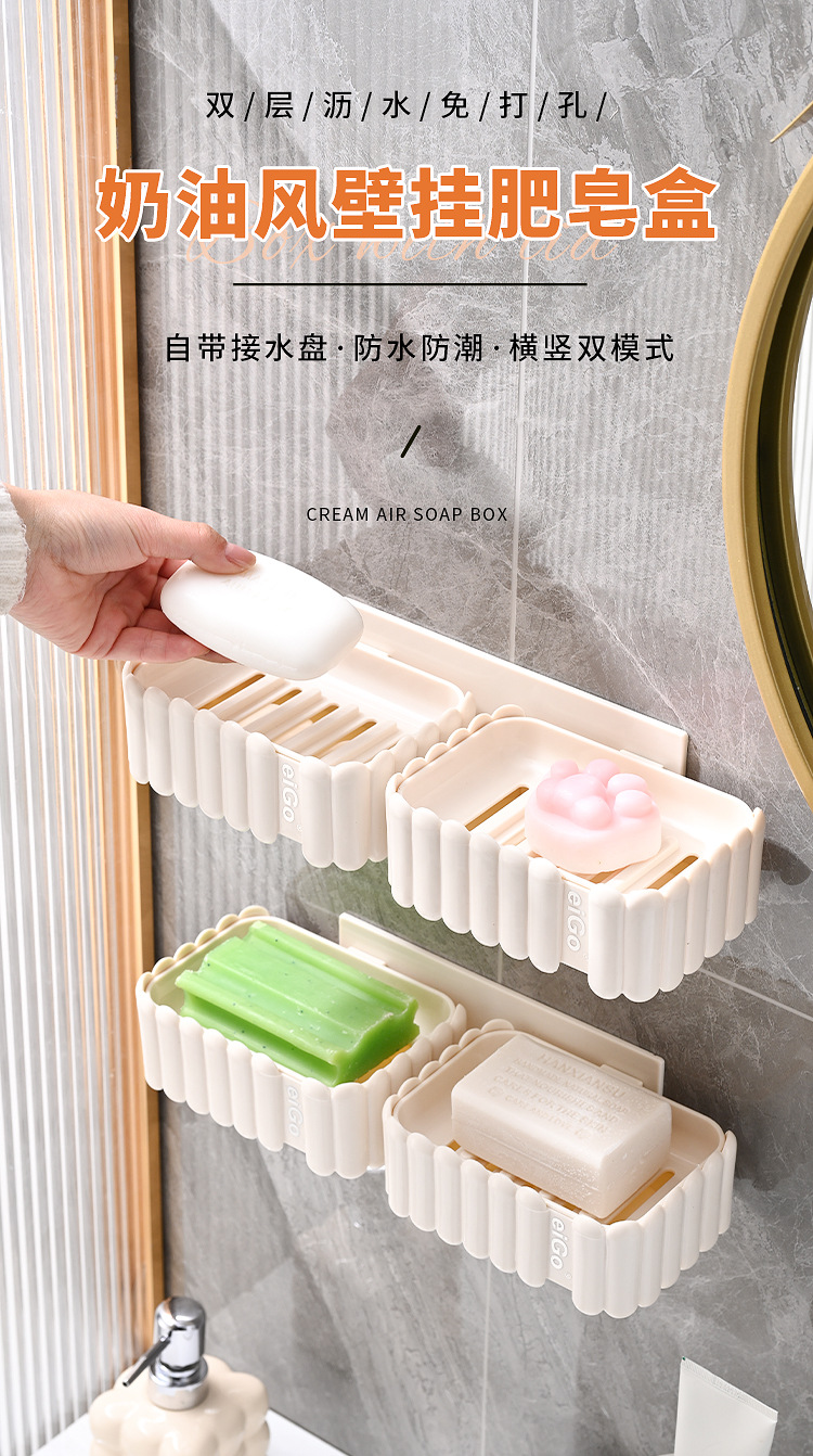 置物架家用高档奶油白肥皂盒壁挂式免打孔香皂双层肥皂沥水盒卫生