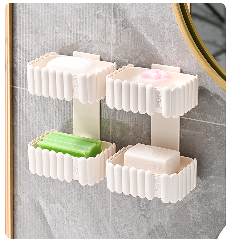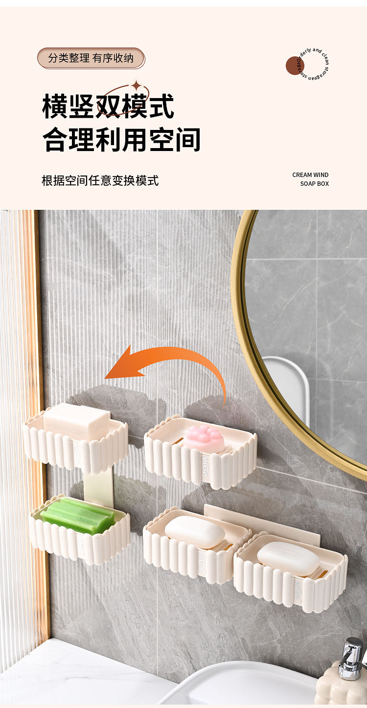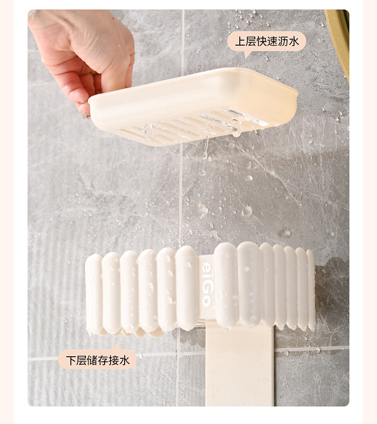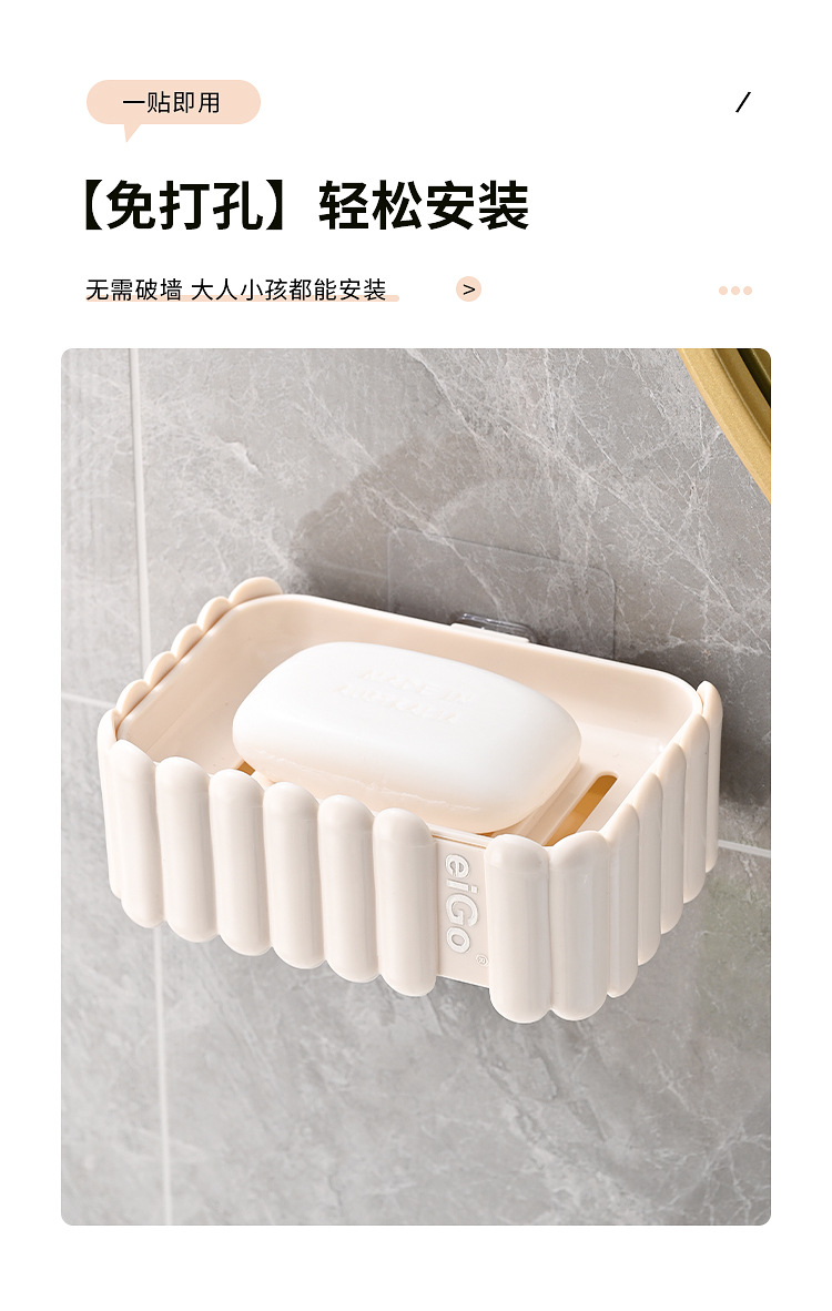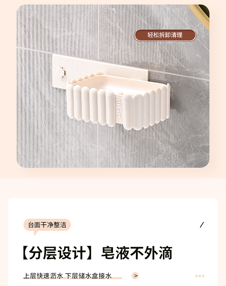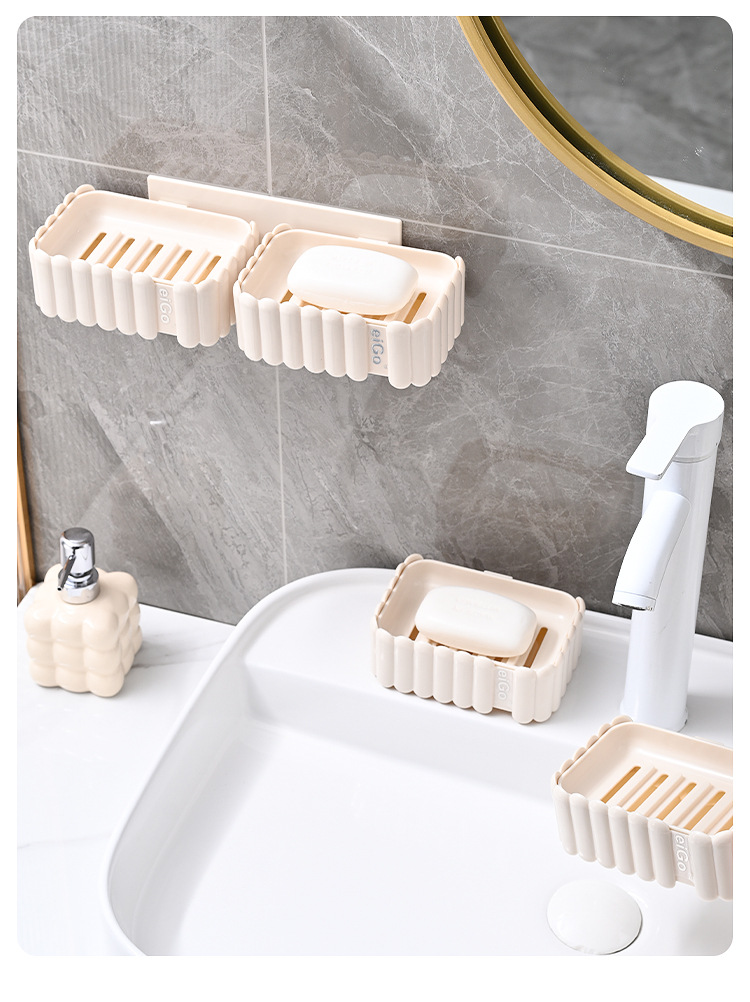 置物架家用高档奶油白肥皂盒壁挂式免打孔香皂双层肥皂沥水盒卫生