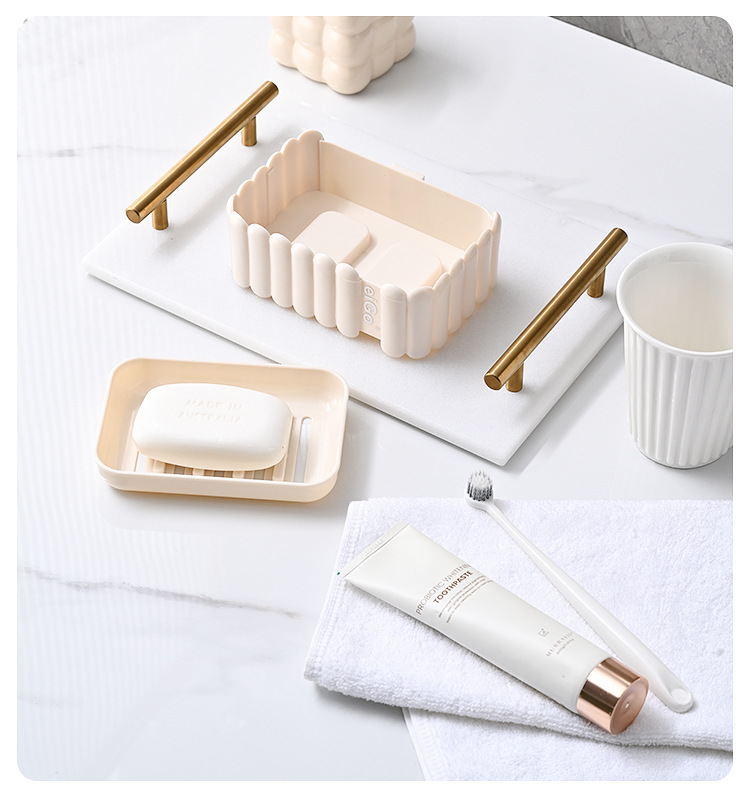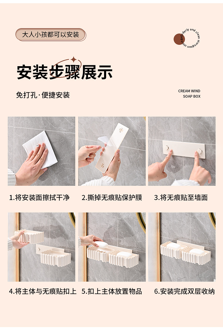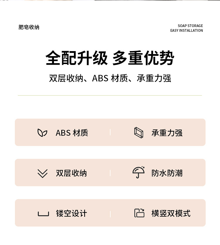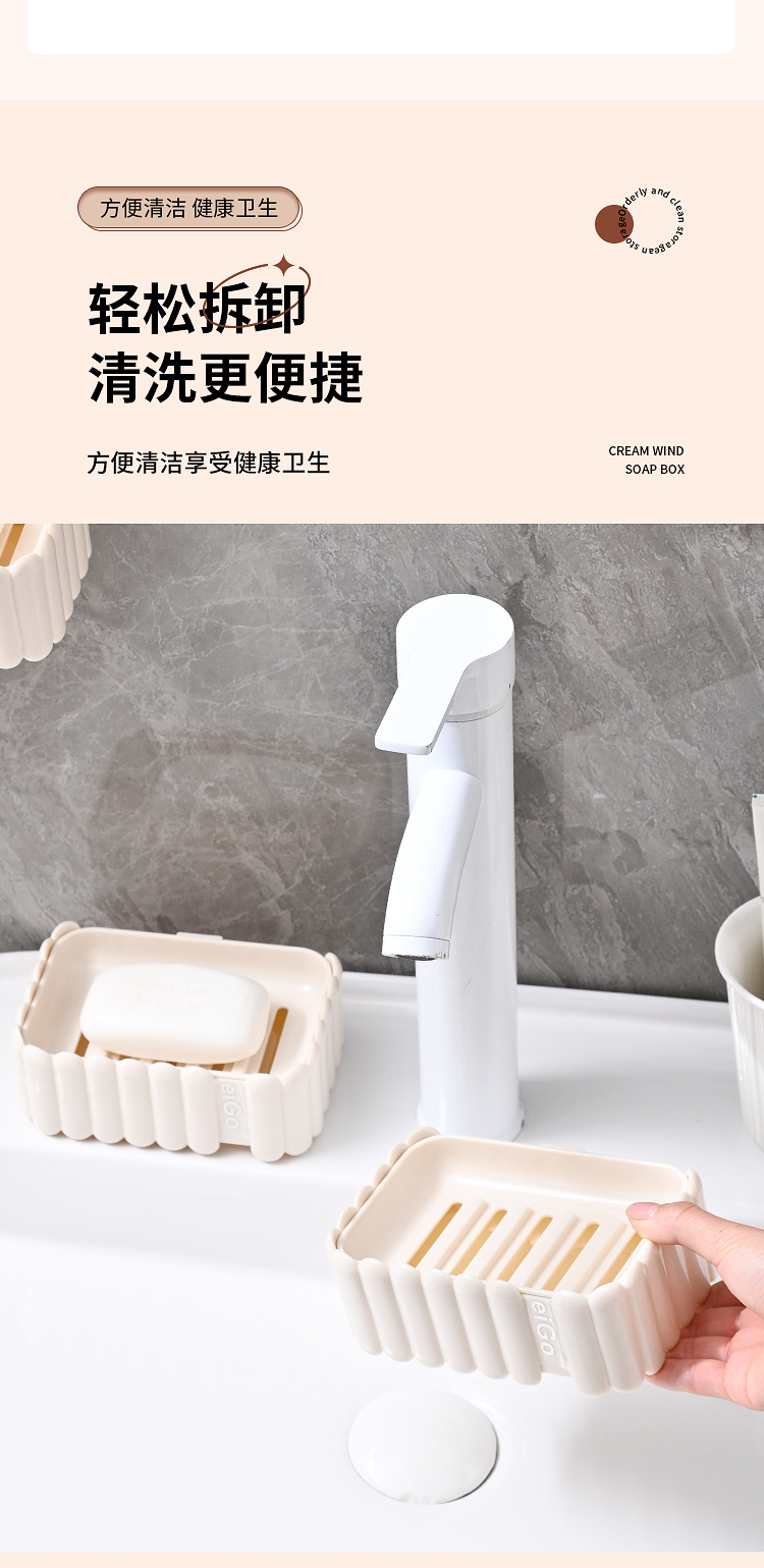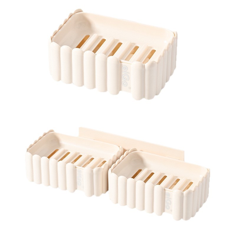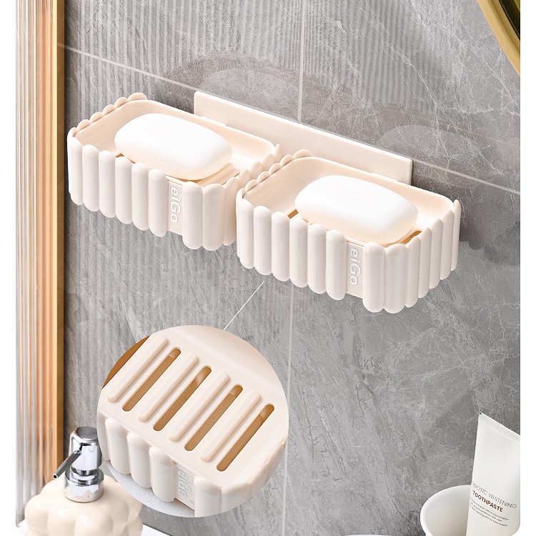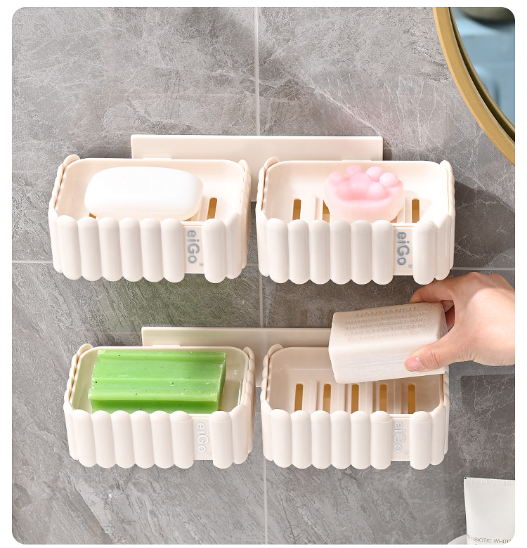 置物架家用高档奶油白肥皂盒壁挂式免打孔香皂双层肥皂沥水盒卫生