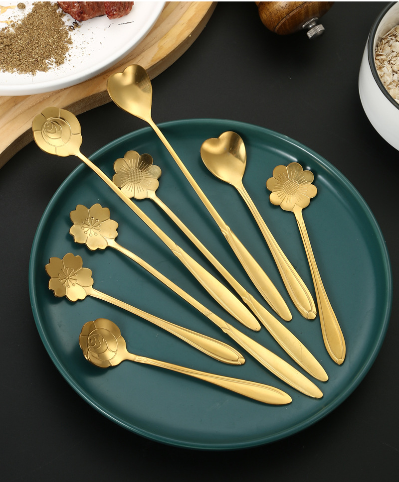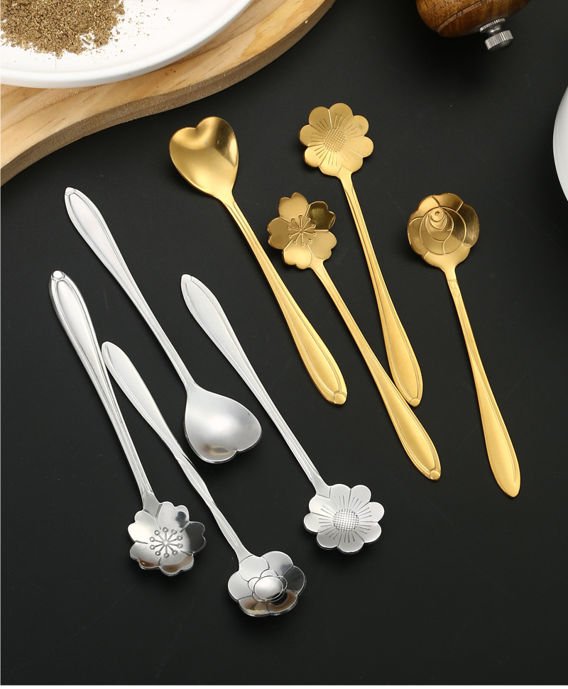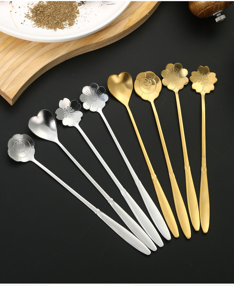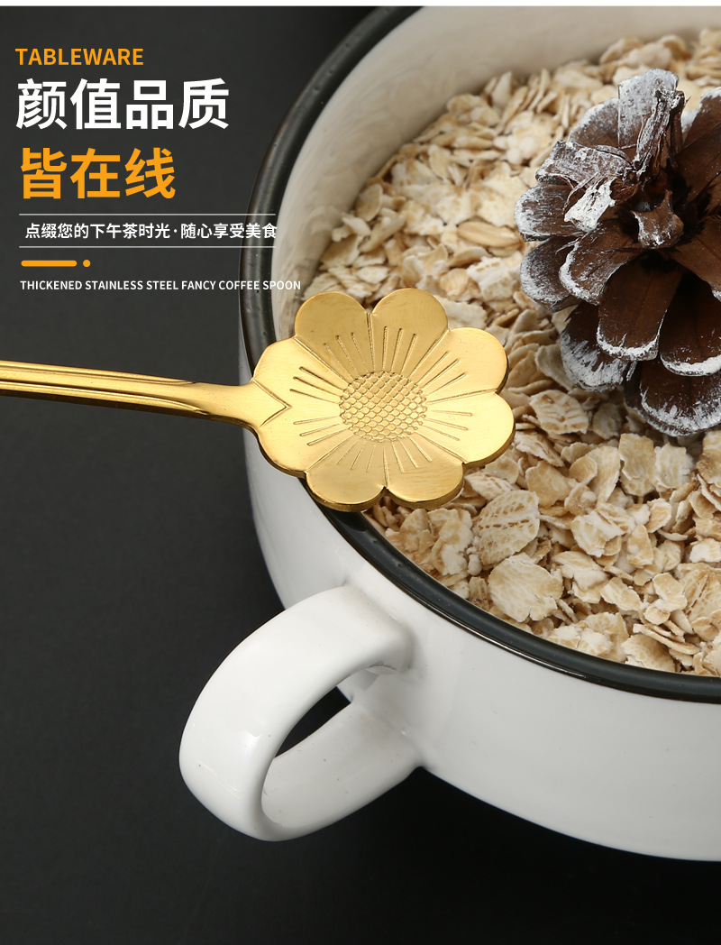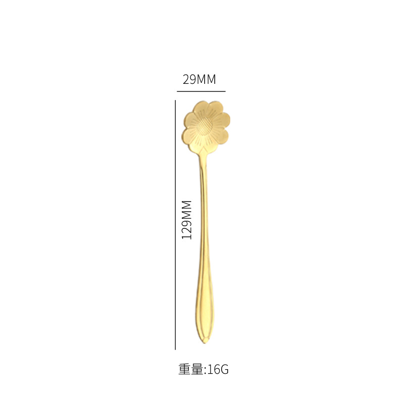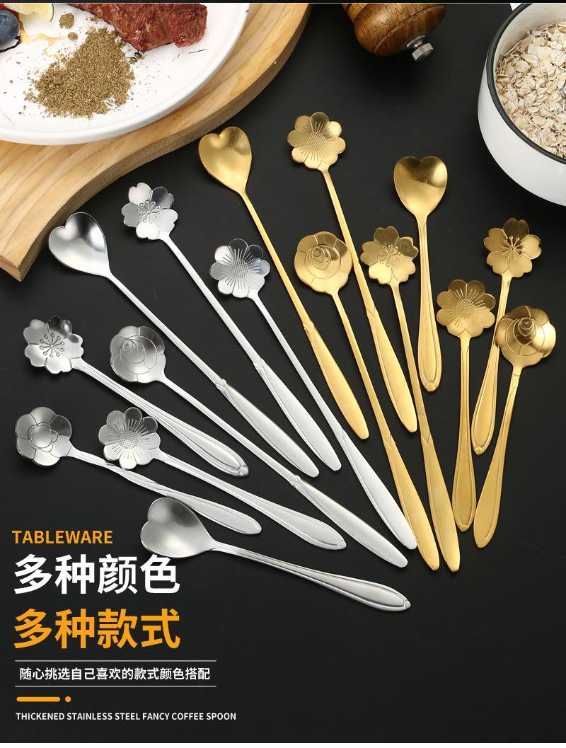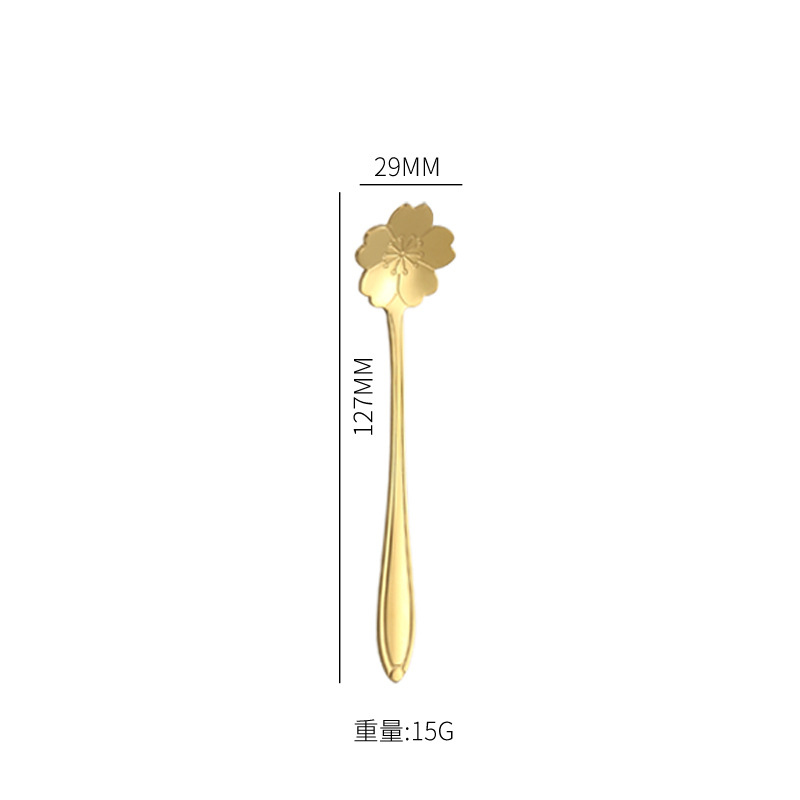304不锈钢金色勺子樱花勺长柄搅拌勺伴手礼甜品咖啡勺燕窝蜂蜜勺