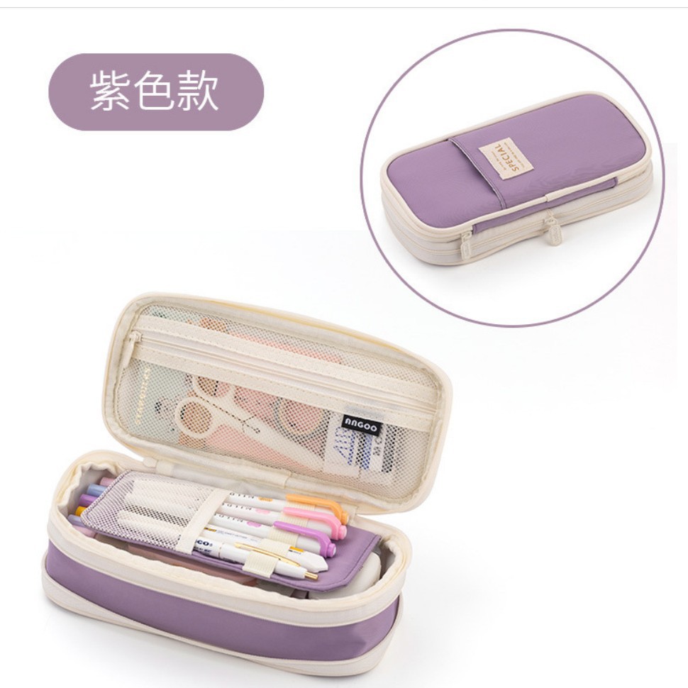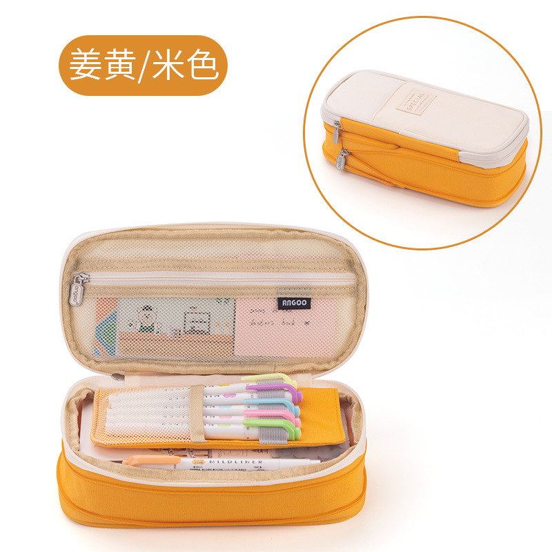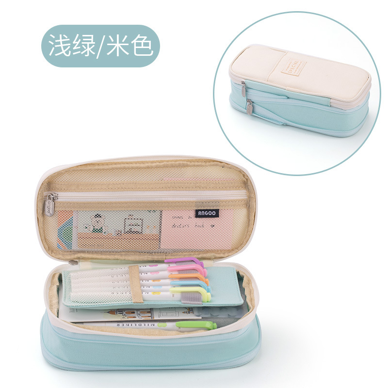 安寇马卡龙拼色可变身大容量升级款笔袋纯色初高中生简约文具笔盒