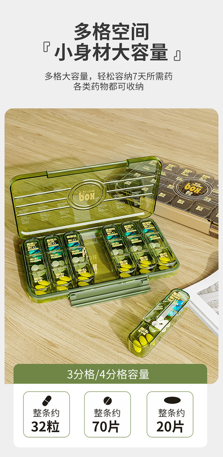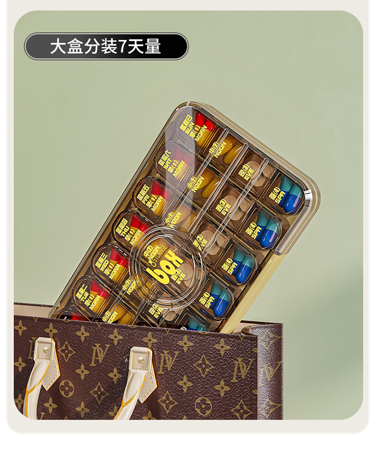 药盒便携一日三餐随身药品分装盒一周七天吃药提醒盒大容量分药器
