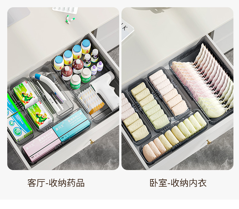 抽屉内置塑料收纳盒厨房亚克力化妆品卧室餐具整理盒置物收纳架